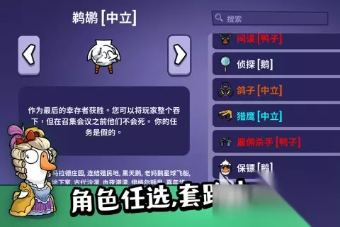 一款拥有清新幻想风格的开放世界游戏,会给大家构建一个魔法和科技并存的奇幻大世界。玩家在无缝连接的地图中可以自由的穿梭,从田园村庄到幽静的森林,每一处的风景都会有一种鲜活的生命力。游戏打破传统的数值框架,打造独具深度的系统,面对不同的boss玩家可以灵活的调整策略。同时还会融合多元化的玩法,有紧张刺激的遭遇战,也有规模宏大的攻防战。 扫码下载该游戏 高速下载 普通下载 优先233乐园APP下载 2、《鹅鸭杀手游》