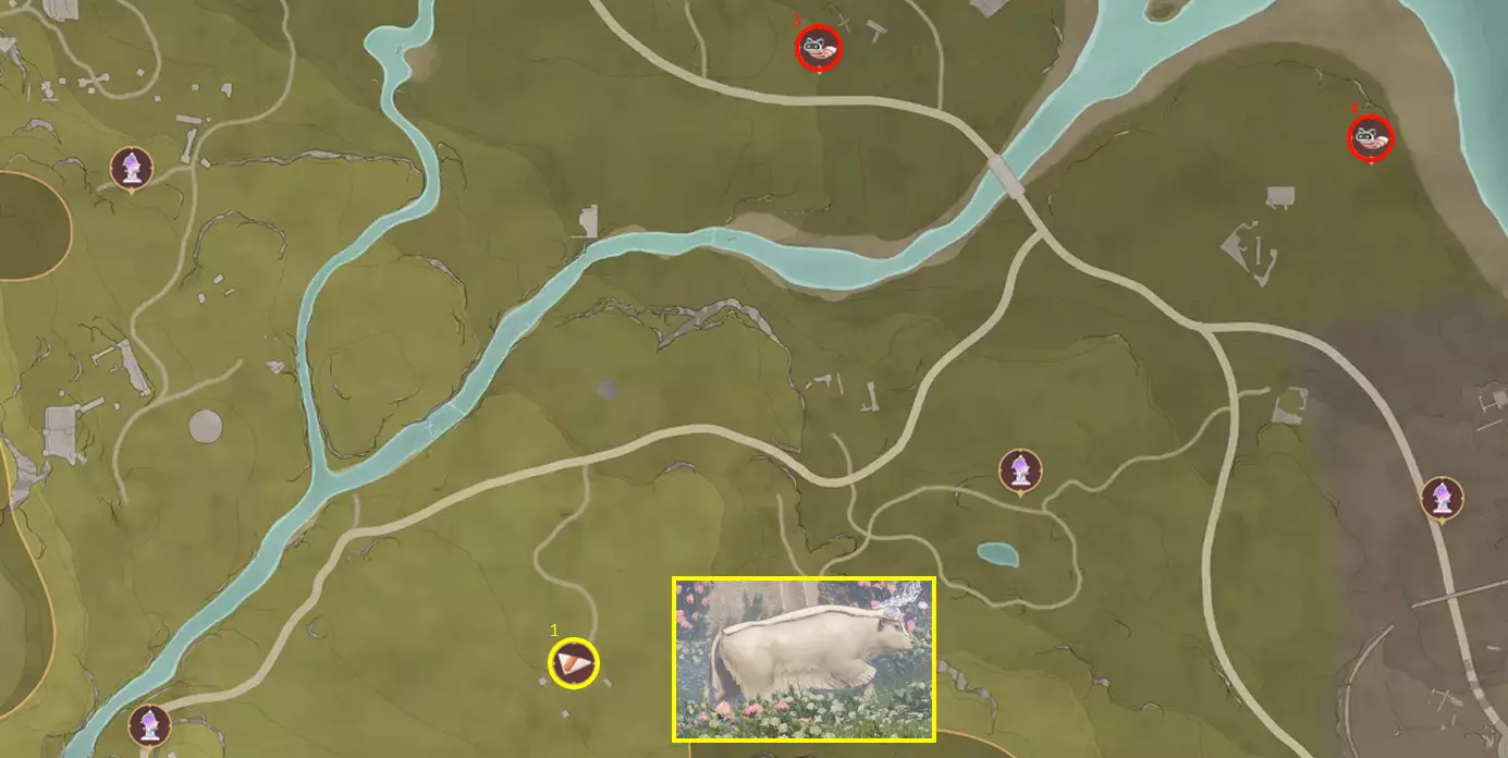 位置:花愿之地(3)和微风草地(4)。 稀有度:每天7个。 你必须小心靠近它们,因为它们很容易逃跑。 6. 公牛毛毡