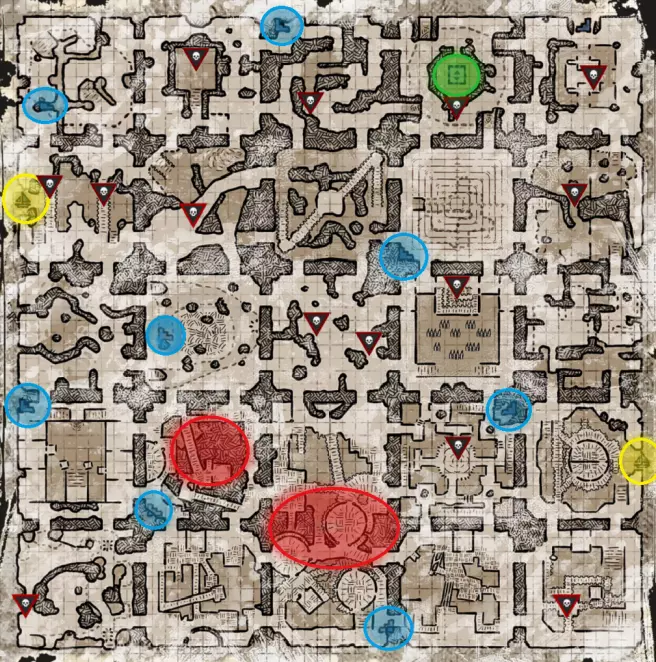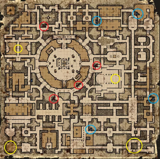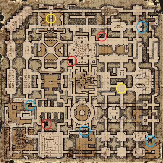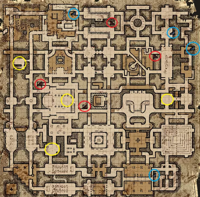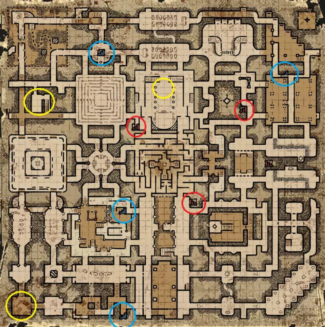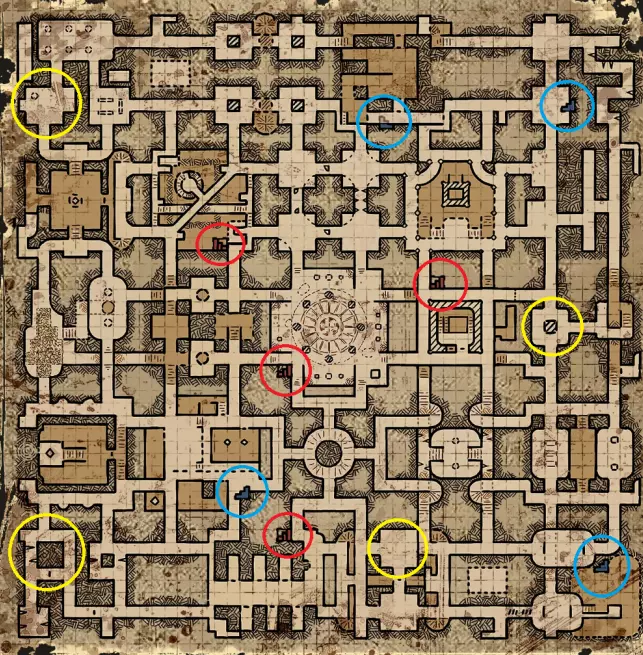 三人出口传送门会在游戏结束时(当地下城开始显现其特性时)在地图上的特定位置生成。可以通过它们出现时特有的刮擦声、地面上蓝色的轮廓标记以及随后出现的可激活发光蓝色石头来找到它们。