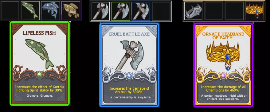 祝福界面可查看小型和大型祝福。除非你是游戏专家,否则请保持复选框勾选状态,若弹出警告则不要花费恩惠。 装备、药水和宝箱 宝箱与装备:每个英雄有六个装备槽。装备效果由装备槽决定,且因英雄而异,无法更改。每件装备都有槽位、等级和稀有度(普通-白色、 uncommon-绿色、稀有-蓝色、史诗-紫色)。装备效果会随着稀有度和等级的提升而增强。仅装备稀有度最高的装备,获取稀有度较低的同类型装备或重复装备会提升其等级(稀有度越高的装备提供的等级越多)。存在闪光装备和金色装备。闪光装备的类别边框外有白色方框,其属性提升50%。金色装备类似,但属性提升100%。闪光装备从宝箱中开出的概率为1/1000,而金色装备可通过现金商店的金色宝箱包获得。若闪光装备栏位变为金色,会返还【闪光药剂】(实际名称可能不同)。编辑:【抛光药剂】。