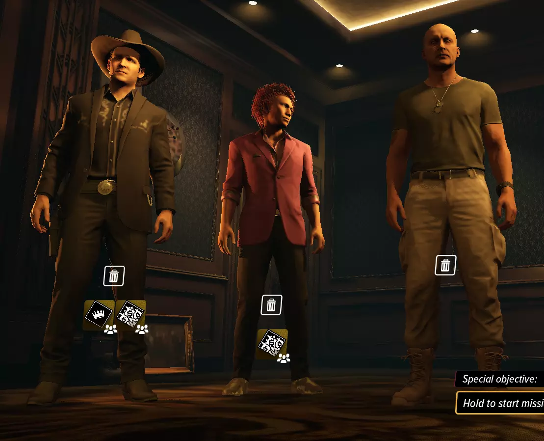 老大,无论是在roguelite模式的贝克还是多人模式的老大装备配置中,你都应该对他有所了解。在单人模式中,贝克每天可以使用两次,为任务提供全队50%的现金加成。此外,如果你在潜行状态下通过履行与金杯美元龙的交易获得它,它同样每天可以使用两次,但没有现金加成,只有10%的生命值提升。 在多人模式中,你只能获得10%的生命值提升。 每日使用次数可以通过老大等级达到175级后解锁的老大随从增益提升至每天三次。 现金加成可以通过老大等级达到90级后解锁的人脉随从增益提升至60/65/69/72/75%。游戏中没有提及的一点是,提升团队成员等级实际上也会提升他们的职业等级,而不仅仅是模糊的“战斗技能提升”。以下信息展示了通过晋升获得的职业等级提升(等级)。 在介绍职业之前,先列出roguelite模式下角色每次晋升所需的成功任务数量表。 每次晋升所需任务数量* 等级2 等级3 等级4 总计 特拉维斯·贝克 3 4 6 13 大人物 2 2 3 7 普通角色 2 3 3 8 *通过70级 Boss 后解锁的“导师随从加成”,任务完成次数会翻倍计算。 ↑ 这需要他们跟随贝克,并且这也包括贝克的经验值获取。↑ 注1:在抢劫后选择保留“龙犬”,会立即使所有非贝克的劫匪可晋升。注2:购买预升级的劫匪仍需完成跳过等级对应的任务才能进行下一次晋升。例如:3级通用劫匪需要完成8个任务才能晋升至4级,而非通常的3个,因为另外5个任务未被计入。大人物,指的是在洛克市拥有显赫名声的人。