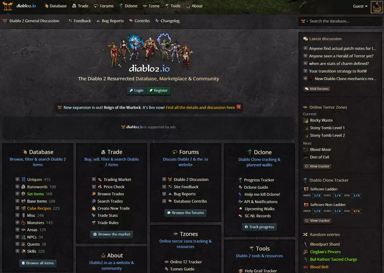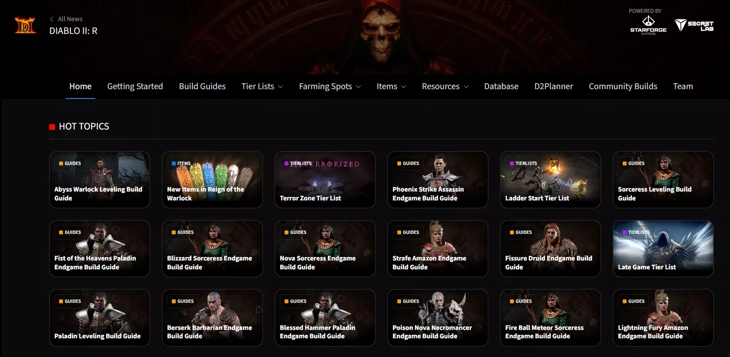 Diablo2.io//数据库、交易市场与社区 Diablo2.io是一个可搜索和筛选的物品数据库,涵盖了《暗黑破坏神2:重制版》中的所有物品和实体。此外,该平台还拥有活跃且持续维护的交易市场和社区页面。