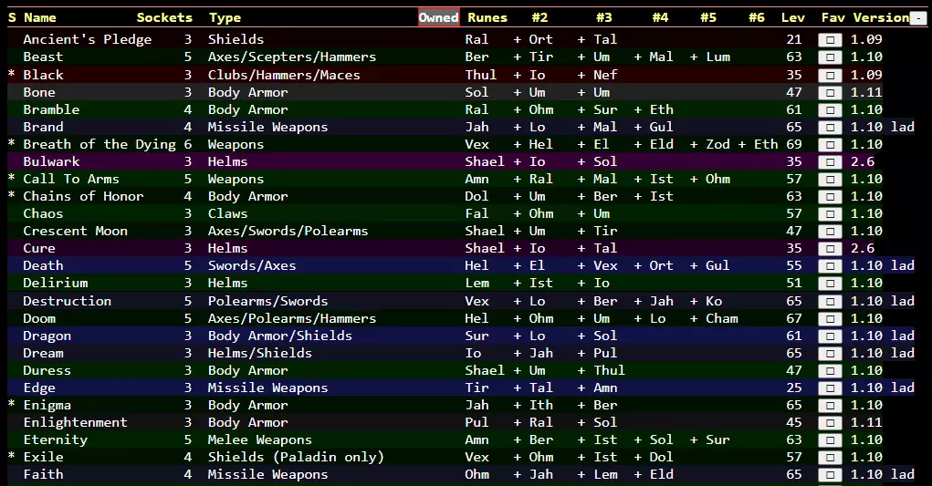 想查看目前可以制作哪些符文之语吗?这里有一个很棒的Github页面,它带有筛选器和搜索栏。暗黑破坏神2 符文向导 Github 由 Fabd 开发。