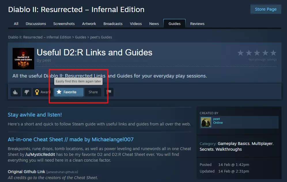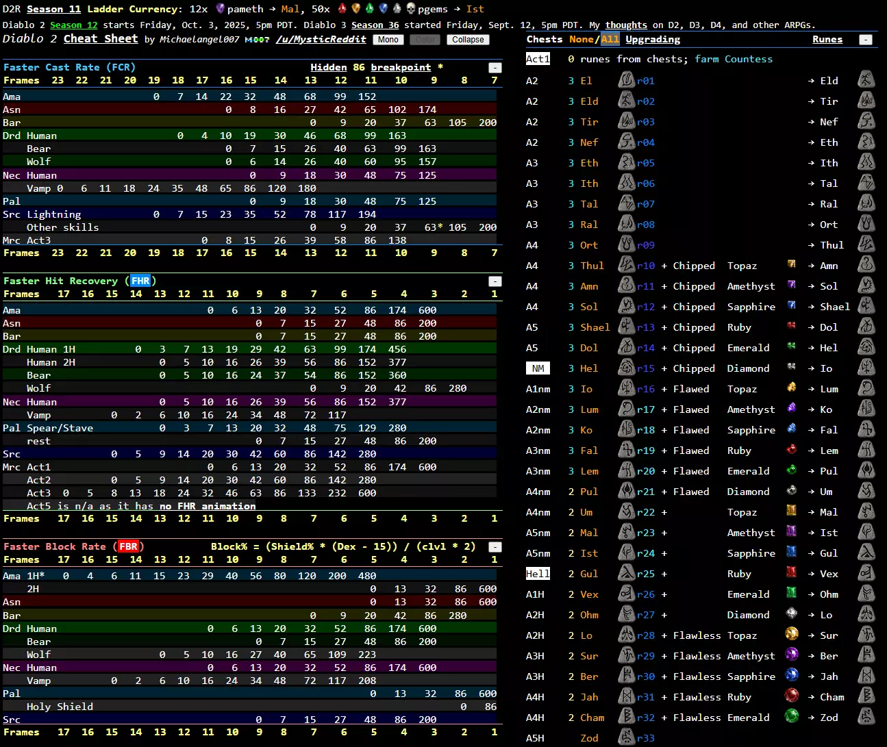 《暗黑破坏神2:重制版》实用指南与链接汇总 日常游戏必备的《暗黑破坏神2:重制版》链接和指南。 这是一份简单易懂的Steam指南,包含我多年游玩这款经典游戏时收集的一些实用链接和指南。 【综合 cheat sheet // Github by Michaelangel007】 涵盖档位、符文、赫拉迪姆方块与物品合成、地图布局指南、古墓位置、快速升级以及符文之语等内容——这份 cheat sheet 应有尽有。你可以在一个地方获取《暗黑破坏神2:重制版》所需的一切。Reddit 用户 MysticReddit 制作的 cheat sheet 无疑是我用过的最棒的《暗黑破坏神2》及《暗黑破坏神2:重制版》 cheat sheet。你能在这份简洁明了的资料中找到所有需要的信息。