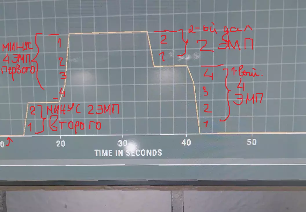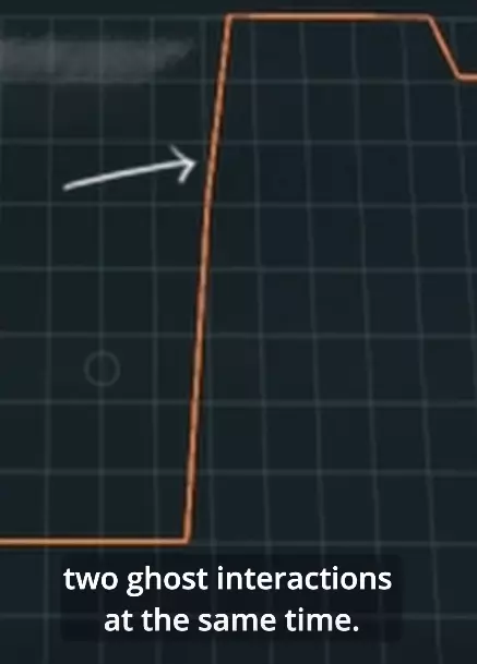 补充说明一下,原则上可以通过货车内的活动监视器发现这种情况。例如,若你的其中一个分身进行了某种互动,假设是3点EMP值(屏幕上会显示数值上升到3),接着另一个分身进行了2点EMP值的互动(此时屏幕上显示的数值会变为5,因为两者会叠加)。之后,你的能量条会下降到2级,因为会扣除第一个幽灵的3级EMP值。他之前对特定等级的EMP执行了操作。最终,另一个分身的第二个等级也会消失,导致屏幕上的EMP等级变为零。所有这些都会根据幽灵的顺序依次发生。下面的图片就是一个例子(仔细看的话,之前提到的“断裂直线”特征也出现了两次)。
