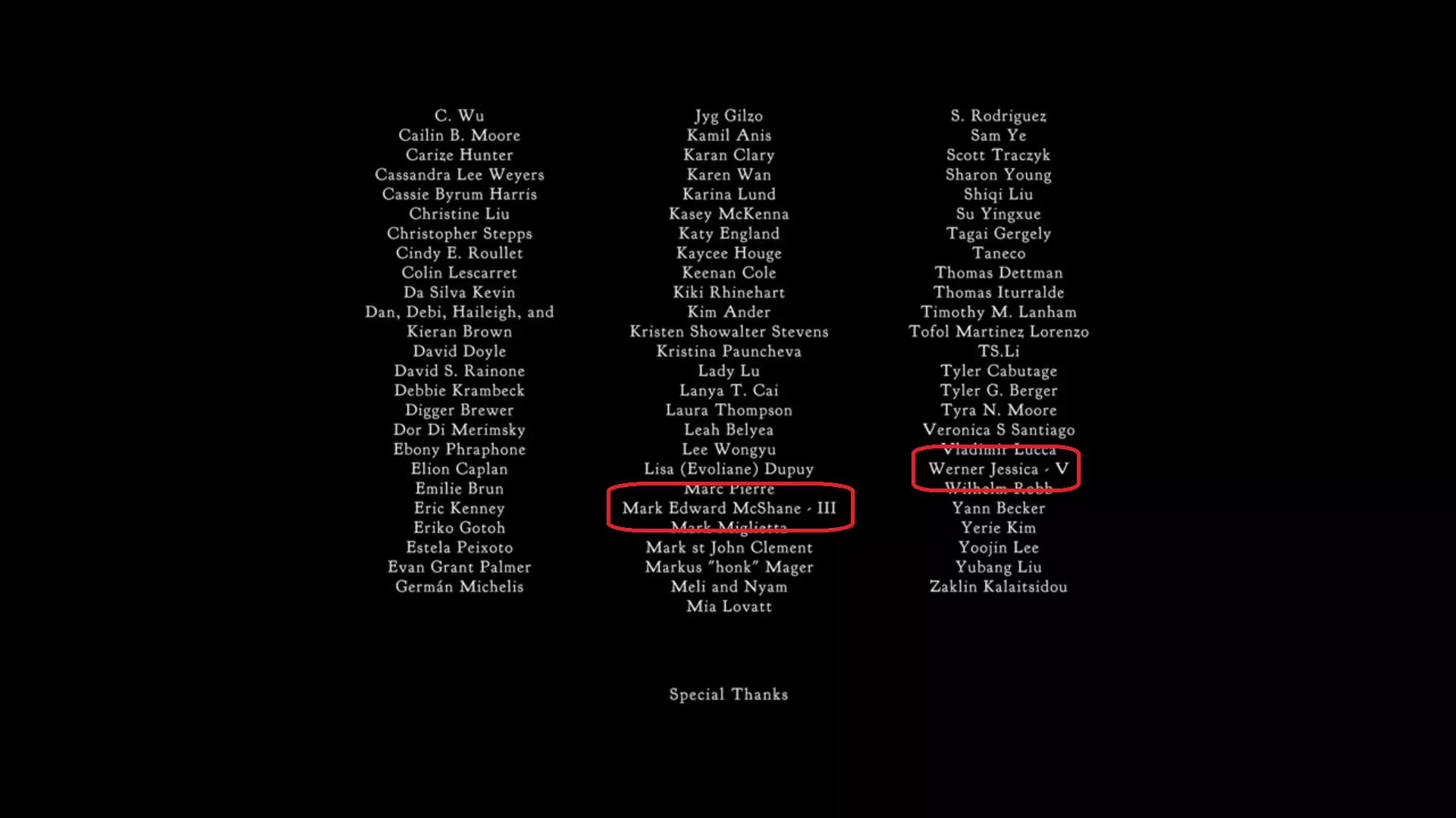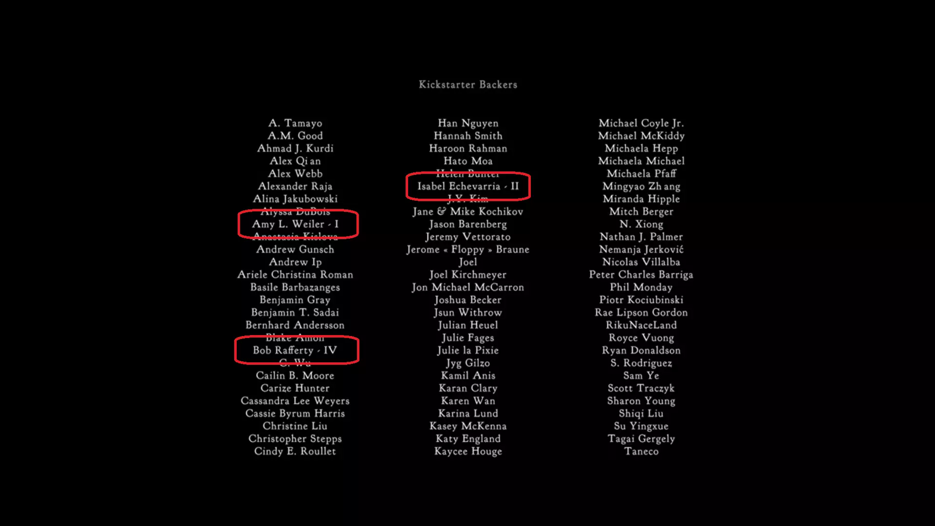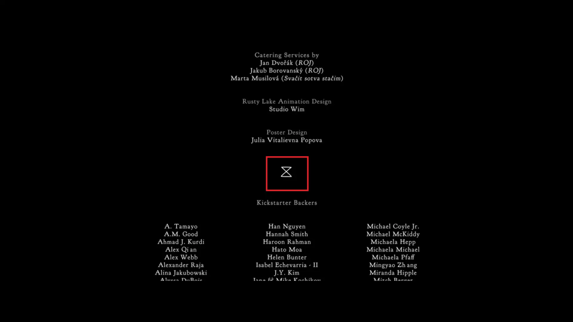 指南提示:观看电影的片尾字幕,寻找数字并查看游戏中的人物卡片。 解决方法:当片尾字幕开始时,大约在18:03左右会出现Kickstarter支持者类别,在游戏中某个抽屉里有帮助电影融资的人员卡片,电影字幕中的一些名字带有数字,按顺序在卡片上查找这些名字以组成代码。
