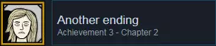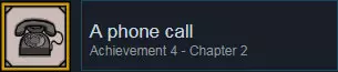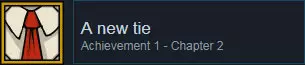 第二章: • 完成第二章后解锁。 与电影相关的成就 - 第二章 和第一章一样,第二章包含一些仅在电影中出现的秘密。因此,你需要在游戏提示的帮助下再次观看电影,以解锁这些新成就。 一条新领带