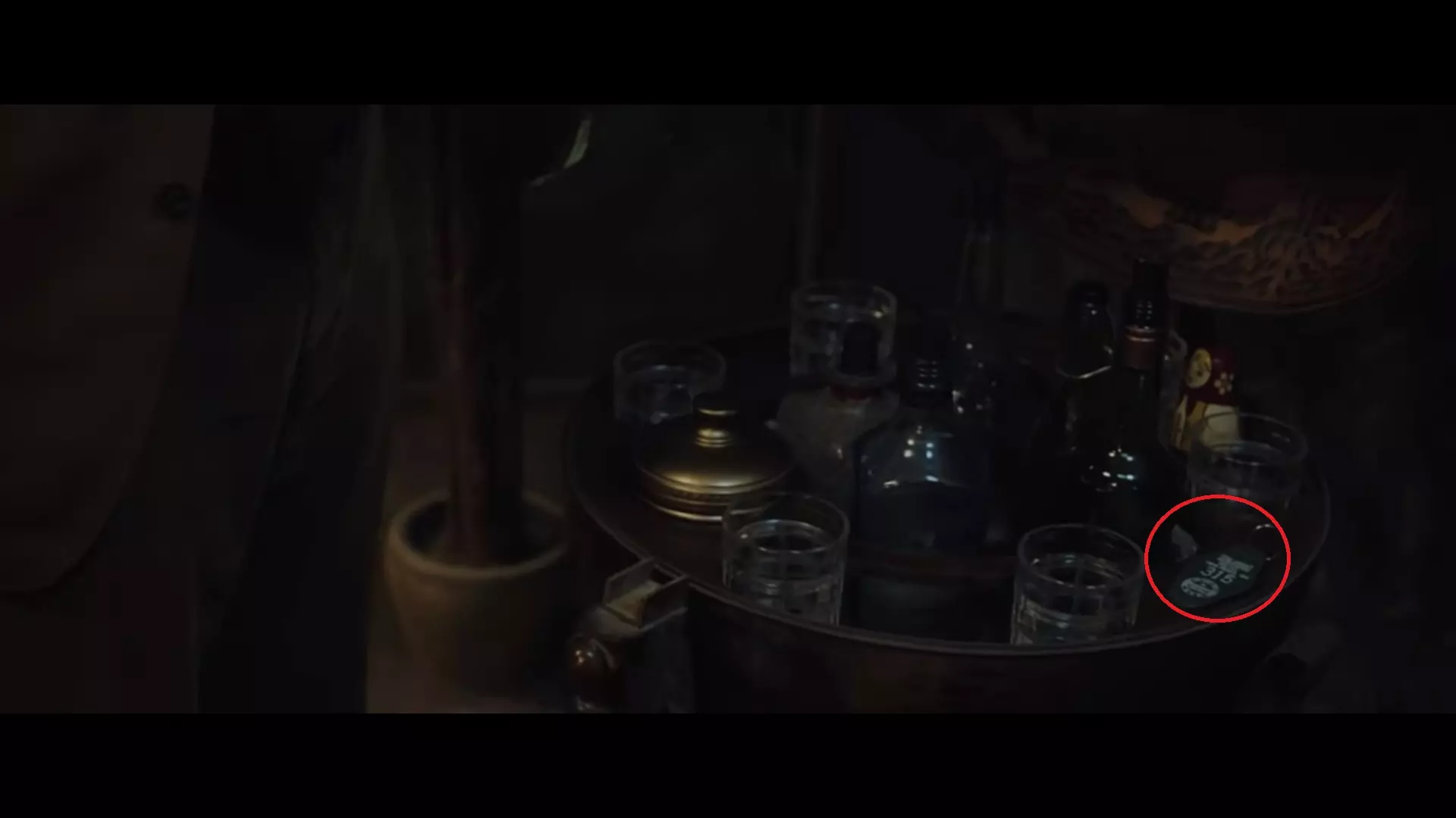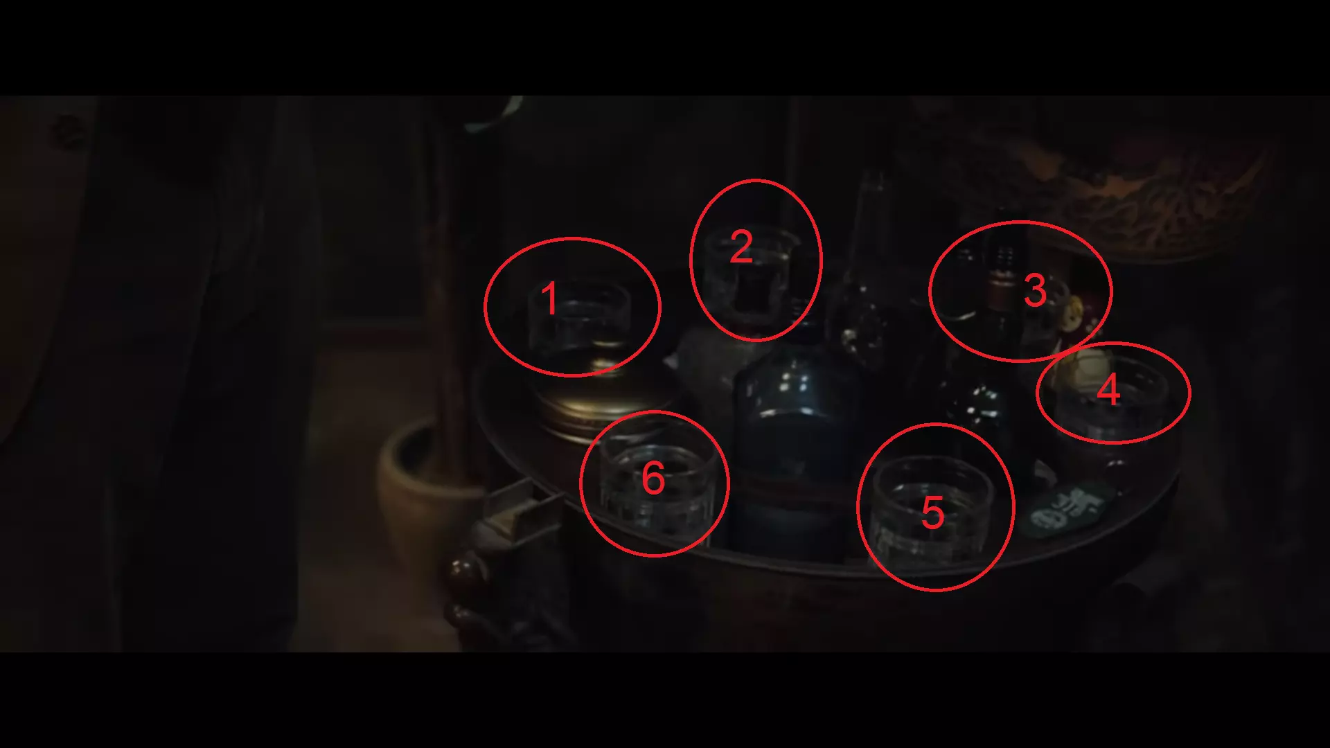 攻略提示:电影中出现的部分元素是构成答案的必要内容。 解答:在2分12秒、5分42秒、6分35秒处,可以注意到提示中要求的部分元素:桌上的杯架、地球仪内的杯子以及架子上的玻璃罐。
