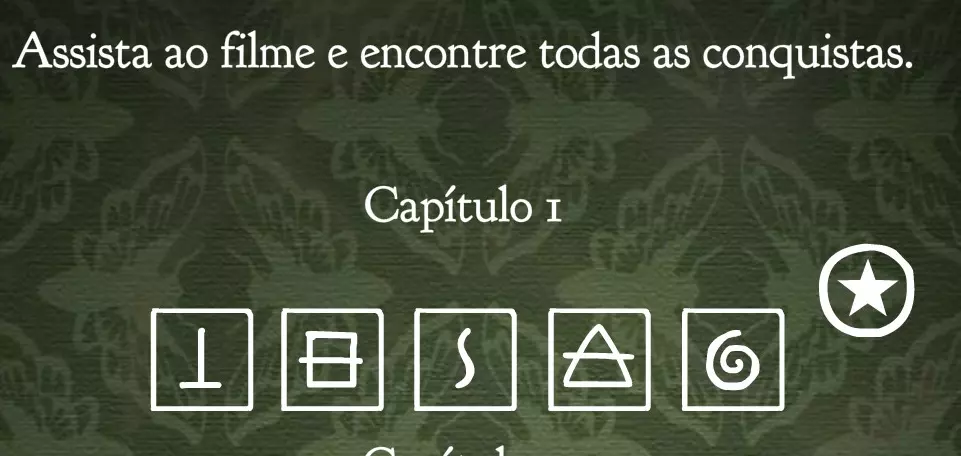 绿色小瓶: •游戏没有明确提示如何解锁。 •攻略提示:解开第一章电影中的秘密,并注意屏幕上显示的符号。 解法: 当在游戏中完成电影的一个秘密(前面的部分)时,会显示几秒钟符合密码箱样式的符号。解锁第一章所有成就后进入成就菜单,注意它们按5个一组排列,与密码箱所需数量相同。将符号放入密码箱:
