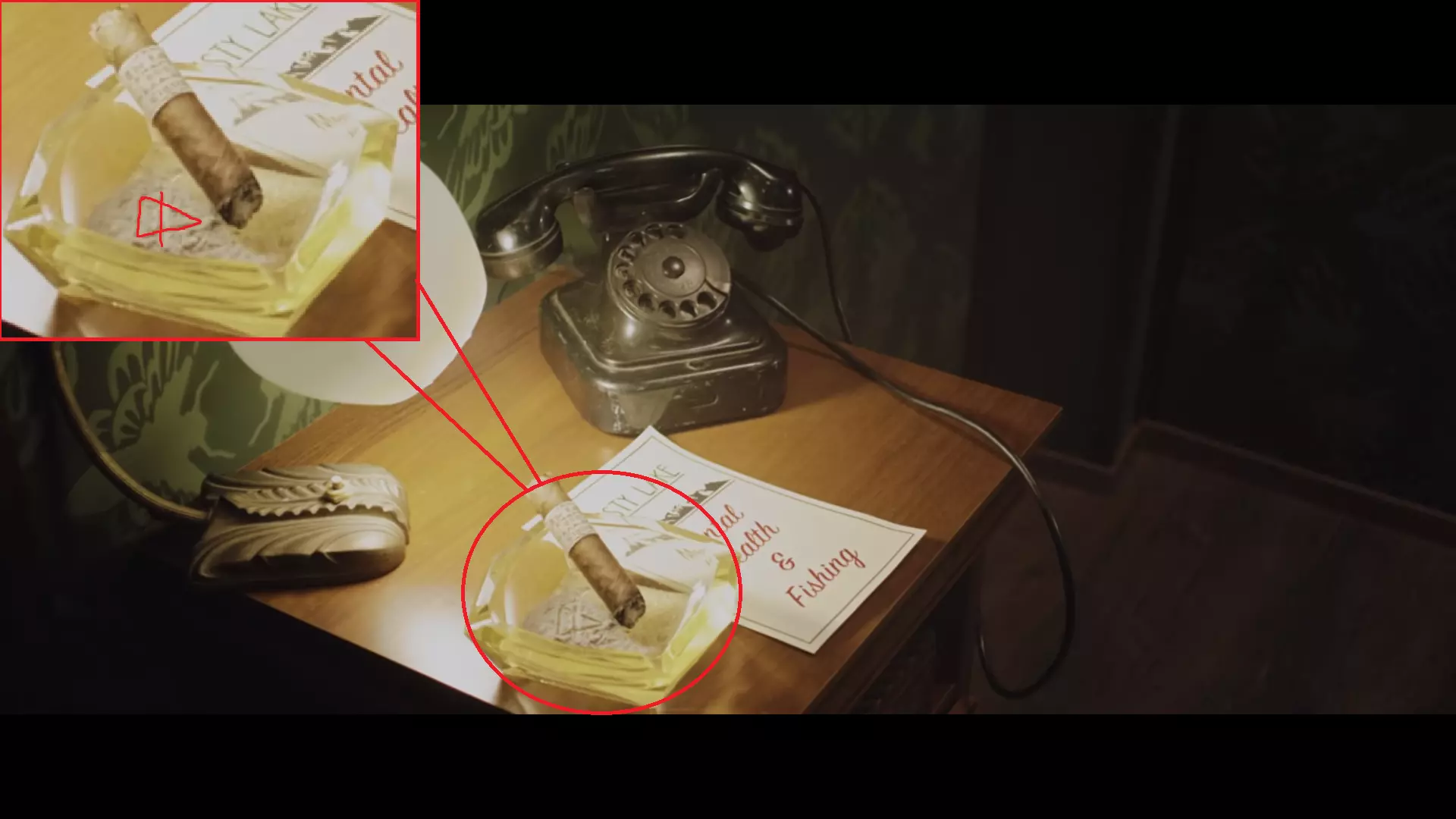 攻略提示:在影片中寻找酒店的钥匙牌。 解决方法:在影片5分42秒处,当戴尔打开地球仪时,可以看到一个标有酒店房间号的钥匙牌,将上面的数字输入电视。数字是315