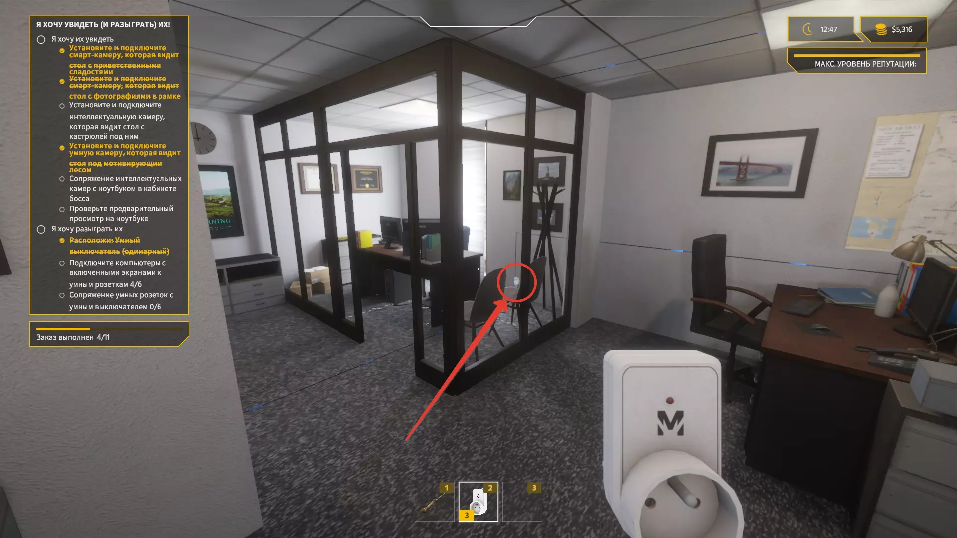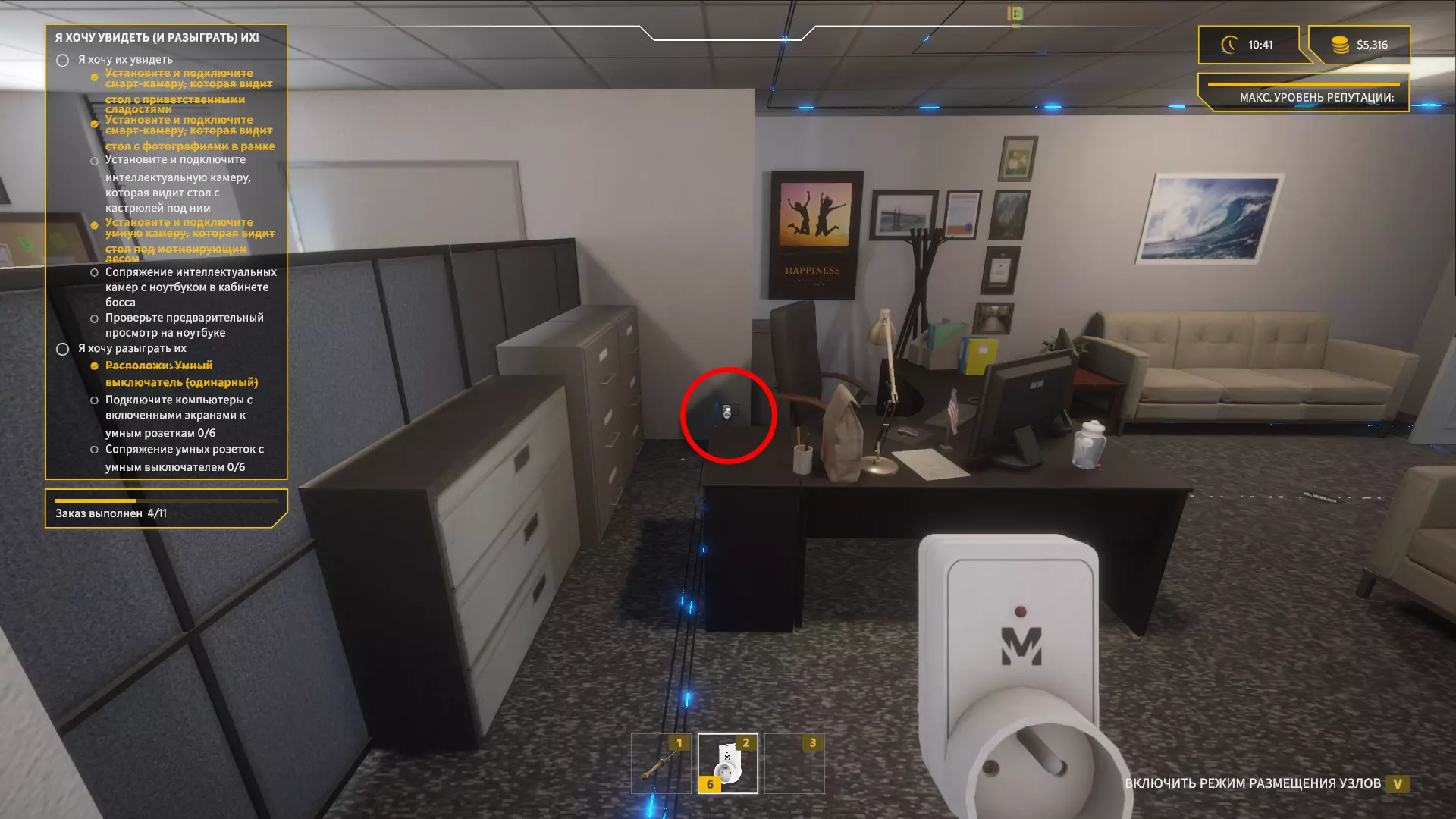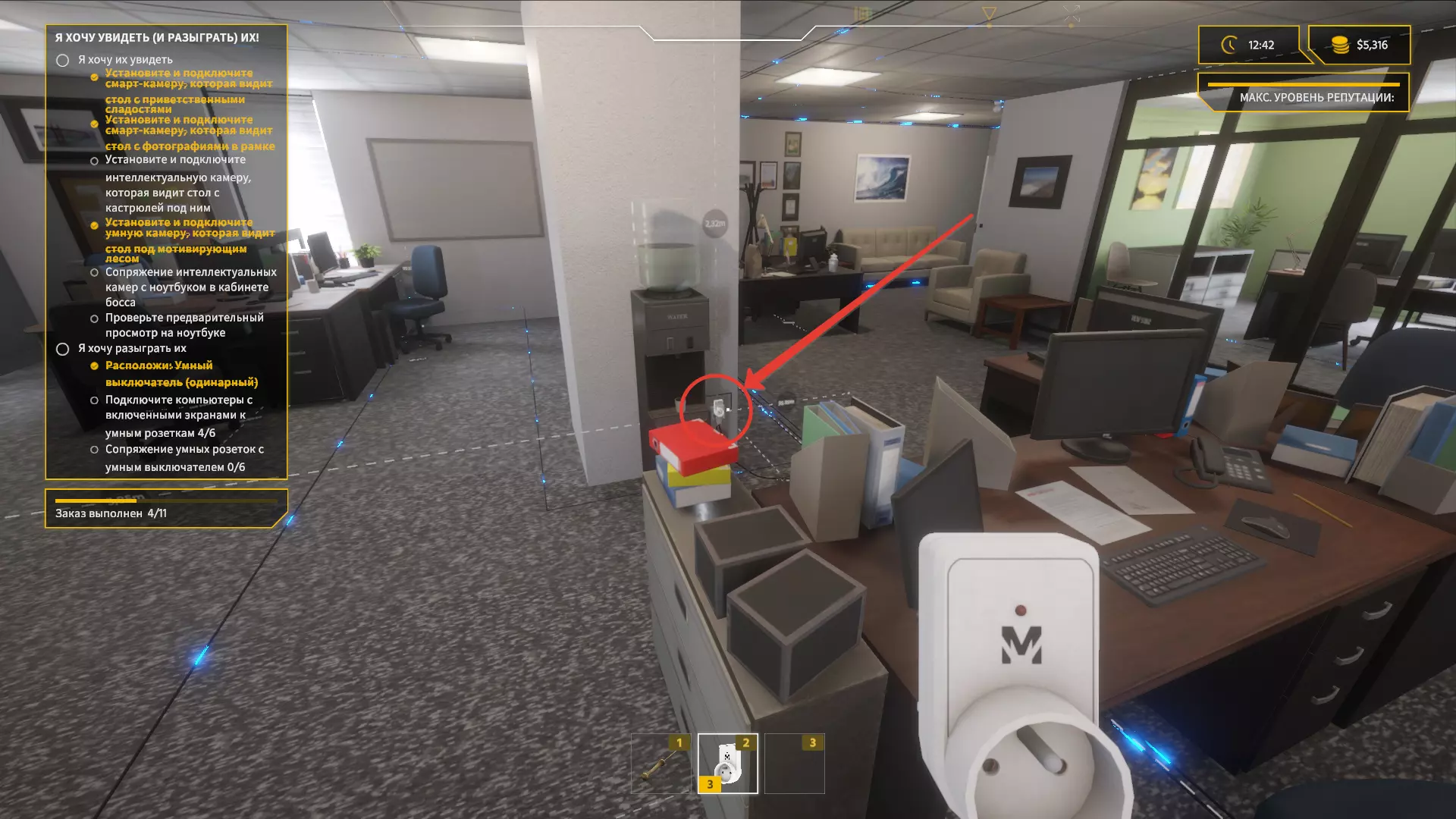 安装智能插座和智能开关 现在我们来处理最简单的部分。 前往老板的办公室,在一个小货架旁安装开关。