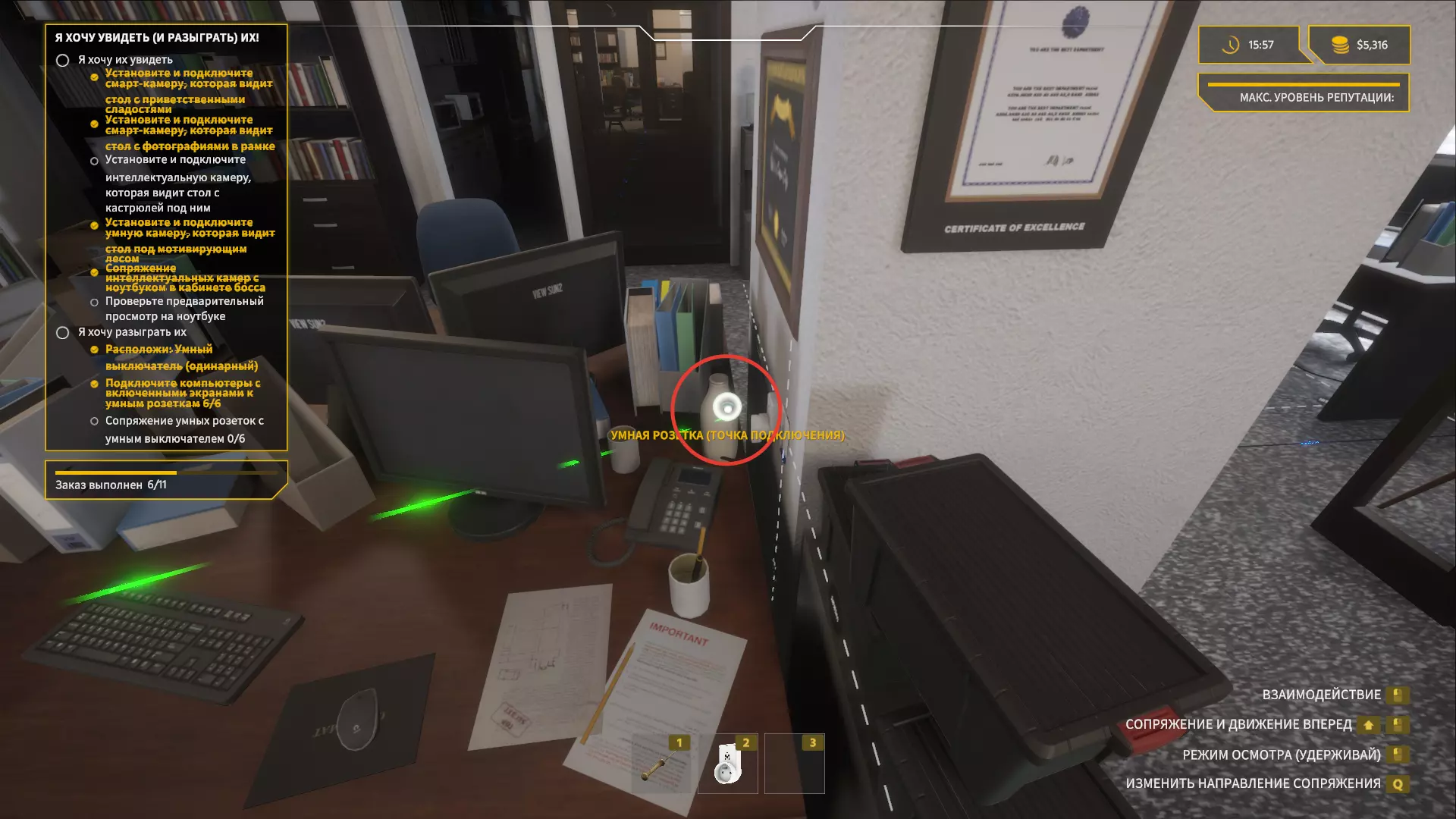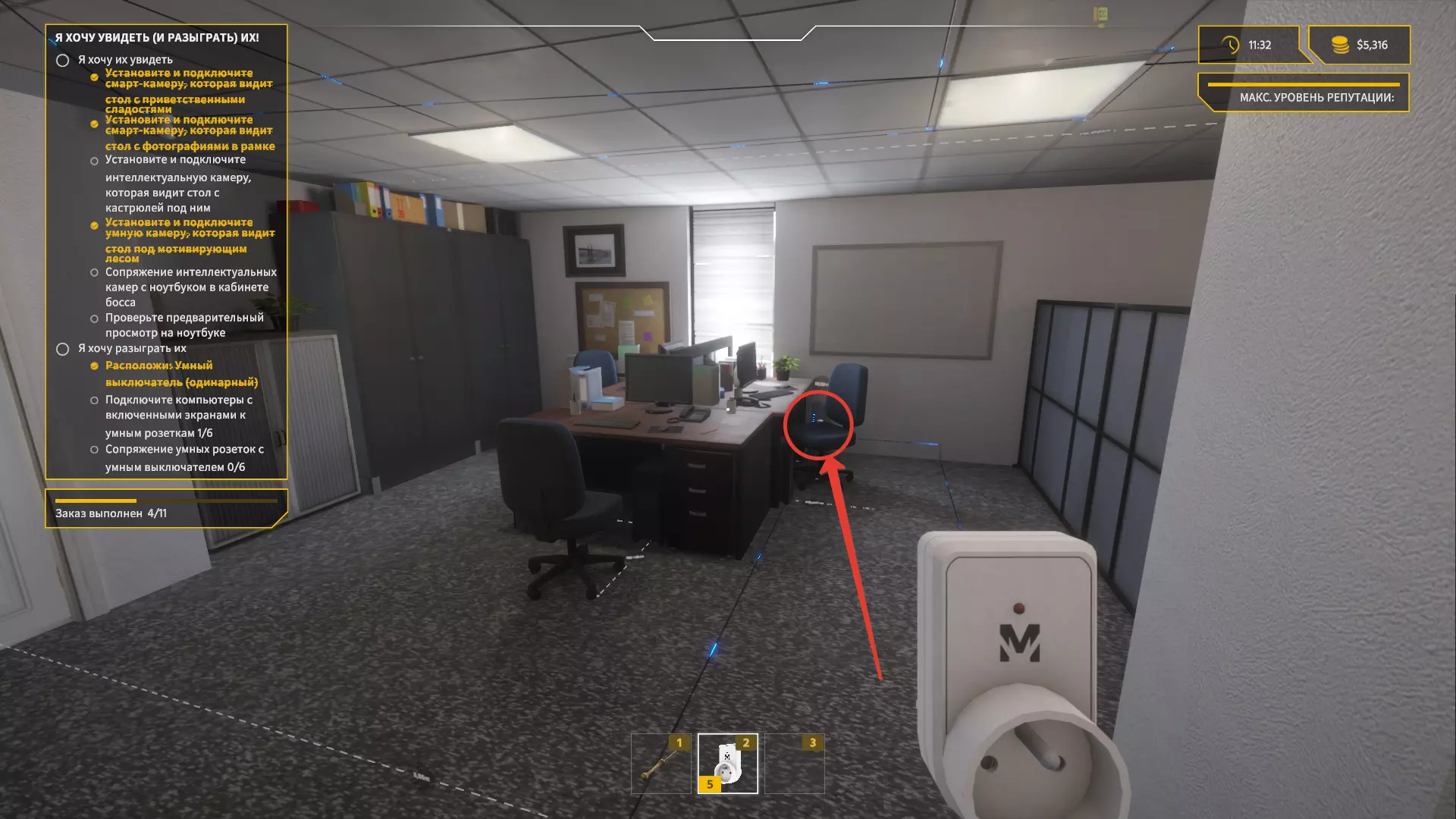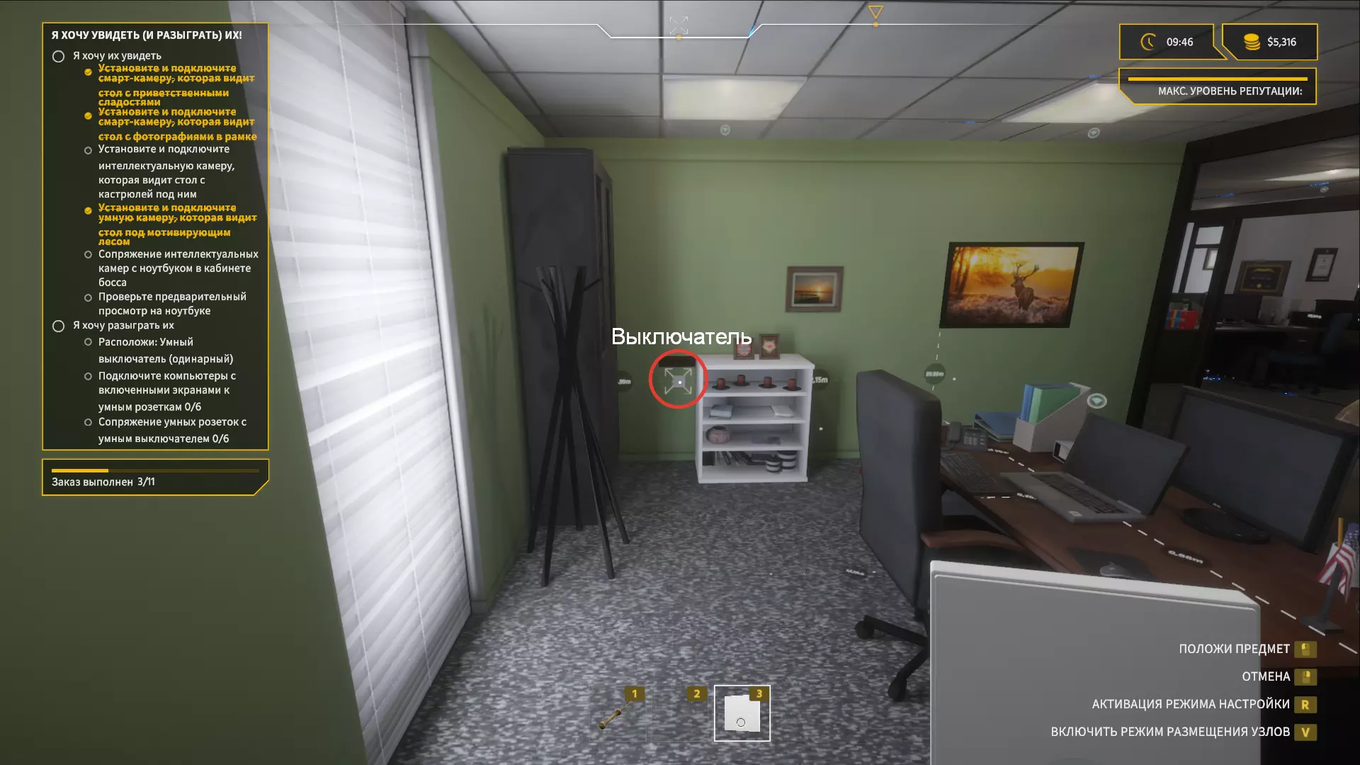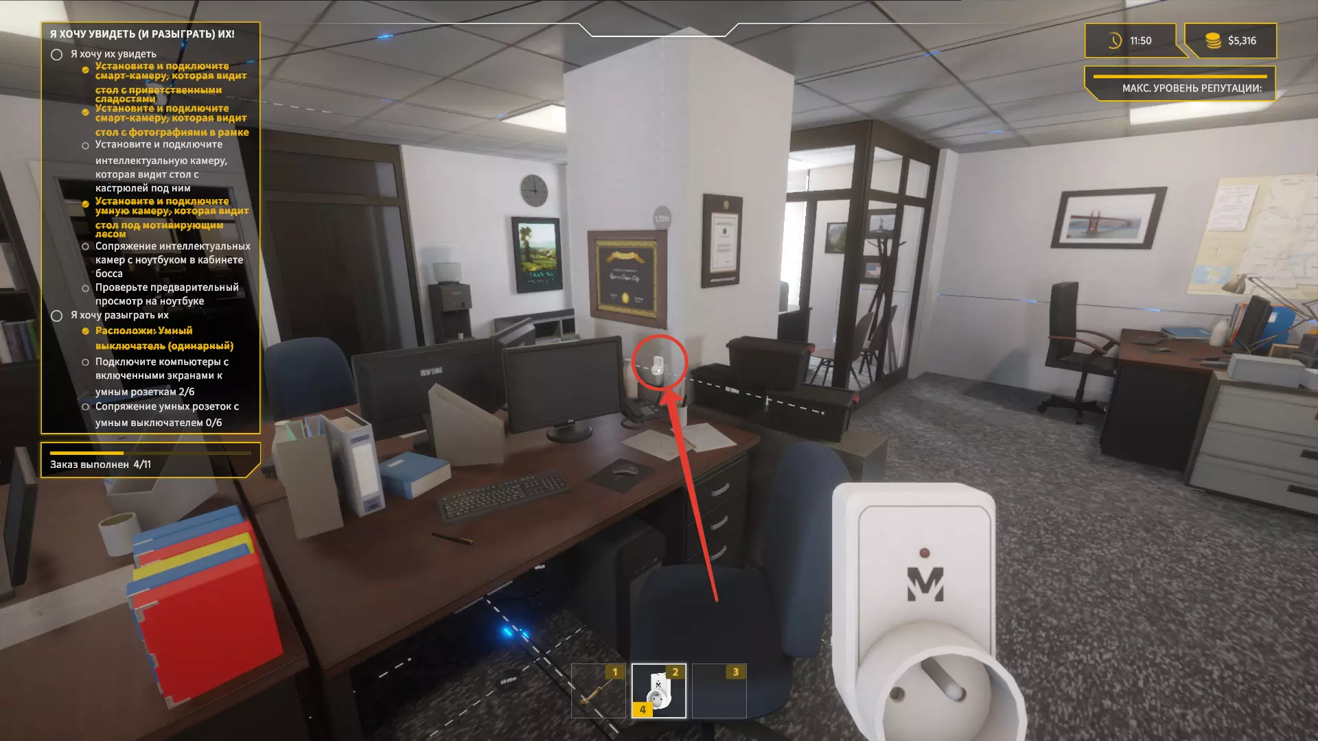 安装智能插座和智能开关 现在我们来处理最简单的部分。 前往老板的办公室,在一个小货架旁安装开关。