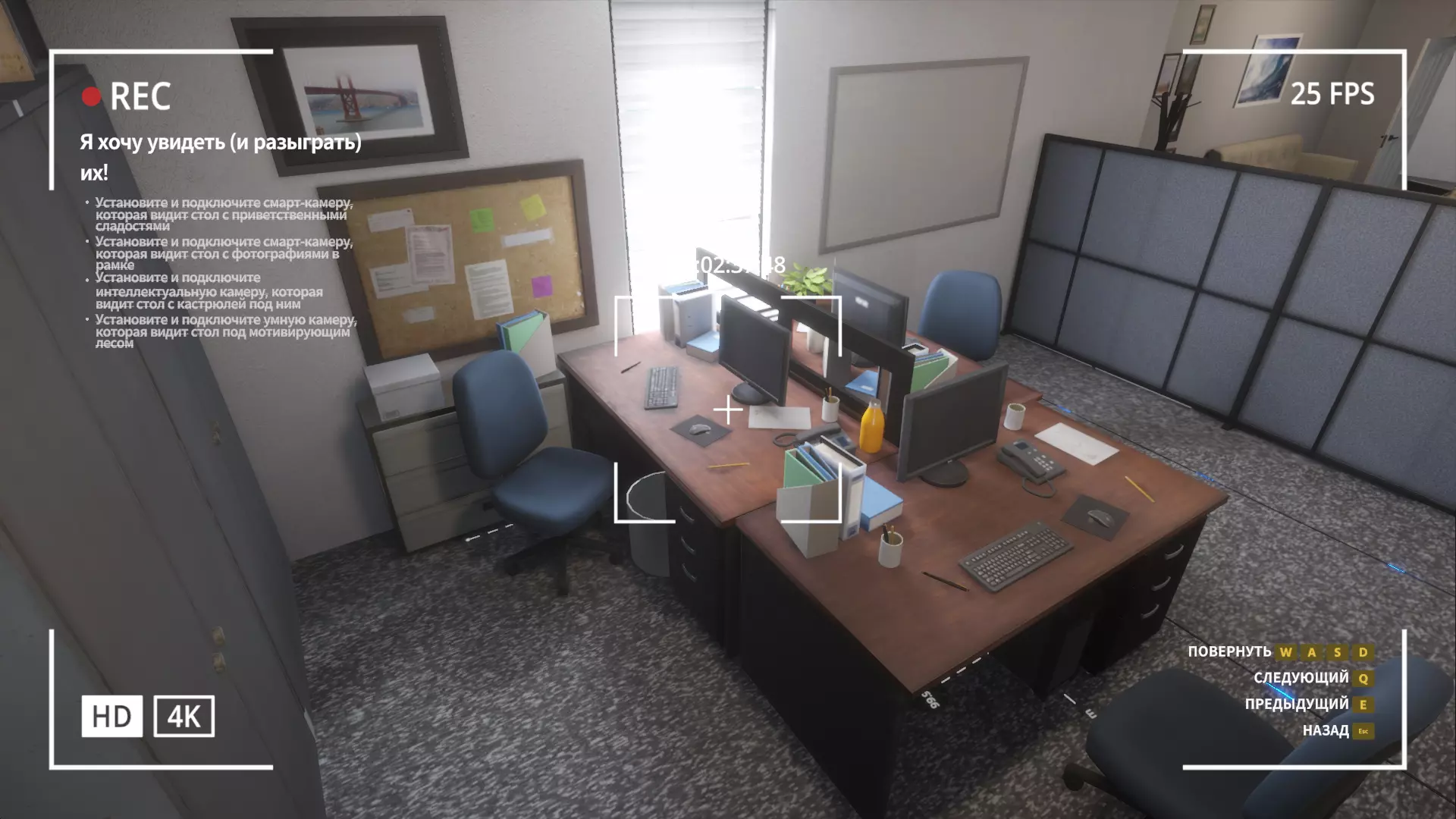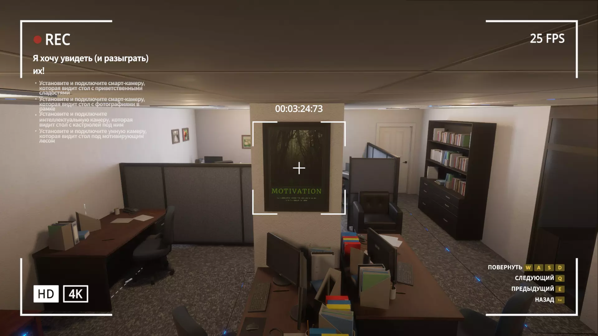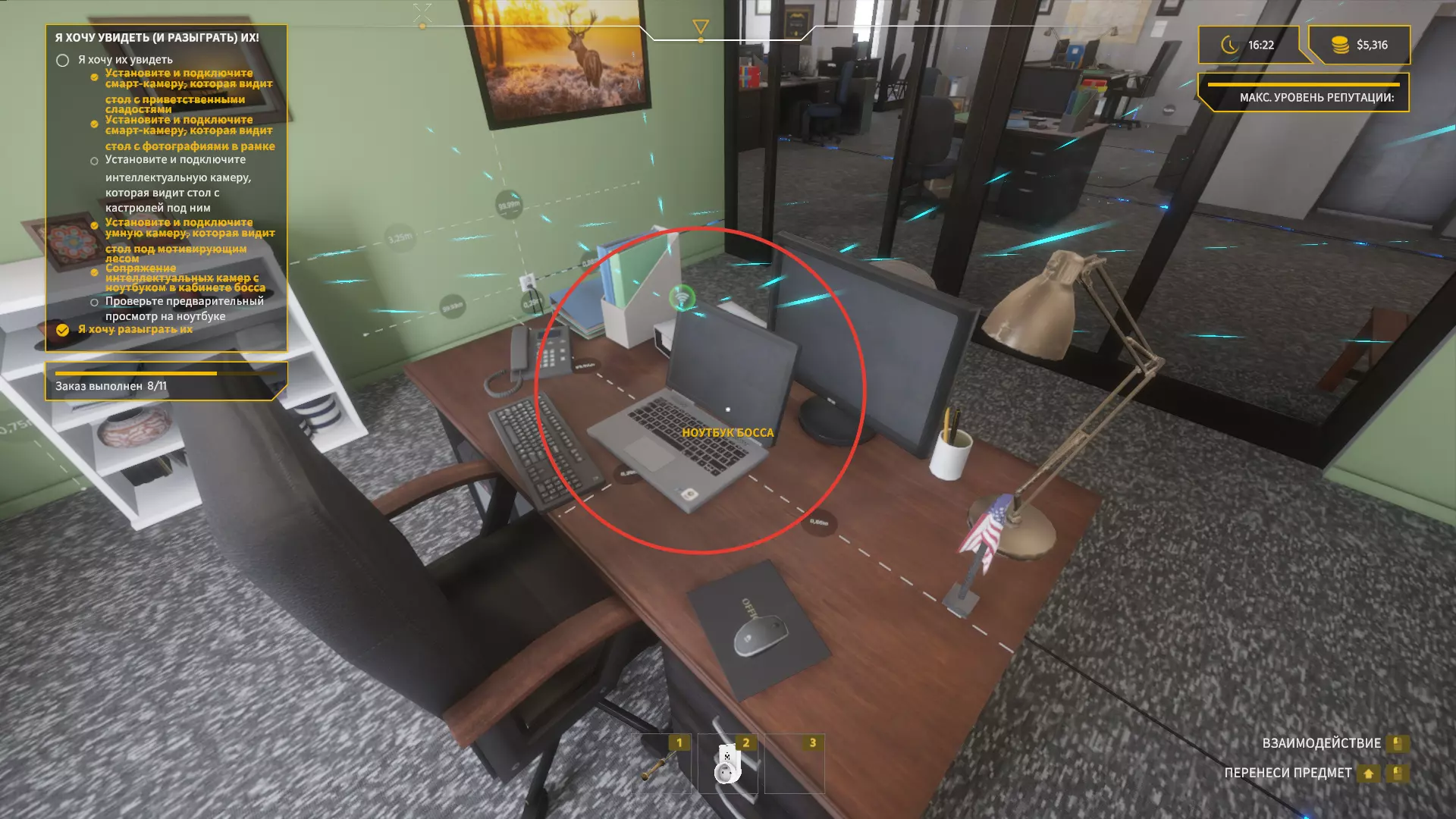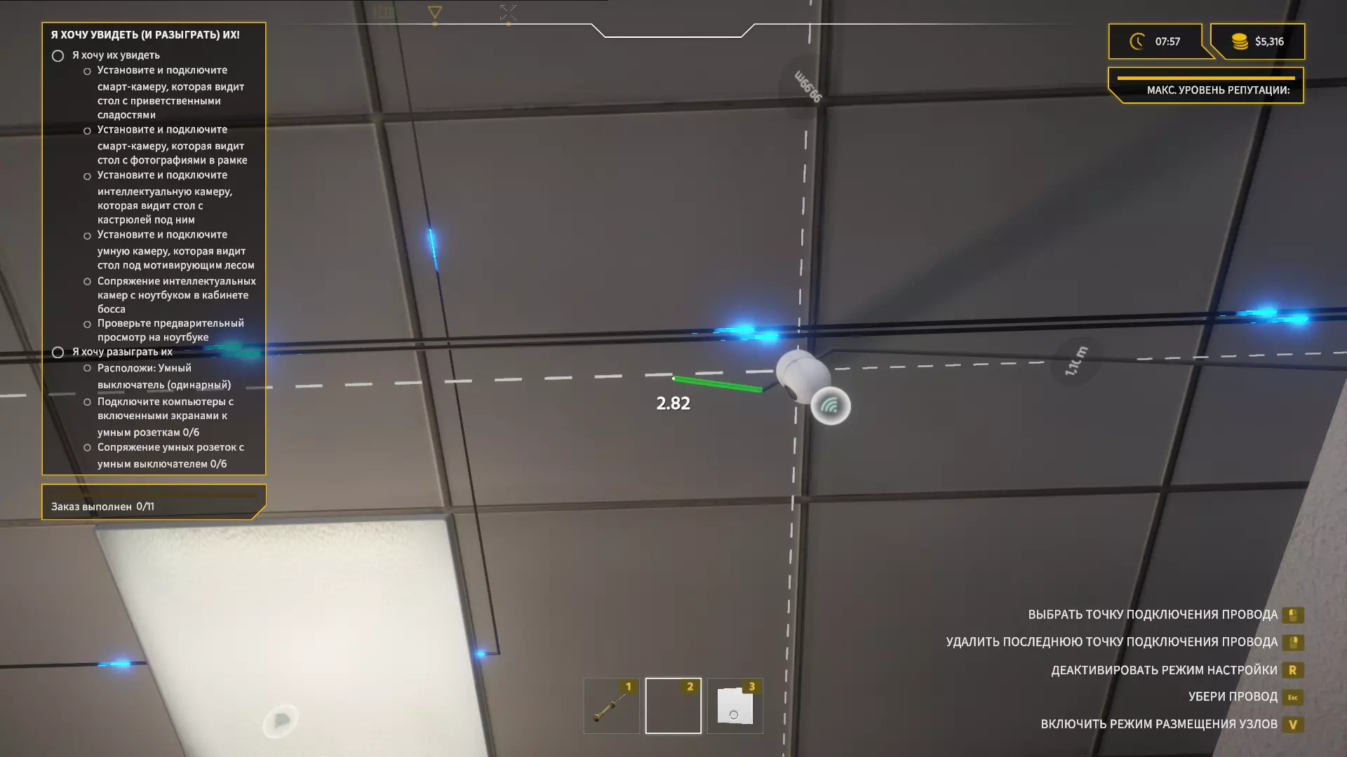 我们一打开门,就看向左上角,拿起【智能相机】并安装在天花板上。