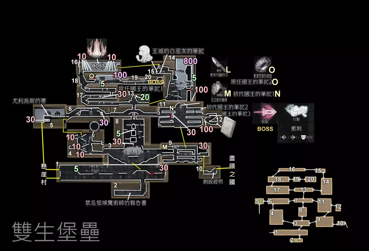 《双生堡叠》右下角小地图有数字对照