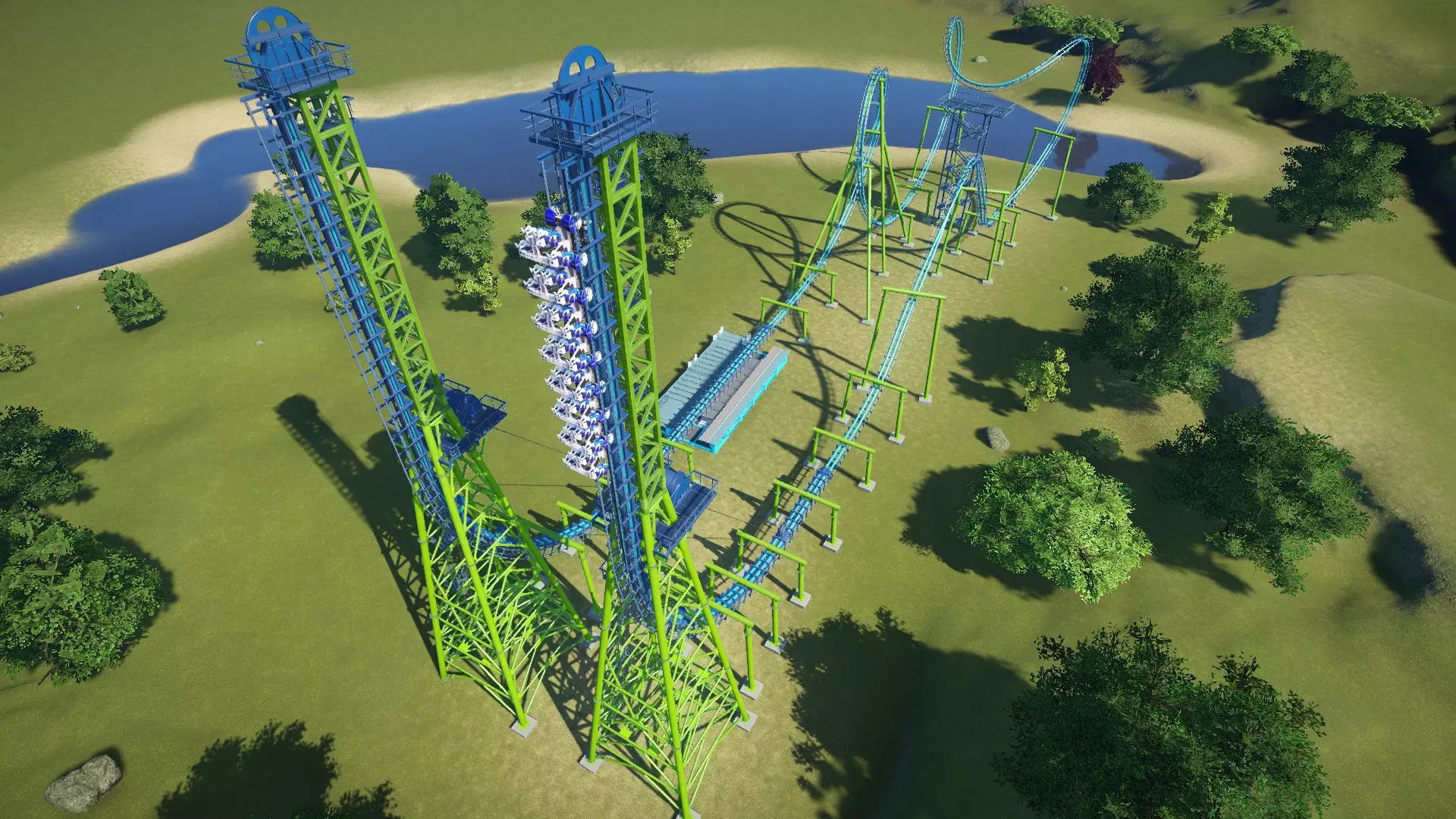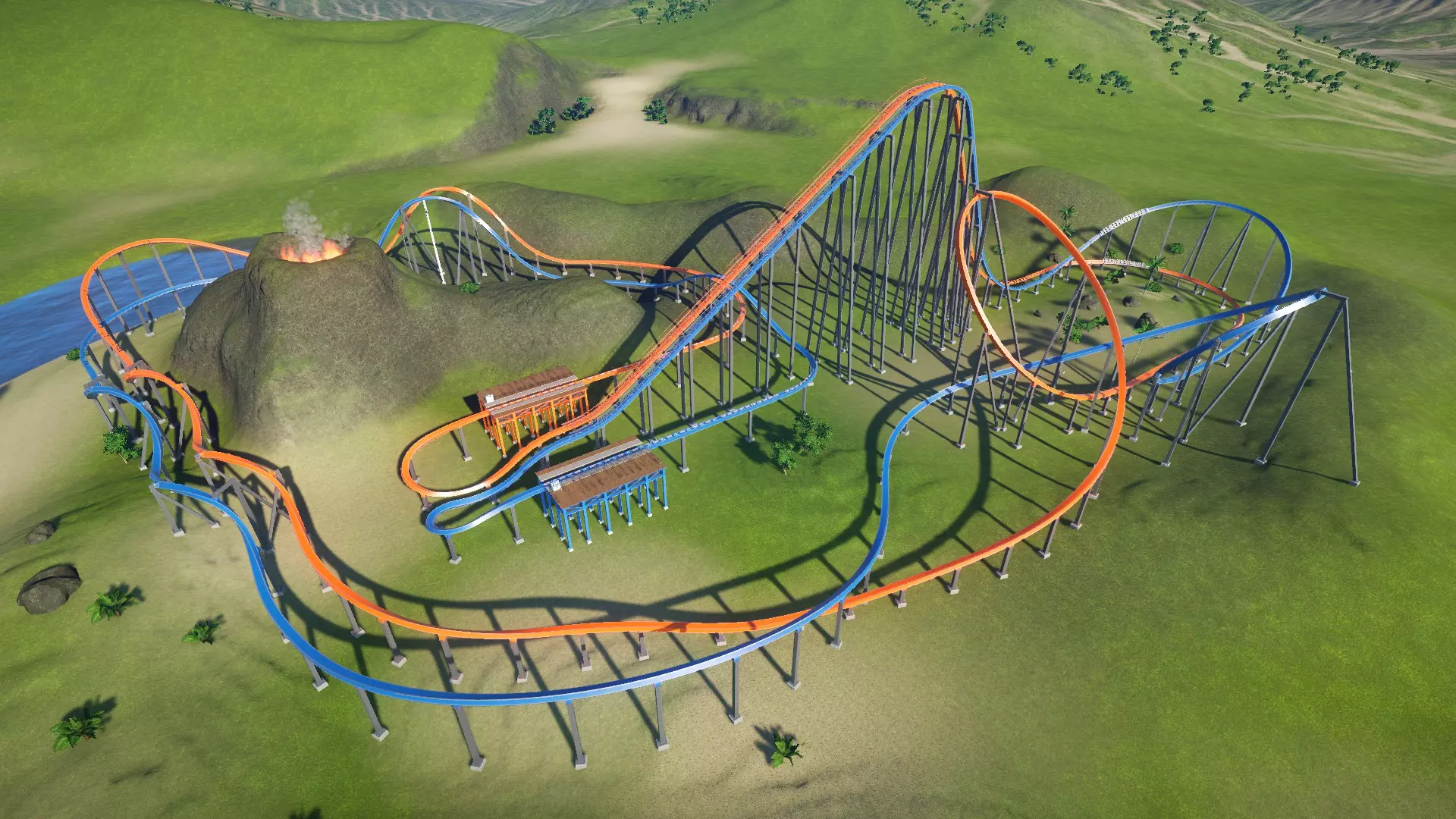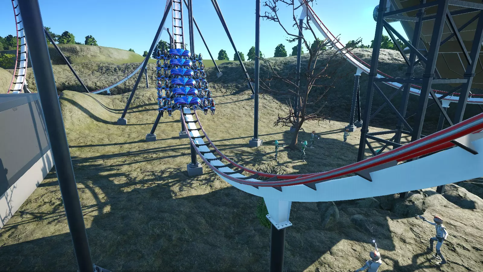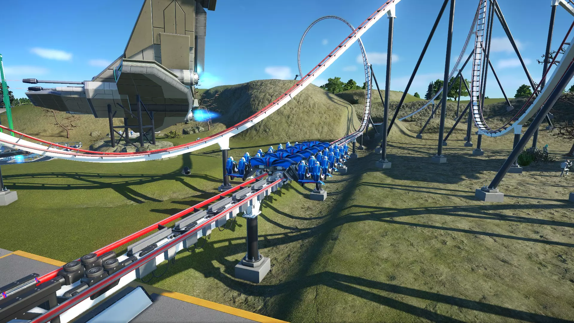 So there you have it! I wanted to share my knowledge to help out those who are just starting out and/or are struggling to build a coaster that they (and their guests) are pleased with. Hopefully you learned a thing or two in this guide. Coaster designing can seem difficult and intimidating at first, but with some practice you will be designing some amazing thrillers! Just remember to have fun and let your creativity take over! Thanks for taking the time to read this guide. If it helped you, please rate it up, favorite it, and share it with fellow coaster friends! Also, please feel free to drop suggestions, corrections, and any other feedback you may have in the comments. Happy coaster building! :) BlueprintsIf you want to try out some of the sample coasters used in this guide, here they are! http://steamcommunity.com/sharedfiles/filedetails/?id=922097225 I will be adding to this list as time allows. Unfortunately, a few coasters were lost when I overwrote the savegames of the parks they were in (poor decision on my part). I may make a few new coasters to replace them and update the guide and collection with the new ones. Planned Guide ChangesHere are some of the things I plan to work on as time allows: Finish discussing special track layouts. Proofread / correct spelling errors. I promise English is my first language and I speak it fluently. It doesn't always show when I type stuff out, though. Replace sample coasters that were lost in savegame overwriting with new layouts. Restyle some of the older labeled screenshots for improved consistency, color, and readablilty. The "Ride Operations" section contains both of my previous label styles (no color, then solid colors). "Triggered Events" has the newest labels with translucent color. Current Guide Changes[4/18/17] - Added new info to "Stations" section. [4/19/17] - Added new info to "Track Banking" sub-section. [4/20/17] Added metric equivalents/approximations alongside all relevant measurements. ("EFN Ratings") Added the rating scale for nausea. "Brakes" section is now directly above "Blocks and Block Brakes" for better continuity. Various spelling/wording fixes. ("Chain Lifts / Cable Lifts") Replaced a screenshot. ("Special Track Layouts") Added "Strata Coasters".[4/21/17] Rounded off several metric equivalents to neater values (ending in even numbers or 5) to seem more natural to metric-minded readers. Only edited where relative approximates are acceptable. Started work on coaster editor section to explain basics of the editor to new players and coaster builders.[4/22/17] - Coaster editing sections no longer considered work in progress. Still subject to edits/additions as I see fit. [4/23/17 - 4/25/17] (Forgot to document a few edits, sorry) New "Deuling Coasters" and "Ride Operations" sections. A number of spelling edits.[4/27/17] New section: Ride Customization Finished up a few sections and unmarked them as work in progress.[4/30/17] New Section: Triggered Events ("Coaster Editing 1") Re-labeled screenshot with new labeling style for consistency with other labeled screenshots. Updated intro/conclusion to reflect the current status of the guide.[5/08/17] - Created a link to the collection of sample coaster blueprints. [5/09/17] "Putting It All Together: Basic Layouts" renamed to "Basic Layouts and Landscaping". ("Basic Layouts and Landscaping") New sample wooden coaster to replace the previous one. Blueprint ("Sasquatch") added to the sample coasters collection. ("Basic Layouts and Landscaping") Landscapcing sub-section added.[5/29/17] A couple of new/modified pics, including edited labeled coaster pics. General wording/spelling edits.[6/01/17] I am now putting the date of the latest significant guide update (not including minor wording/spelling edits) in the description. Whenever this date changes, please check back to see what's new! ("Triggered Events") Removed duplicate image.[6/02/17] Recreated sample wooden duelling coaster in "Duelling Coasters". Blueprint ("Ridgeline") added to the sample coasters collection. ("EFN Ratings") Rating scales now displayed in a table format. ("Coaster Editing 2") A few informational additions. [6/07/17] - ("Chain Lifts/Cable Lifts") New guidlines added for smaller coasters. [6/19/17] - ("Chain/Cable Lift and Drive Tires") New / reorganized info. [6/26/17] - ("Sample Layouts 1") New Layout for boomerang coasters. Blueprint ("Rewind") added to the sample coasters collection. [6/27/17] - Revisions for Update 1.3 [7/01/17] ("Choosing a Track Type") New table to allow for better formatting and more entries as the game updates (I was bumping the word limit for that section). ("Triggered Events") Info and screenshots revised for Update 1.3 ("Powered Launch") Replaced pic. The other one looked a little tacky :-/[7/23/17] ("EFN Ratings") Styled tables for EFN rating scales. Been wanting to do that for a while. ("Choosing a Track Type") Spinning Wild Mouse added to the table. Directional arrows added to some coaster pics for clarity. This is a WIP project, so expect more of these edits. ("Coaster Editing 1") Updated info about heatmaps.[8/28/17] - ("Controlling High G-force and Track Banking") Discussed banking offsets. Been wanting to get to that for a while. [8/30/17] - Details about syncing coasters has been moved from "Ride Operations" to "Dueling Coasters" and edited to fit into it's new context. I feel the information is more relevant in that section. [8/31/17] ("Dueling Coasters", "Coaster Editing 1") Restyled labeled pics. ("Choosing a Track Type") Steel Vengeance added to the table. [9/01/17] (Ongoing) Revamping the Special Layouts sections. This will include recategorized sections, new coasters, and redesigned stat tables! New layout for Giant Inverted Boomerang track type. Blueprint ("Flashback") added to the collection.[9/25/17] ("Choosing a Track Type") In-Descent added to the table. ("Special Layouts 3") Discussed reverse-launch (In-Descent) coasters.[11/10/17] ("EFN Ratings") Revised section