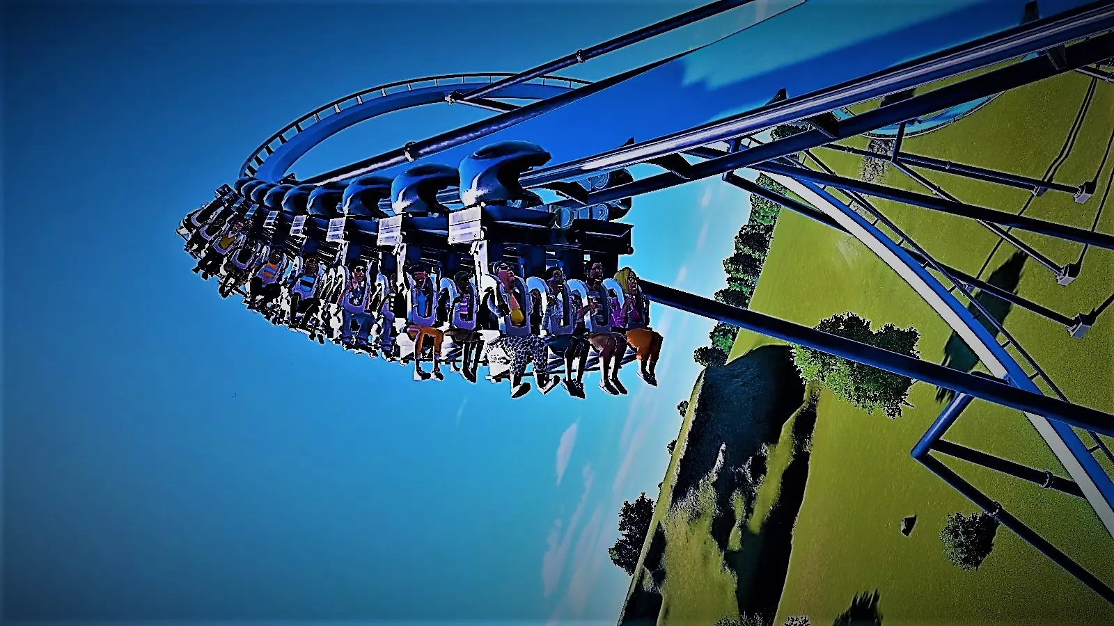 在编辑轨道时,实用工具轨道部件中有预建的缆绳/链条提升坡段。通常,每个部件只能使用一次。你可以进入实用工具选项卡调整提升速度和下降延迟等设置。如果想提升EFN评分(谁不想呢?),可以减少第一个提升坡的发射延迟(开始反向爬坡前的延迟)并增加释放延迟(开始让列车下坡前的延迟)。 遗憾的是,这里的设计灵活性并不高。提升坡实际上仅设计为默认长度。虽然理论上可以延长提升坡并为列车提供更高速度,但这样做会因坡底的固定形状导致较高的正向重力加速度。由于列车速度相对较慢,你无法在提升坡之间建造太多设施,因为列车将没有足够的动量来完成整个行程。最后,出于显而易见的原因,你只能让列车在轨道上运行。 虽然EFN评级并非惊险刺激,但回旋过山车独特的乘坐体验使其值得在公园中占据一席之地并投入资金。 巨型翻转回旋过山车(Bakasura)这是我最喜欢的过山车之一!这种过山车类型基本上就是加强版的回旋过山车!