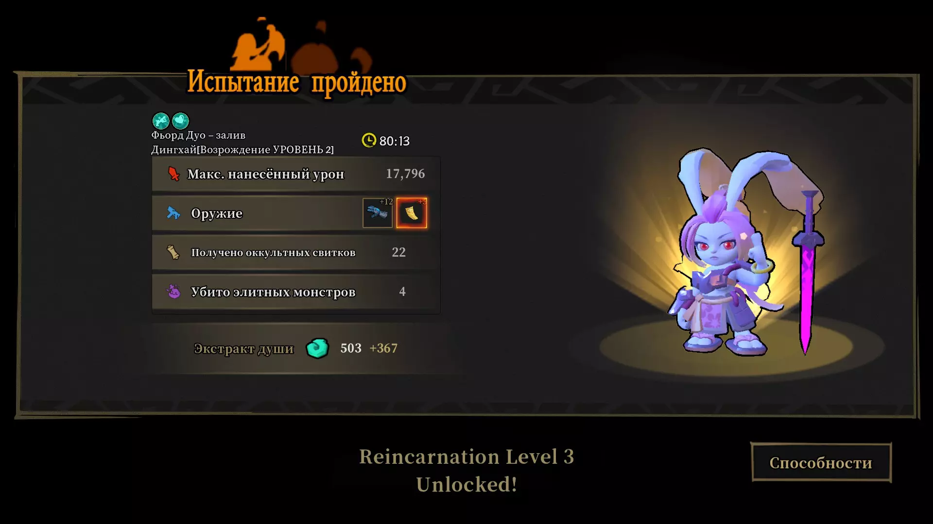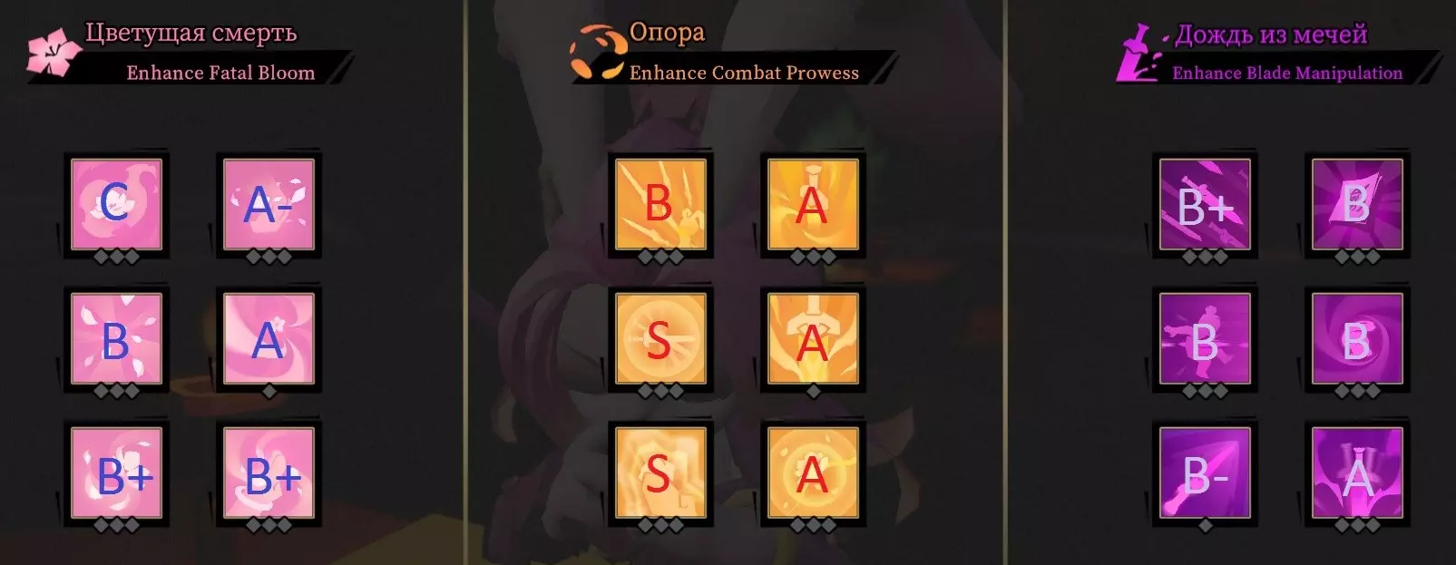 与其他角色不同,他对佩尔西卡(Персика)有纯粹的正面作用,使用第一个大招后能积累剑,而在大招完全积累完成前就应该已经积累完毕。如果已经拥有“剑术大师”(Мастерство владение мечом)这一祝福卷轴,则无需再获取。如果使用的是手榴弹,那么获取它没有意义。