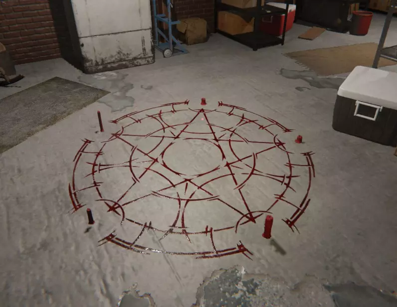 魔法阵可召唤幽灵进行互动或拍照。 使用方法: 需要点燃5根蜡烛(F键),每根蜡烛消耗16%的理智。 激活后,幽灵会显现5秒,随后开始狩猎。 若点燃最后一根蜡烛时玩家理智≤16%,狩猎将立即开始。 通灵板
