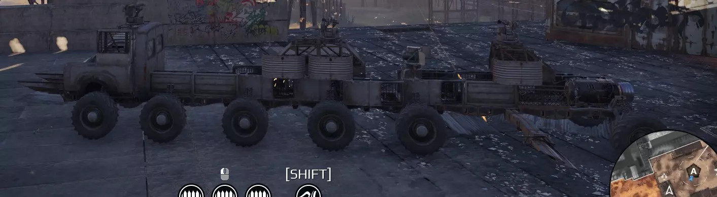 常规车轮位置,四轮驱动,侧向安装,效果很好。任何奇特的车轮位置通常都毫无意义,只会引起对手不必要的注意。你的车辆外观应看起来普通,但性能要致命无比。四个车轮是必需的,六个车轮则更出色且安全,八个车轮就显得多余了。 八个脆弱的车轮不如四个坚固的车轮。 长车身车辆 长车身车辆毫无用处。机动性差,容易成为攻击目标。此外,如果车身框架的一部分被摧毁,车辆的一半也会立即报废。 糟糕且不必要的长度;没有任何优势。