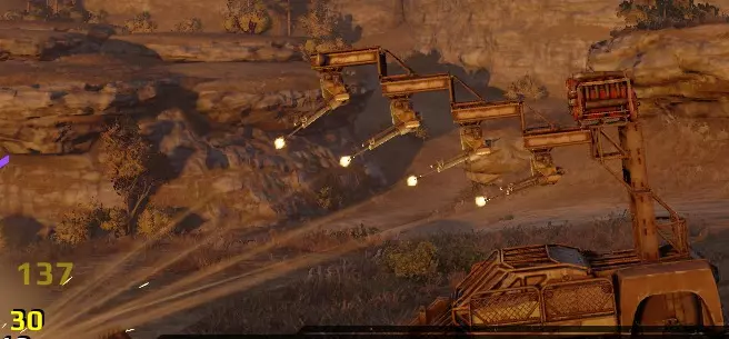 战斗力是车辆的某种评分系统。战斗力越高,车辆越稀有,匹配到的对手也越强。不要无缘无故地大幅提升战斗力,这么做需要合理的理由。如果你的武器还处于初始的低级水平,把车辆战斗力提升到2300以上是没有意义的。战斗力应该与你的武器威力同步提升。 武器的伤害属性是最重要的。通常情况下,你应该在当前能量允许的范围内,为车辆装配最强大的武器。 能量值由驾驶舱提供,额外的能量可以通过安装发电机获得。 如果你的车辆变得过重且速度太慢,应该考虑额外打造一个引擎。引擎提供动力,动力提升速度,速度则带来机动性。机动性可减少战斗中受到的伤害。 火炮位置:良好的位置 火炮必须保护起来,使其除预定射击方向外的所有方向都能得到防护。显然,你的火炮两侧应用厚重装甲(卡车车门、墙壁、面板)包裹。使用小型垃圾部件(耐久度低于30)通常毫无用处。它们只会增加重量,却无法真正防御爆炸伤害。 【不佳,容易损坏脱落】