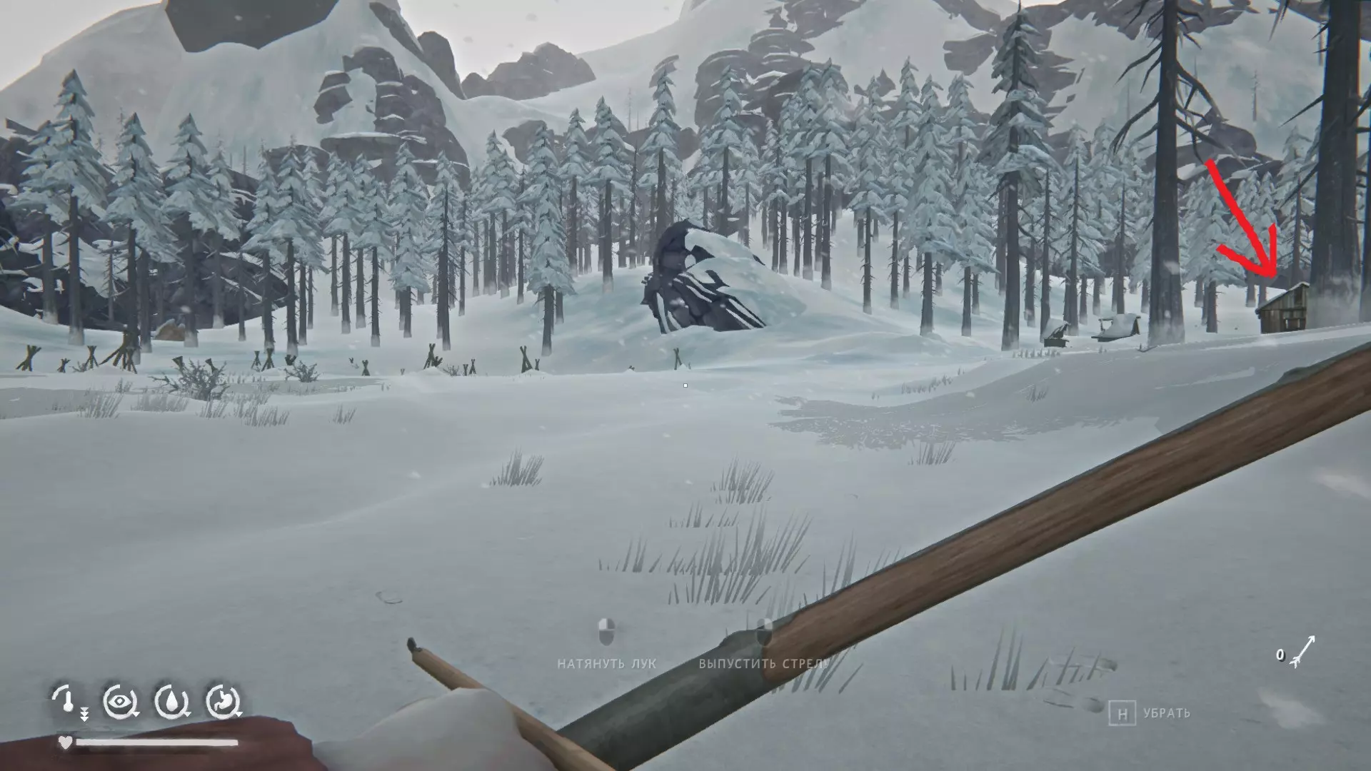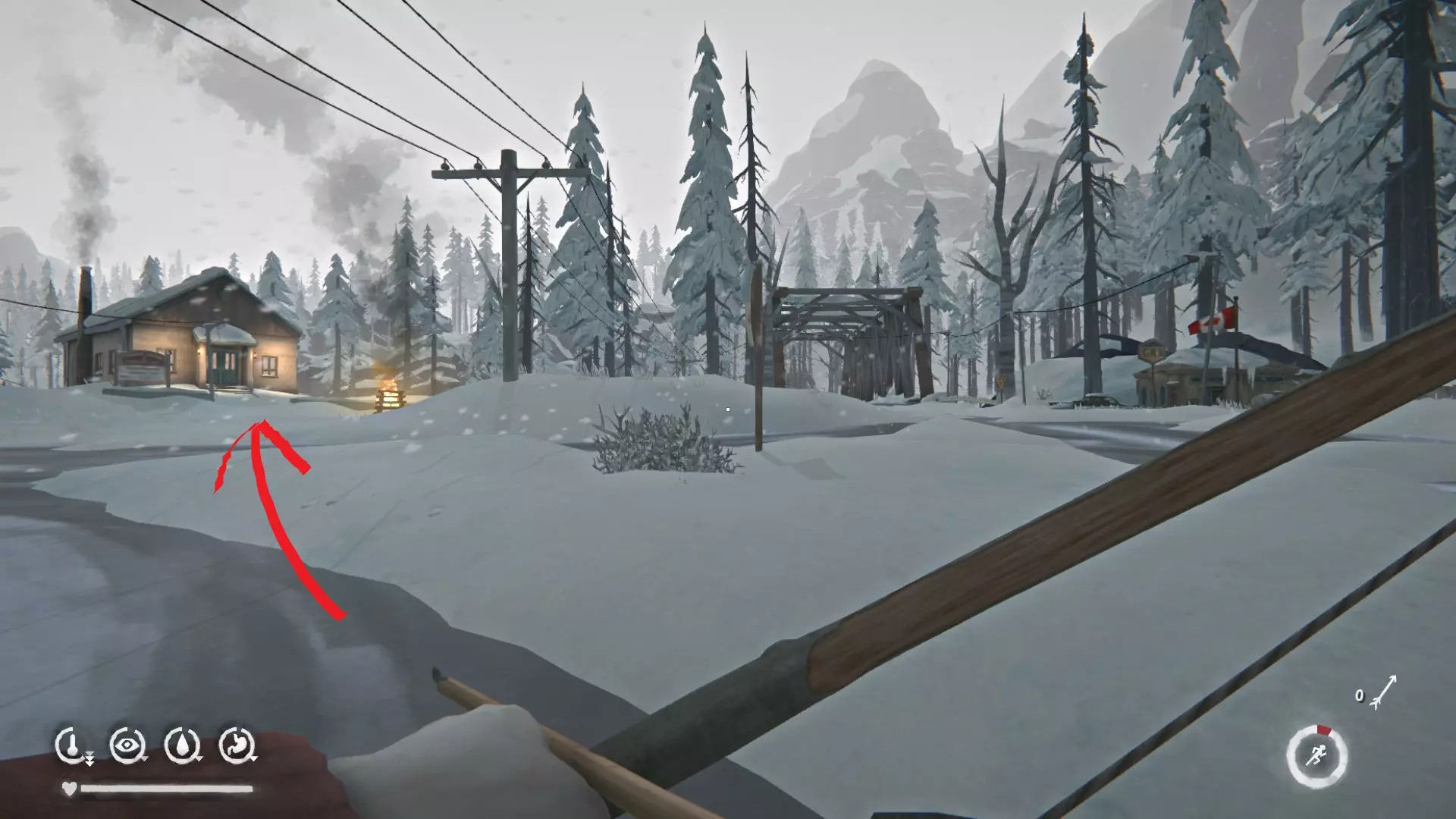 现在我们走出建筑,朝着地图上标记的地堡位置前进。不过它的位置并不难找到。毕竟,玩过普通生存模式的玩家都知道,在通往【狼山】的路口附近,也就是以前有绳子的地方,总是有这个地堡,这能让人立刻想起它的位置。