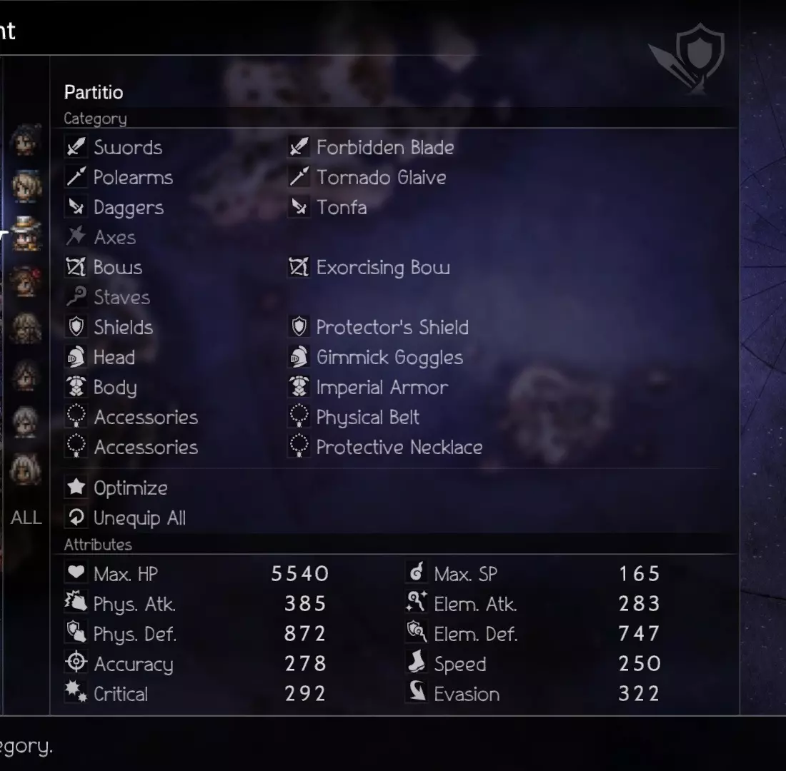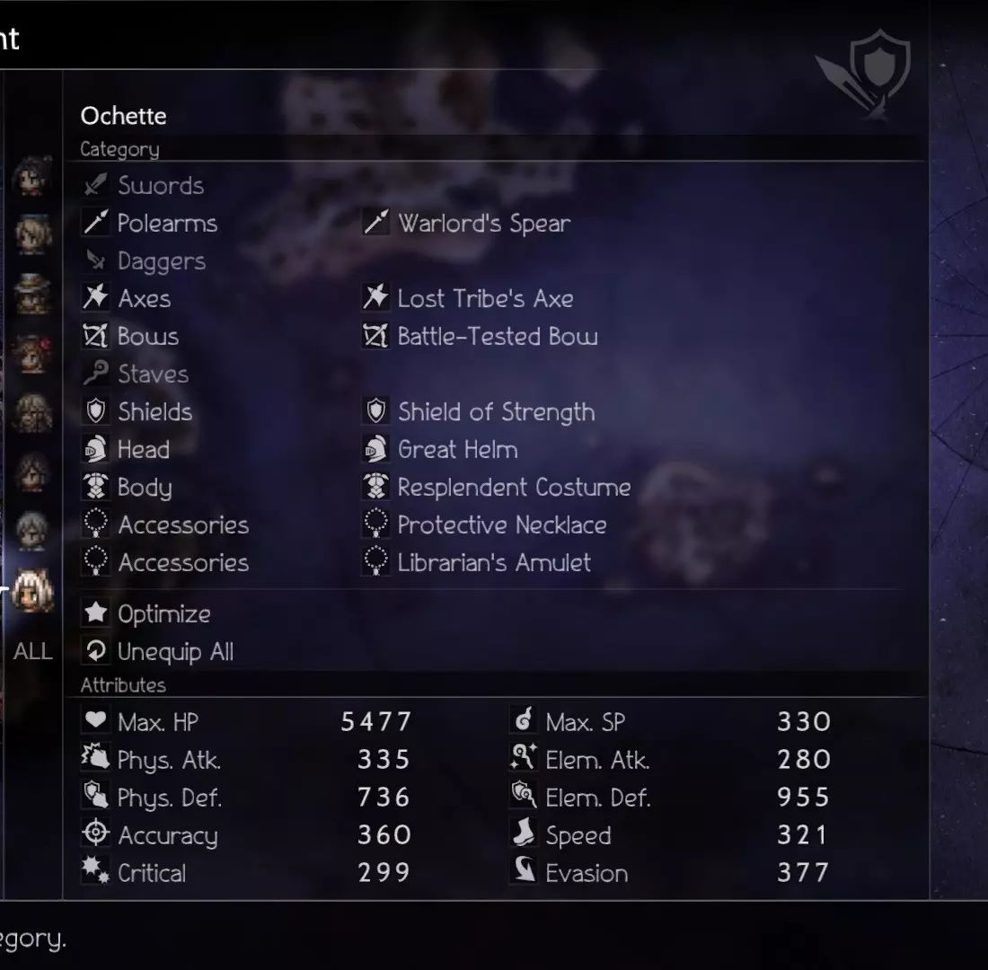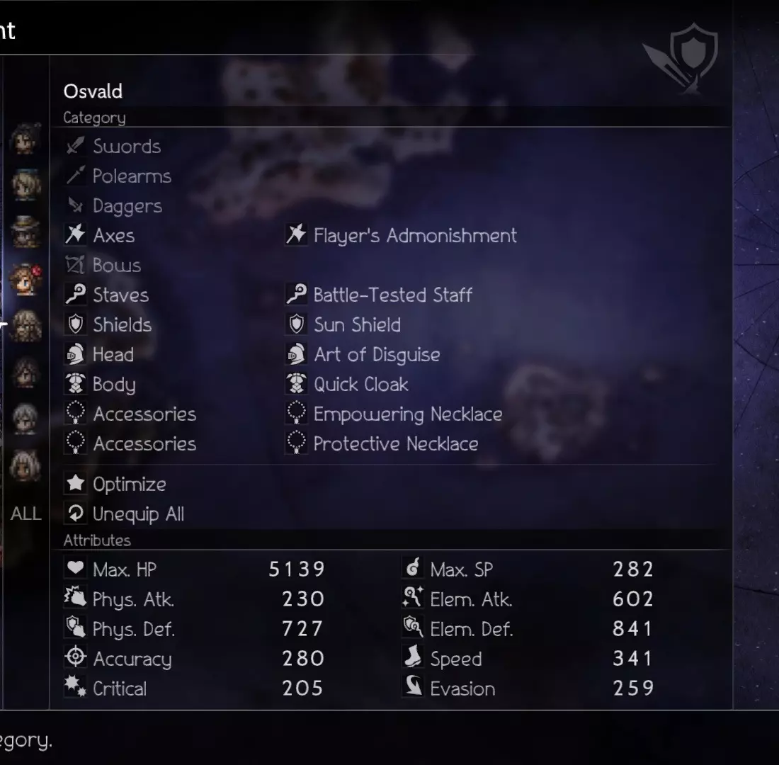 If you are having trouble destroying the souls surrounding the boss, you can combine Deep Analysis with Sealticge's Seduction to fully analyze all enemies during Phase 1. This will greatly enhance your AoE On The Hunt and help you clean up the trash faster to focus on the eye. Video & Explanation Phase 1 Hikari - Damage Castti - Sustain (Concoction) Partitio - Sustain/Damage Agnea - Buffs/Emergency HealsOverarching Strategy: Abuse Sealticge's Seduction to pummel everything with an AoE on the Hunt. First Turn (A Step Ahead): Castti - Medicinal Concoction - Pomegranate+Mighty+Strength+Diffusion Partitio - Debuff with Hired Help -> Ruffian Subsequent Turns: Castti - Medicinal Concoction - Pomegranate x2+(Rotate between Mighty/Warding/Weeds OR Grape if needed)+Strength+Diffusion Partitio - Hired Help -> Foreign Assassins to keep HP and SP topped up Agnea - Use Sealticge's Seduction and Aelfric's Blessing on Hikari and then spread Aelfric's Blessing around as needed. Mix in Latent Power+Sacred Shield when available but prioritize keeping Hikari at his strongest. Hikari - AoE On the Hunt or AoE Deep Analysis (if needed). Assist with breaks. NOTE: The boss' first move aside from summoning is to cast heat (HP damage over time). Unless your attacks match the first wave of souls' weaknesses (they share Axe and Wind as a weakness), do not attack them needlessly outside of Hikari's On the Hunt, or else they will counter-attack. Partitio can attack using Foreign Assassins freely after the first break because subsequent summons don't counterattack. (Boss Weakness: Dagger, Axe, Staff, Lightning, Light) Also, don't waste turns to heal with Agnea unless necessary because Hired Help -> Foreign Assassins' Energy Thief is more than enough for consistent full healing. Phase 2 Osvald - Sustain Throné - Damage Temenos- Buffs/Damage Ochette - Buffs/Breaker First Turn (A Step Ahead): Ochette and Temenos' initial goal is to pass around Jam and Buffs during this initiative turn. We want to set up Osvald with Dohter's Charity as early as possible because he will be doing what Castti did (by spamming AoE Jams) for Team 1... minus the OP concoctions. Subsequent Turns: Pass Aelfric's Blessing around especially to Throné once she uses up her Latent Powers. Refresh Dohter's Charity when necessary. Ochette - Break the 2 bottom body parts using Ancient Frogking II (Hunter Multi-Provoke) so that Throné can annihilate the parts faster with Aeber's Reckoning (the top part is only weak to elements but it will go down after a few repetitions of Aeber)Once the parts are down, the boss' shield points will go all the way down to 20. I suggest always prioritizing the break rather than aiming for the "best break timing". The boss adds some more shield points every turn and becomes stronger when alone so it's better to just keep it from attacking altogether. **IMPORTANT** Between the turn you destroy all the body parts and the next turn is a freebie. The boss' shield can't be reduced during this time (14:26 in the video) until the next turn arrives so use this free time to Summon Elderly Man and/or Merchant for their single-target dagger-breaking abilities. These 2 Summons, combined with Ochette's Multi-Provoke (Ocean Lizardking III), guarantees the boss will stay broken as much as possible. The great thing about Ocean Lizardking III is that it synergizes with Throné by providing a speed buff that primes Aeber's Reckoning for the break. (Boss Weakness: Spear, Dagger, Bow, ???) Though the boss does not revive body parts, keep in mind that Phase 2 can change weaknesses if the battle goes on for too long. I don't have data on those weaknesses so just keep topping up your team with AoE jams to fully unload on the boss every turn. Good luck! Ochette - Break and Debuff the boss with Summons. Temenos - Rotate between buffing Aelfric's Blessing and Hired Help -> Foreign Assassins Osvald - AoE Jam JAm jAM Throné - Aeber's Reckoning until the end