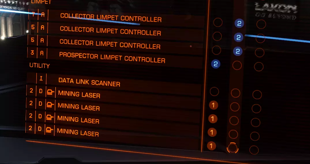 As you can see here in the left upper corner under the planet description you can see "pristine reserves" Pristine, the best reserve you can get. (You should only mine here) Major, second best. (Not recommended) Common Low Depleted This is the order in what Reserves are displayed. It also depends on what kind of ring you are mining on. As you can see i have selected the Planet 7 in the Delkar system. The Ring A (closer to the planet) is Metallic, which is the best it can be. So whenever you want to do some mining (except Icy rings) you want to go for Pristine Metallic or Pristine Icy Rings. Now that you know where to Mine you will need a fitting Ship for it. Like i said, the Python would be the minimum recommendation for it to not become a rather annoying experience. Somthing like this would be nice: Dead Link removed. If i can find some time i might readd a new ship build. You need to bind Mining Laser, Prospector Limpets and Collector Limpets on firebuttons. So you need at least 2 Firegroups. Approach the planet with the rings. You will see Ressource Extraction Sites. DON'T go there. Just drop into a random spot on the rings where no extraction site is around. This will keep NPC's away from you and you can Mine in freedom without being attacked all the time. Just approach the ring slowly. Make sure not the speed into it. That might damage your hull a little bit. Which wouldn't be the end of the world but try to avoid it. Don't forget to stack up on Limpets. You can buy these on any station with maintenance service. Once you are in the Asteroid Field you just use your Prospector Limpets and shoot them at an Asteroid. This will show you what the asteroid is made of. If it is a material you desire, mine it with the lasers. Before you start mining deploy all your collector Limpets. (It would be 9 limpets with the build i linked) and deploy your cargo hatch. The Limpets will collect the fragments and the refinery will turn them into ore. To know which materials are worth mining a site can help you. https://eddb.io/commodity Here you will see a list of all the commodities in the game. Scroll down to Metals and Minerals. What you normaly aim for is: Platinum Osmium Palladium Gold Painite These are at least the things i mine every time. Once you collected enough fly back to your station and find a good buyer. If you want maximum profit you can try to use Dead Link removed. to find a decent buyer. Or you can just sell it on the station you are on. Make a little bit less but you can head out again. Mining is not a particulary good way to make money. It's okay, but far from special. Third Party Tools Most of the time if you ask someone else "Where do i get?" "Where do i find?" "What is a good trade route?" And so on, they will send you to a 3rd party app or homepage. The Community is just AWESOME in Elite. So here you will find a list with the most useful Programs and Hompages for Elite. Webapp: https://inara.cz/ This is your allaround help page. It offers everything. Overview over engineering, blueprints, a huge community. Make an Account here. It helps a ton. https://eddb.io/ This is your "I need to find xyz" Homepage. You can search for nearly everything. Certain stations that sell a certain ship or module. Planets with certain ressources. Trade Routes, System with specific states like War, Outbreak or Famine. Save that page. https://coriolis.io/ Ship Builder with indepth statistics. https://www.edsm.net/ This is perfect any aspiring explorer. It offers everything you need for planing exploration trips. There are also programs that upload your progression automatically to EDSM and INARA (will cover them further down) https://docs.google.com/spreadsheets/d/1yo1iHP9KUXpoBaIzJsRsDxfAcQa7cBq0YUIFy3m2NII/edit#gid=585994681 Spreadsheet for all the Materials and how to get them. http://edtools.ddns.net/expl.php Road to Riches Route Planer (See exploration section for more details) http://edtools.ddns.net/ Miner Tool to find Pristine Metallic system. http://www.elitegalaxyonline.com/ Records for your Discoveries. Programs: EDEngineer Easy Program to create lists for engineering. It also autoupdates your materials so you have an easy overview what you are missing. EDDiscovery Can autoupload your logs to EDSM. Perfect tool for explorer but also useful for everyone else. EDMC Tool that sends information to hompages like EDDB. Can also autoupdate EDSM and Inara. Help not only yourself but also the community! EDDI Text to speech program that provides various informations. Voice Attack Immersion Program that lets you talk to your ship. In combination with HCS Voicepacks this can make quite the enjoyful addition. It can also help if you have limited buttons since you can make your own Macros with it that can be activated via voice. This Program needs to be bought. So keep that in mind. Also HCS Voicepacks need to be bought as well. This program is by no means necessary but, oh boy do i love it. Furhtermore i want to introduce 2 really great Elite Dangerous Communites that are not only friendly and helpful, but also cool and fluffy. First of is Mobius. Mobius is a Private Group you get accept by applying to it. Links to that will be provided further down. This is a pure PvE Player Group. Read the Rules and Stay friendly. https://elitepve.com/ General overview and Forum https://elitepve.com/page/join How to Join. I hope i see you guys around and in the Mobius Discord. The second Group i want to introduce consists of brave Warriors of the Dark that try to protect Human space as good as possible from the Xeno threat. Discord: https://discord.gg/gZbAWCF https://antixenoinitiative.com/ These people help with Shipbuilds to combat the Thargoids and provide assistance if you run into problems. Great Community. That should cover it :D I know it is a lot. There would be even more that could be added, but i didn't wanna go overboard. With these pages you should be able to tackle any problem you encounter, and if you sti