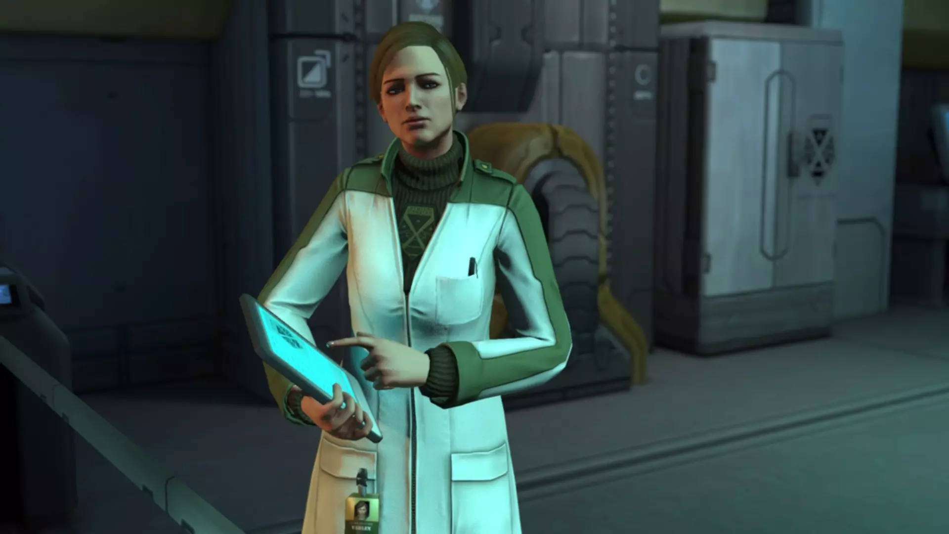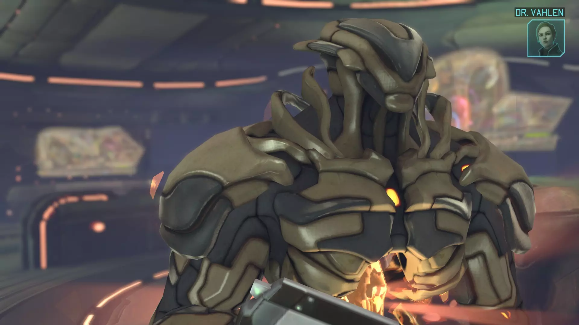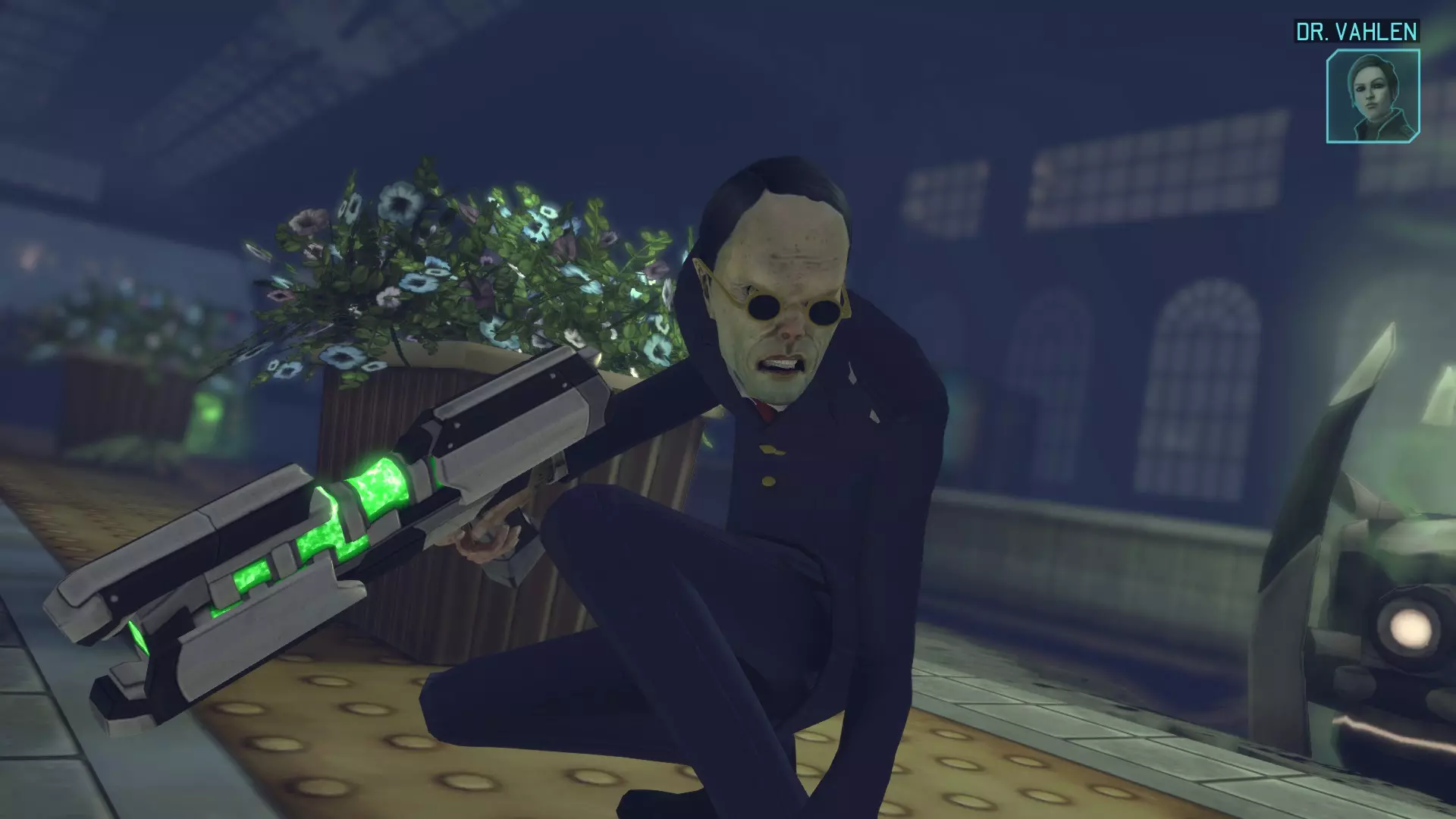 在你制造出第一把激光步枪后播放的过场动画中,出现了一个来自《幽浮:未知敌人》的 Sectoid 纸板人形。