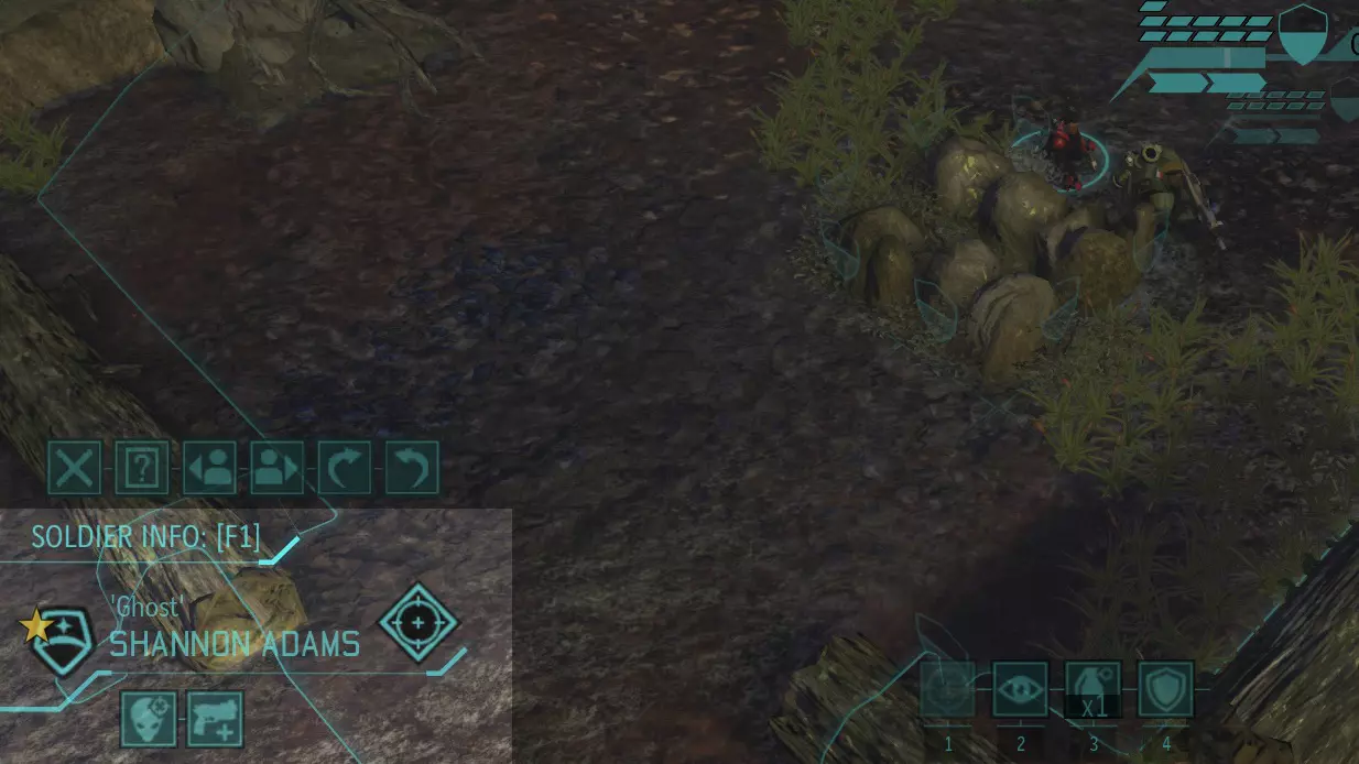 色彩搭配的艺术非常重要,(含糊不清的嘟囔)。 初始设置:当你尚未与任何敌人交战时,你是安全的。当你与外星人交战时,你会看到他们的过场动画。这意味着在未与敌人交战时,你可以自由移动,但要记住,当你遇到敌人时,你需要掩护。最安全(也是最佳)的接敌方式是让所有小队成员都处于完全掩护或至少半掩护状态,然后每次让一名队员缓慢前进。如果你想非常谨慎,可以确保在移动到未知区域时,所有队员都拥有完整的行动点数(AP:每回合开始时每人有两点)。如果你这样操作,当遭遇敌人时,小队中除了向前移动的队员只有1点行动点(AP)外,其他所有队员都会有2点行动点。不要鲁莽行事。你可能会问,为什么在缓慢推进时要使用【守望】技能,这是因为有时外星人会进入你的【视野范围】(即屏幕上的有色区域),当这种情况发生时,你就有机会重创那些该死的外星人。