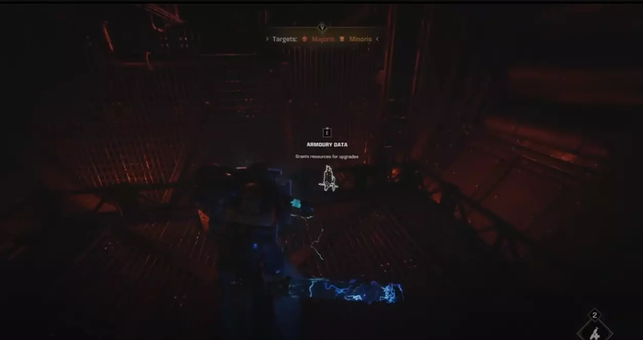 在你集合的第一个电梯处,跑过电梯并向右走。立即左转,也就是从你出发位置看电梯的后方。军械库数据位于角落里的一座小塔中。