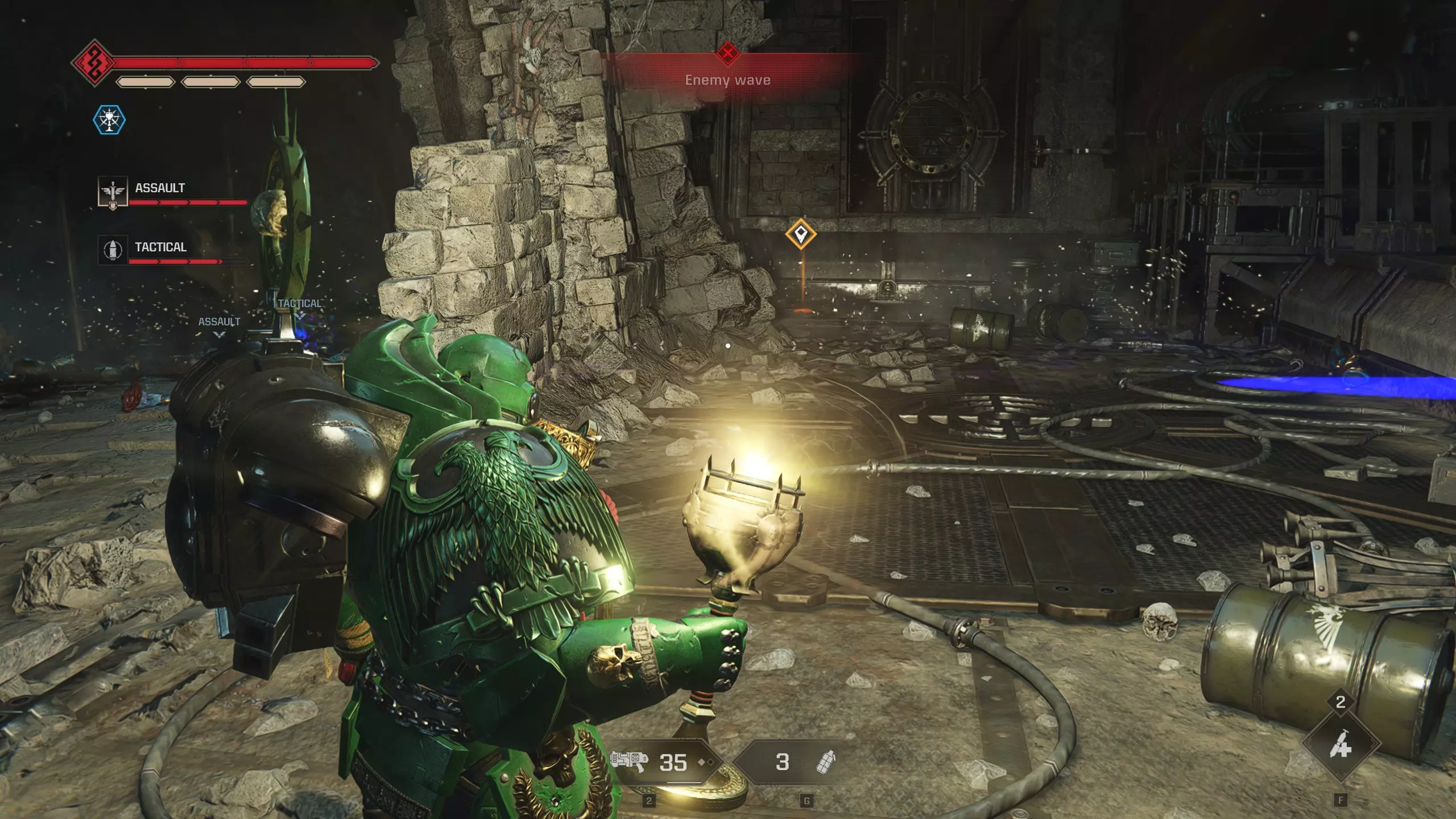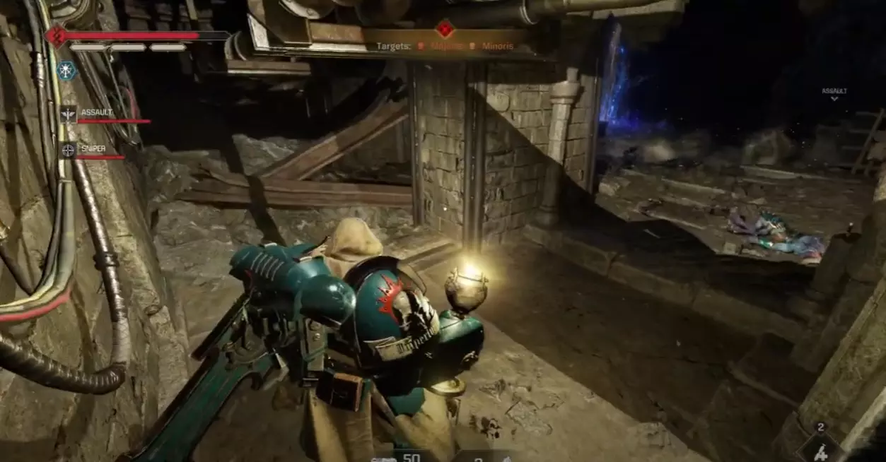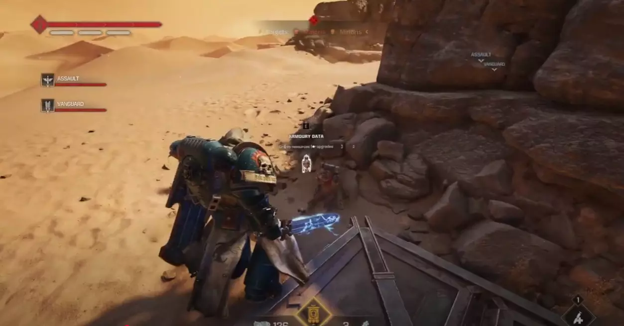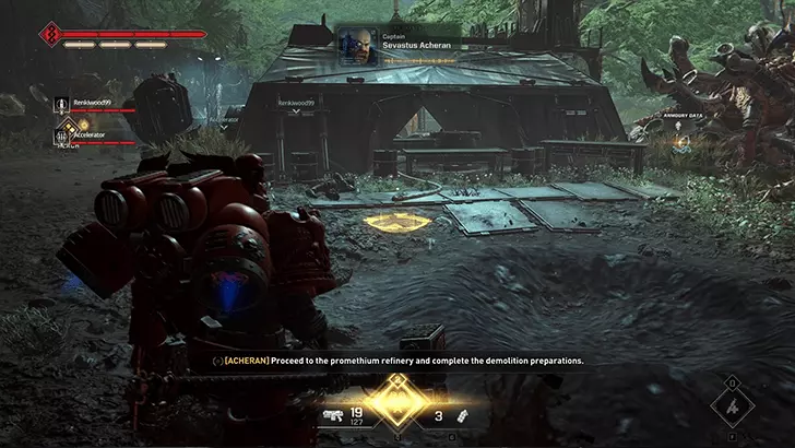 《战锤40K:星际战士2》行动模式军械库数据位置 行动1:地狱 位置:星界军营地内,弹药箱正上方的路障后方