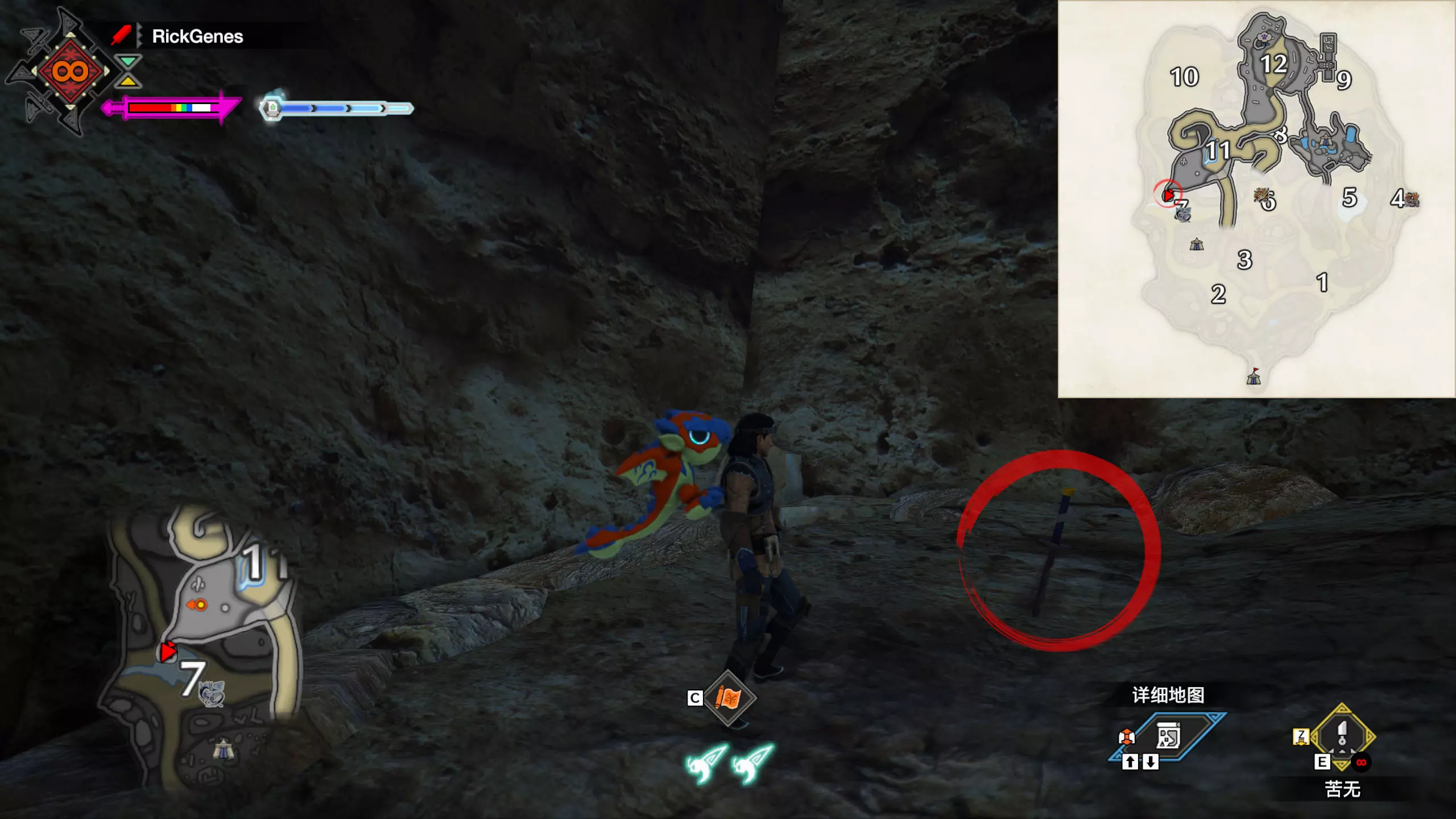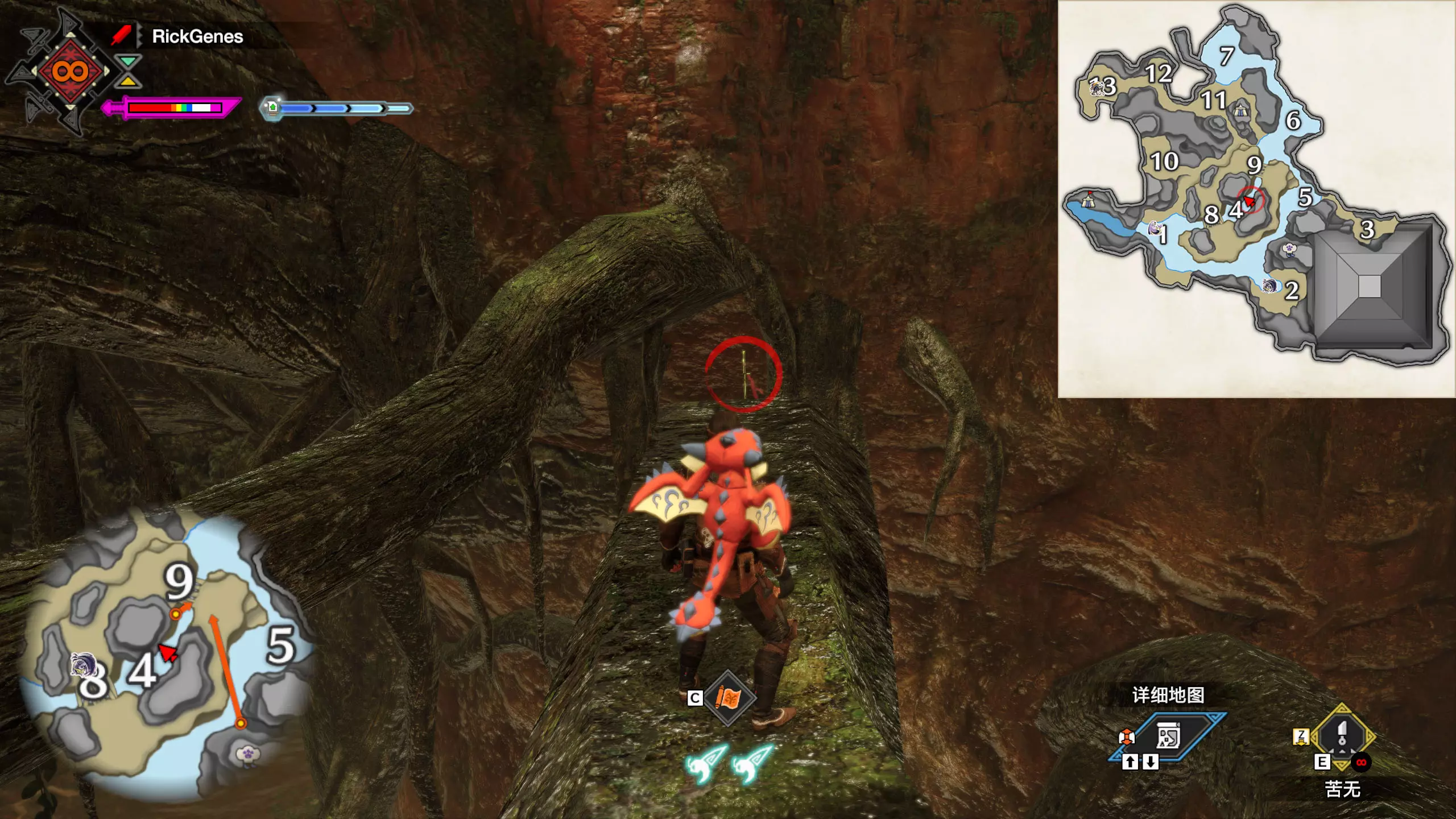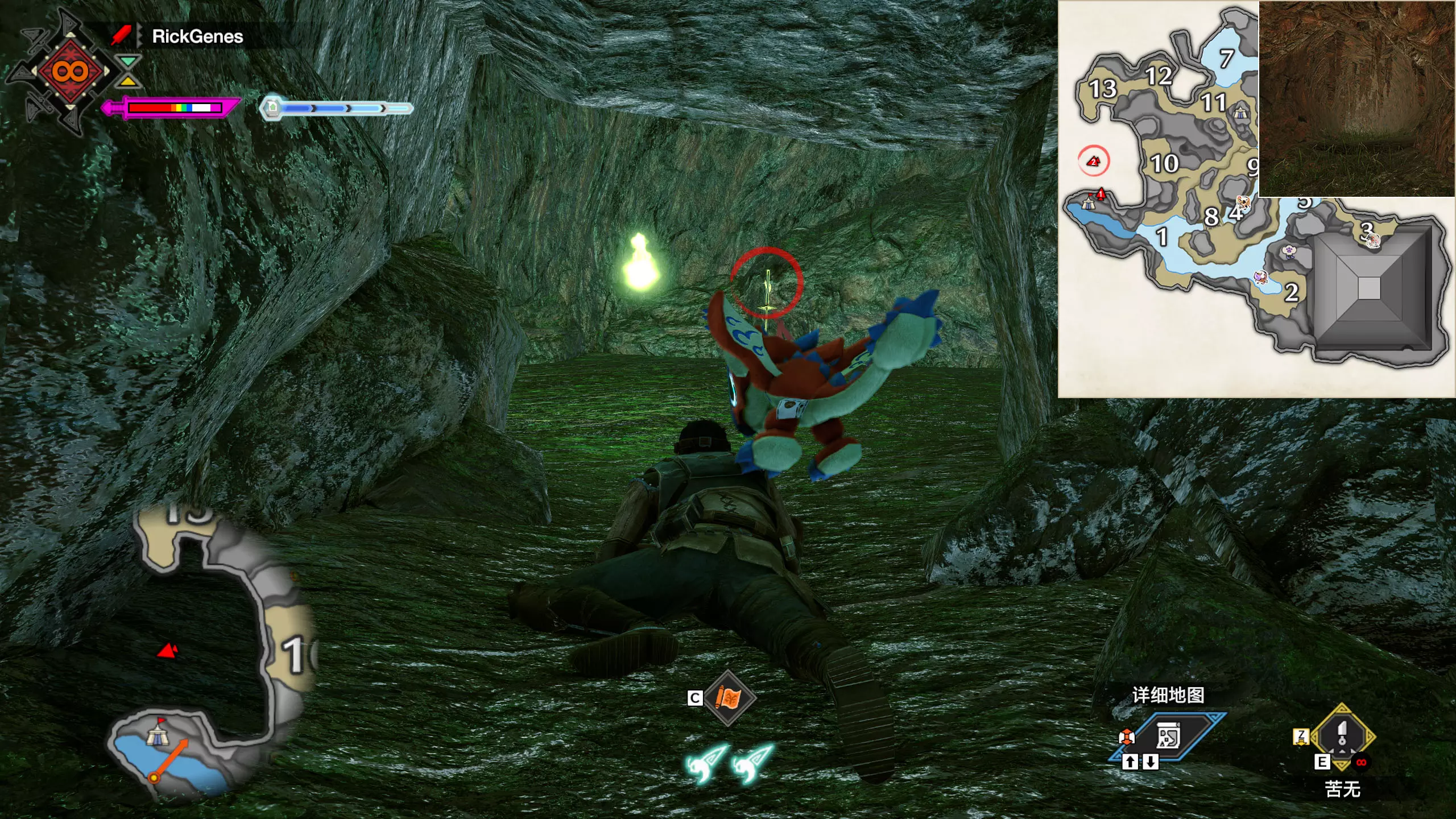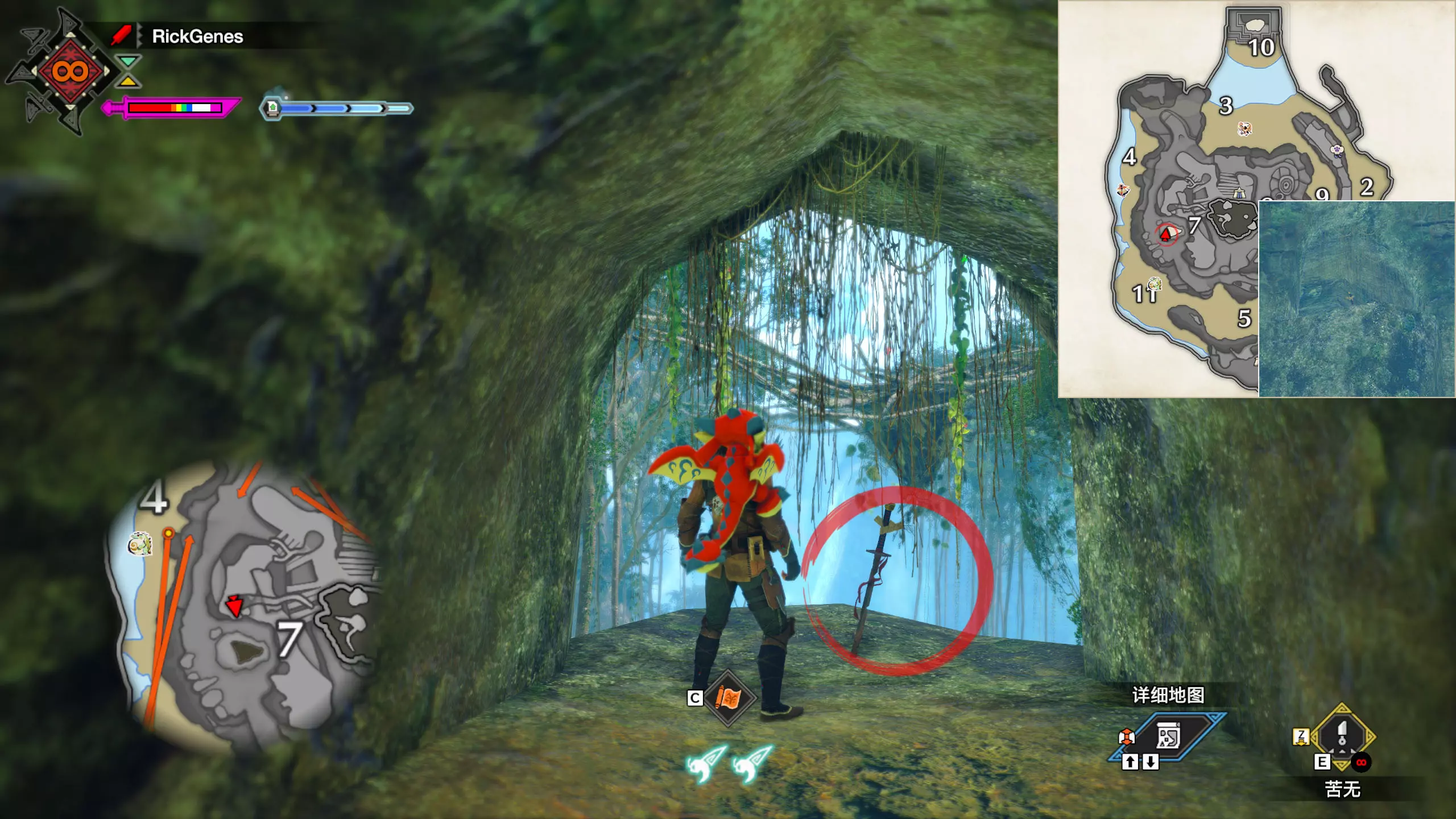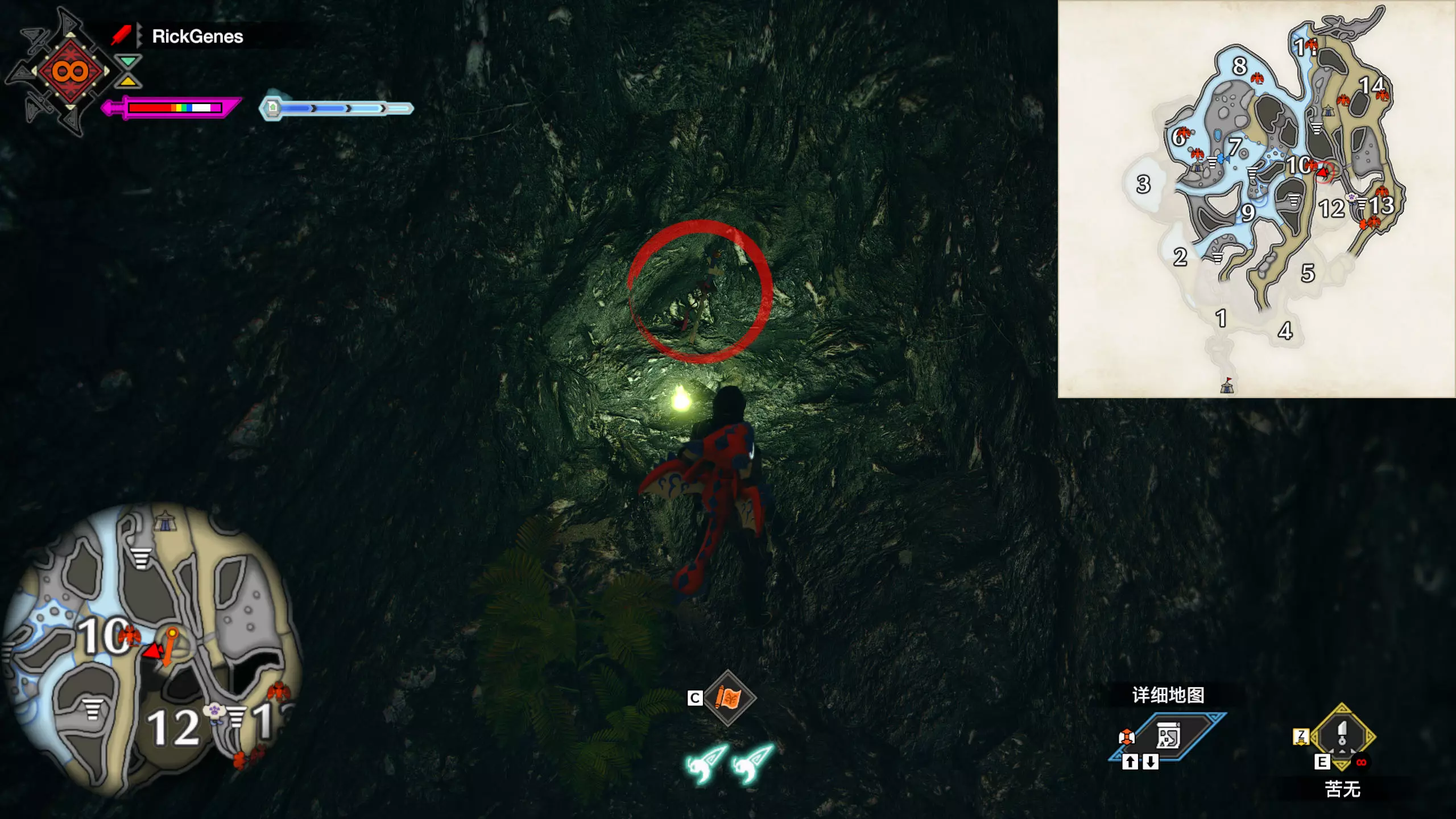 城塞高地3区右下方的大翔虫设置点需要单独说明。 全游戏唯一刁钻地点,我和朋友找了十多分钟才找到。 3区标记处有一口井,沿着井口的藤蔓慢慢往下走。 中途会看见藤蔓左方有一个洞口,进去,之后一直沿着道路走到底。