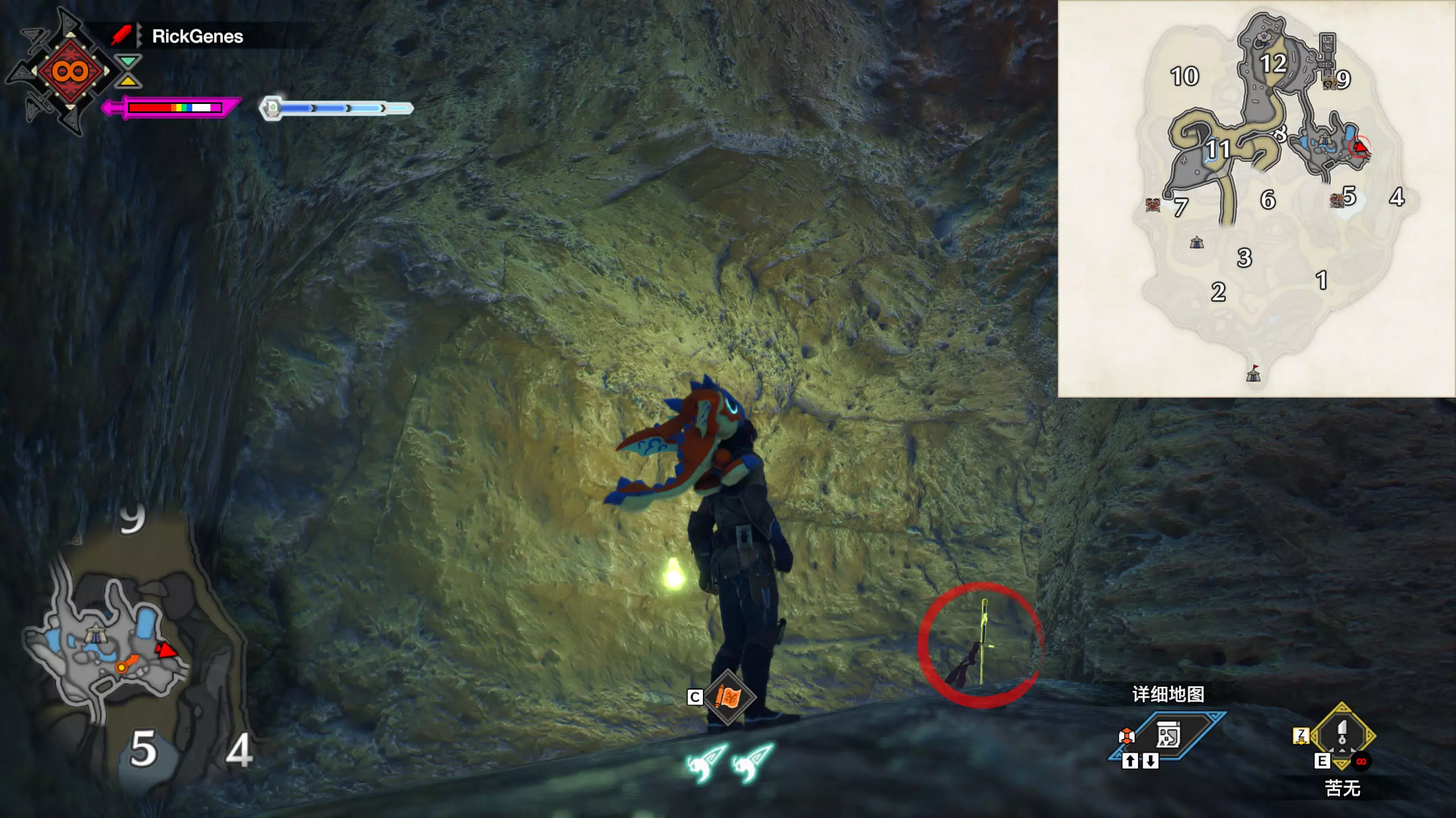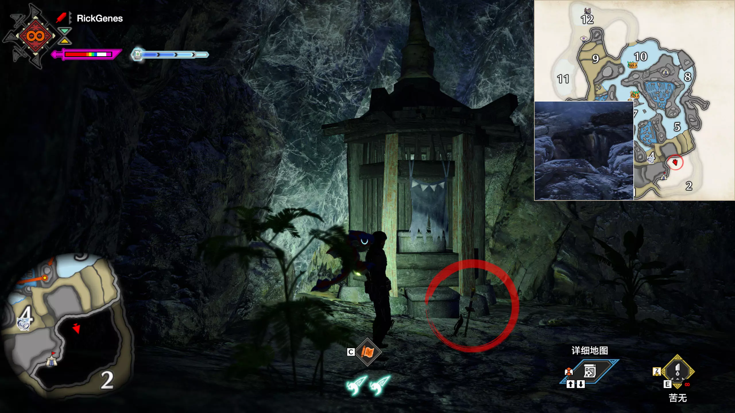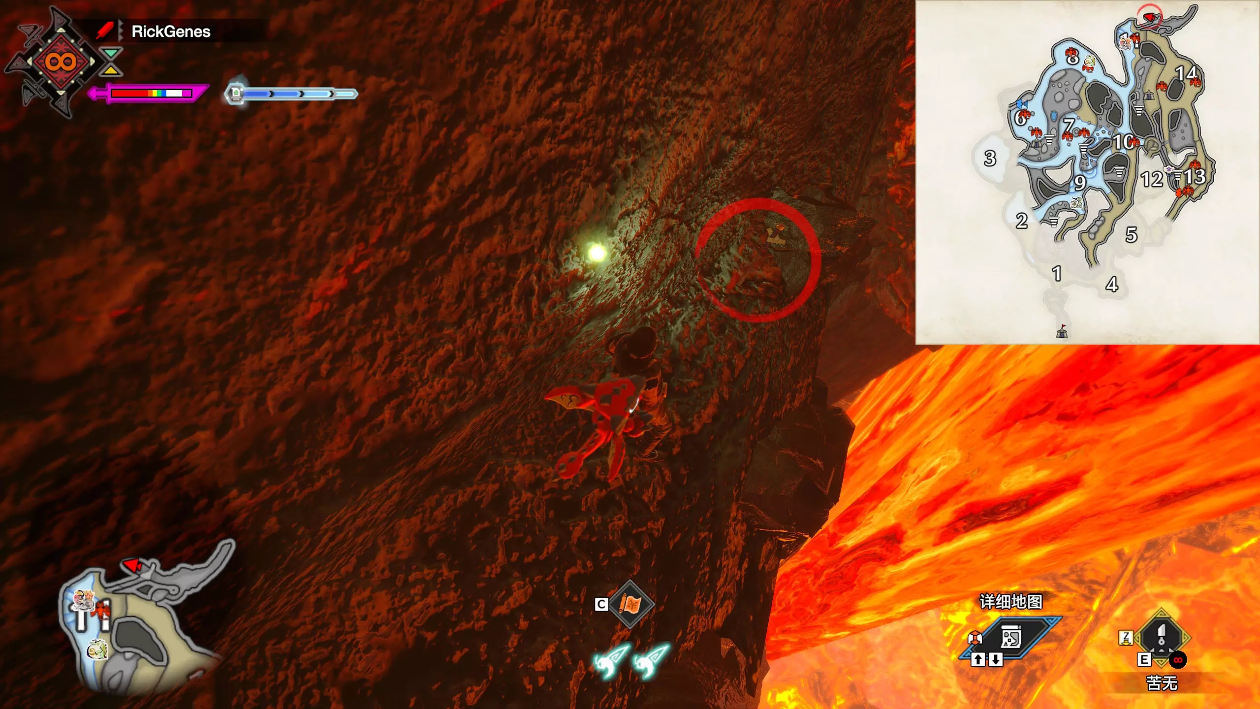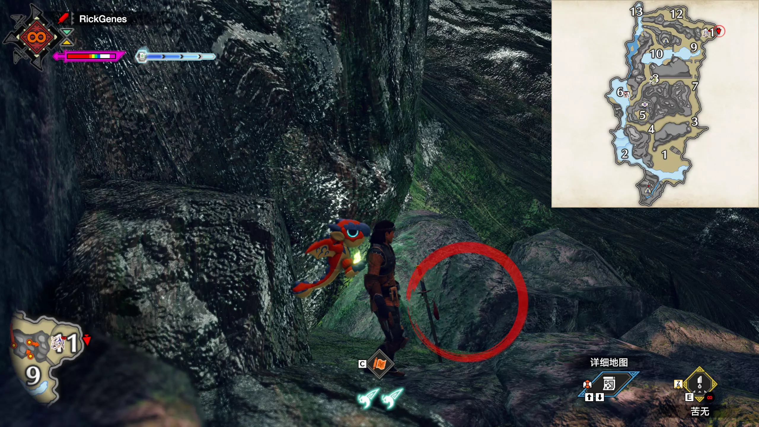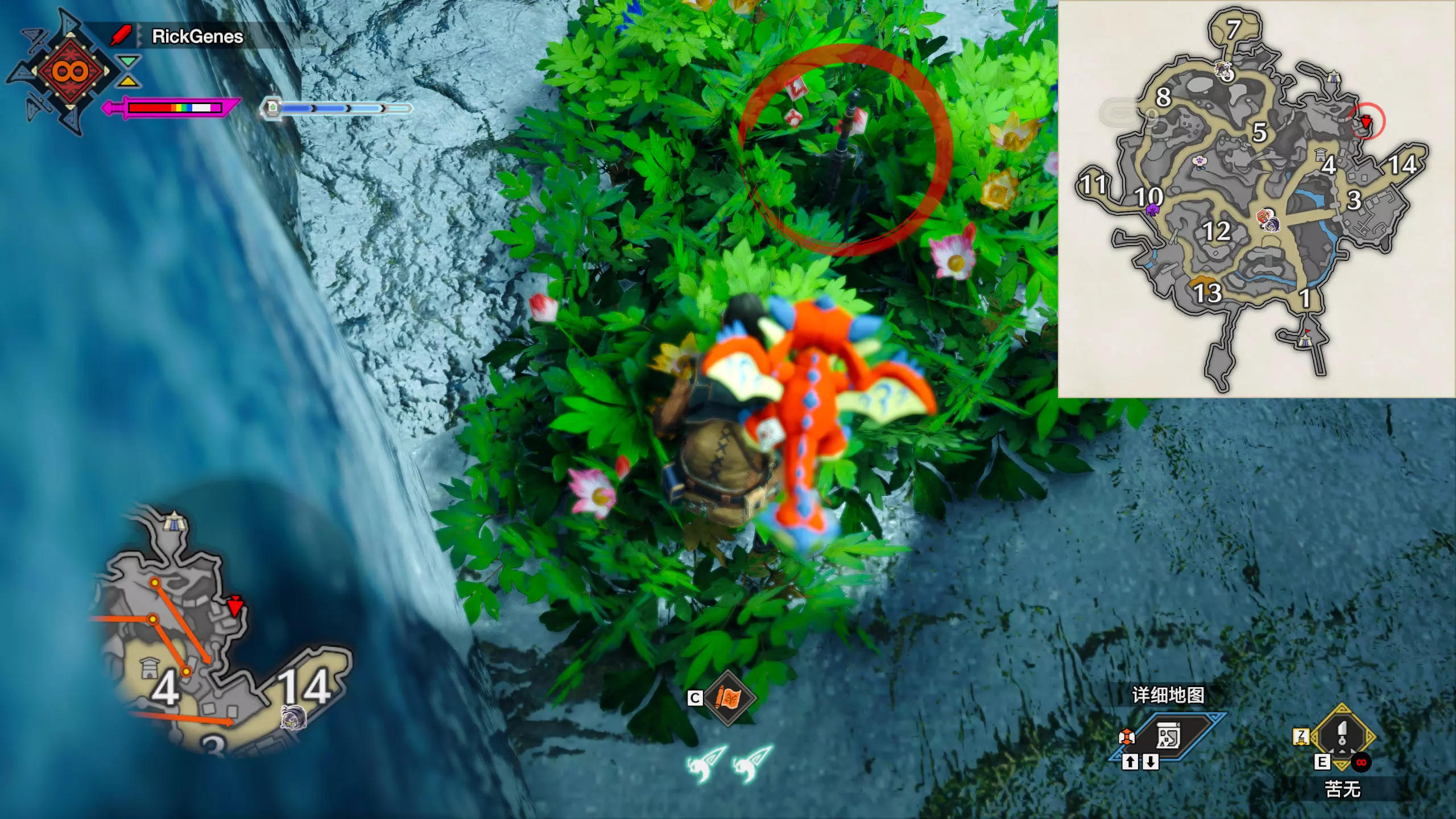 城塞高地3区右下方的大翔虫设置点需要单独说明。 全游戏唯一刁钻地点,我和朋友找了十多分钟才找到。 3区标记处有一口井,沿着井口的藤蔓慢慢往下走。 中途会看见藤蔓左方有一个洞口,进去,之后一直沿着道路走到底。