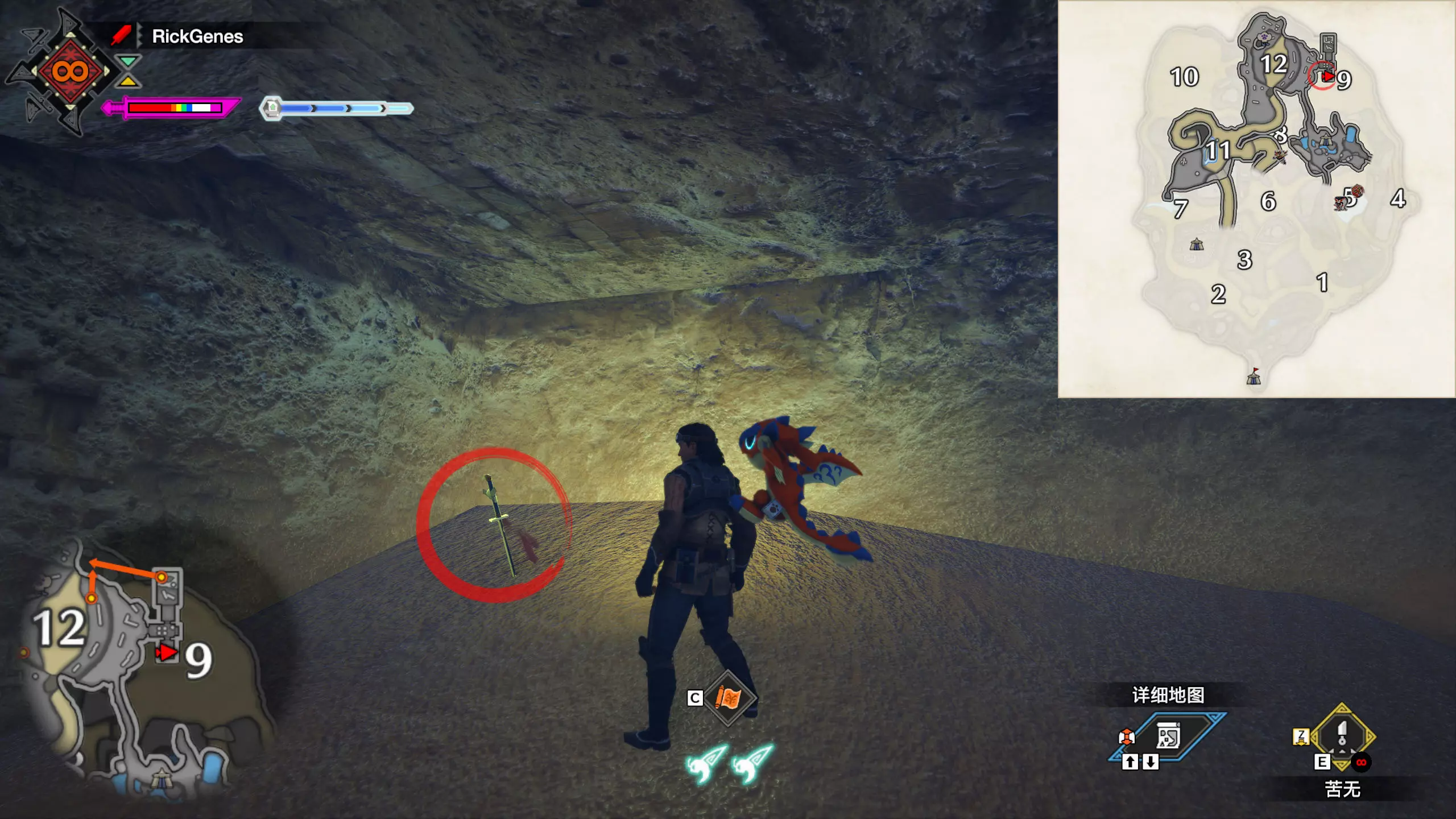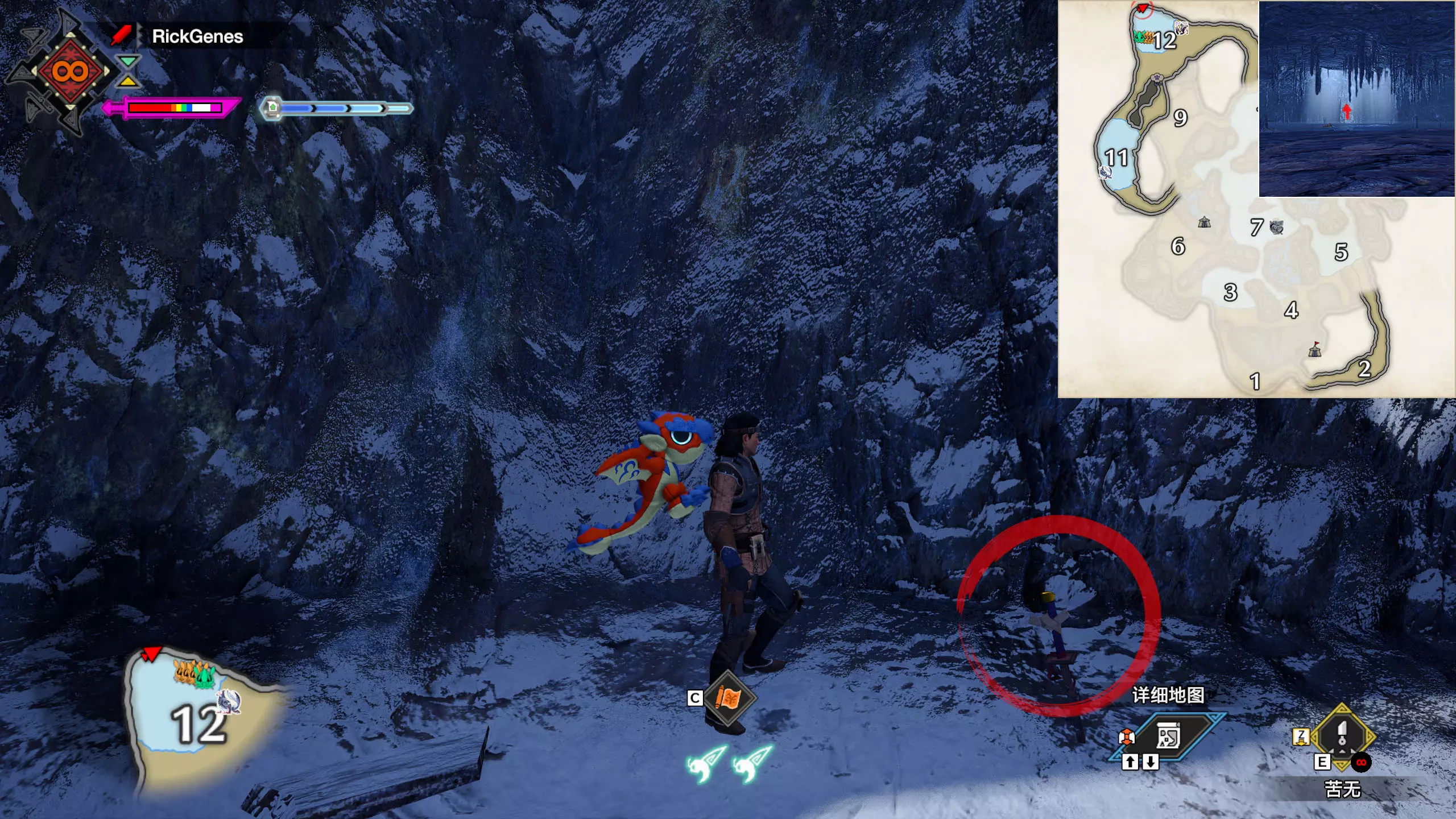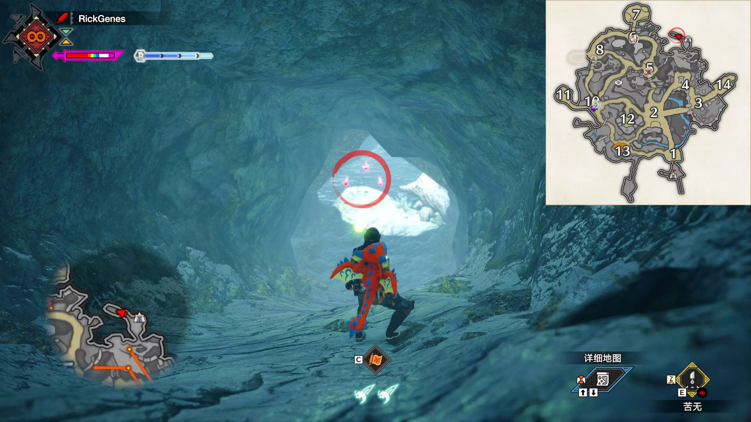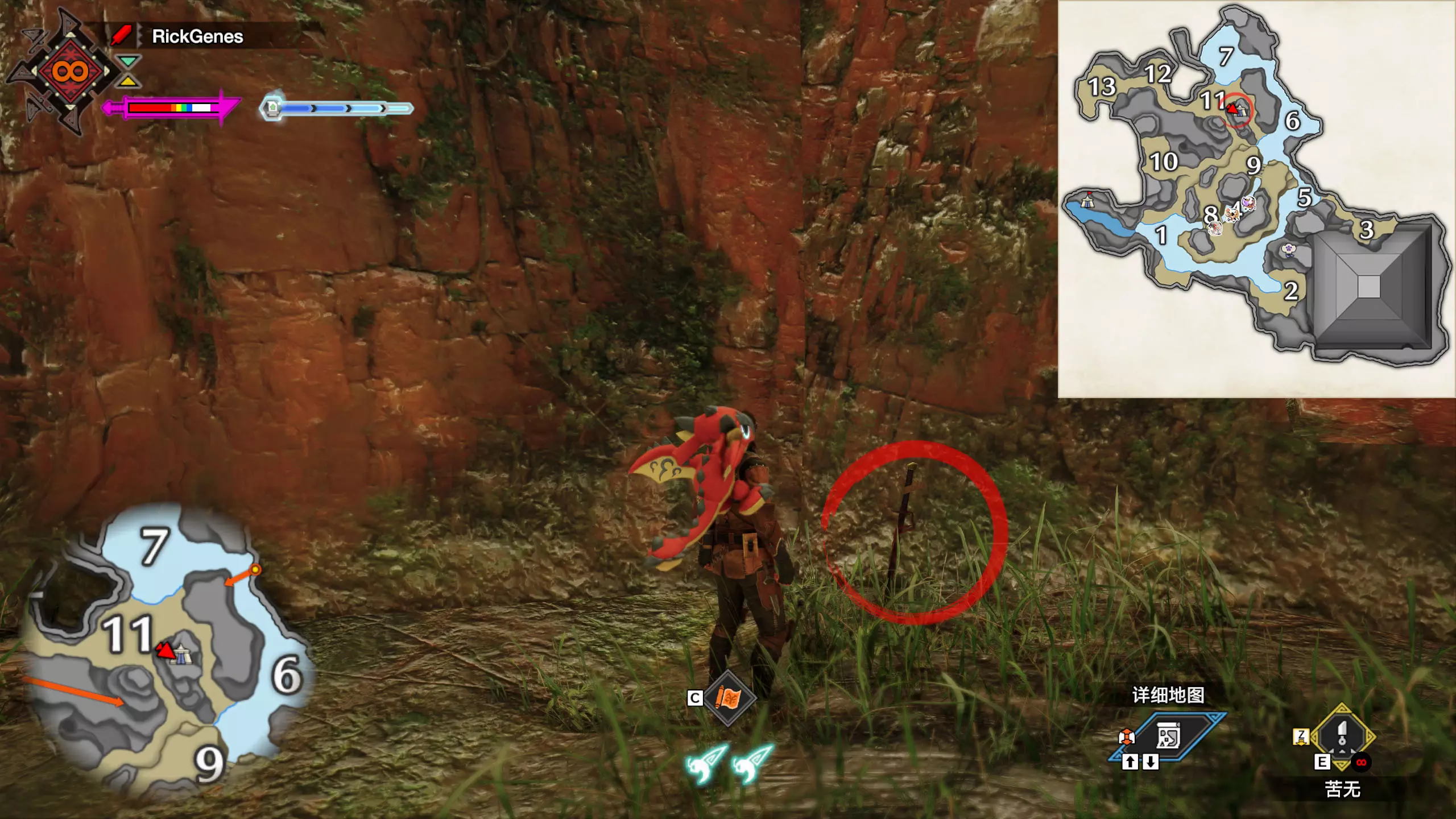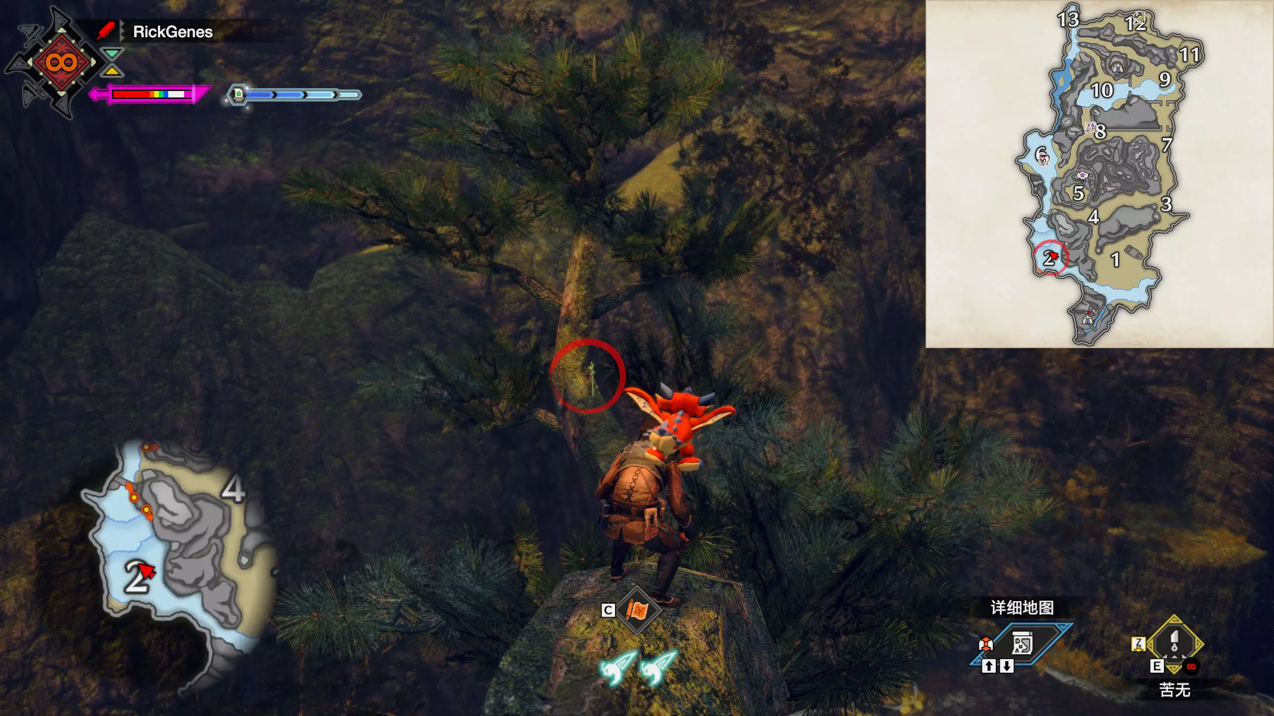 城塞高地3区右下方的大翔虫设置点需要单独说明。 全游戏唯一刁钻地点,我和朋友找了十多分钟才找到。 3区标记处有一口井,沿着井口的藤蔓慢慢往下走。 中途会看见藤蔓左方有一个洞口,进去,之后一直沿着道路走到底。