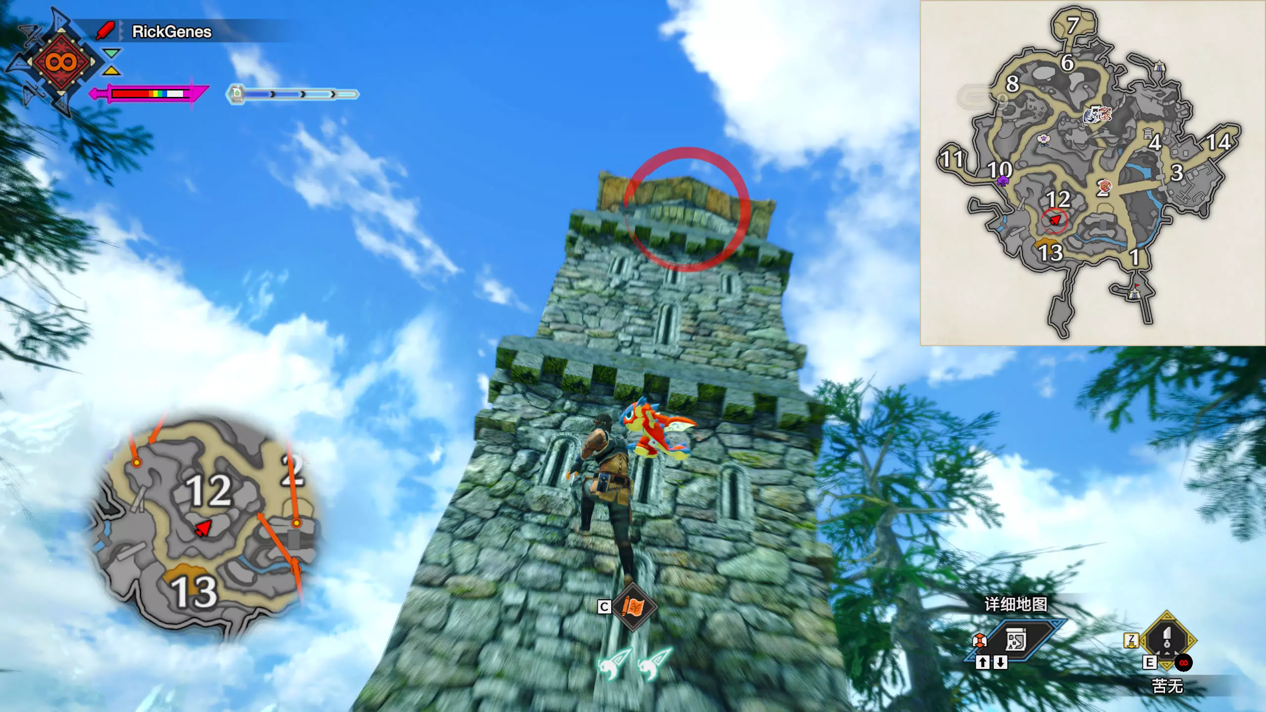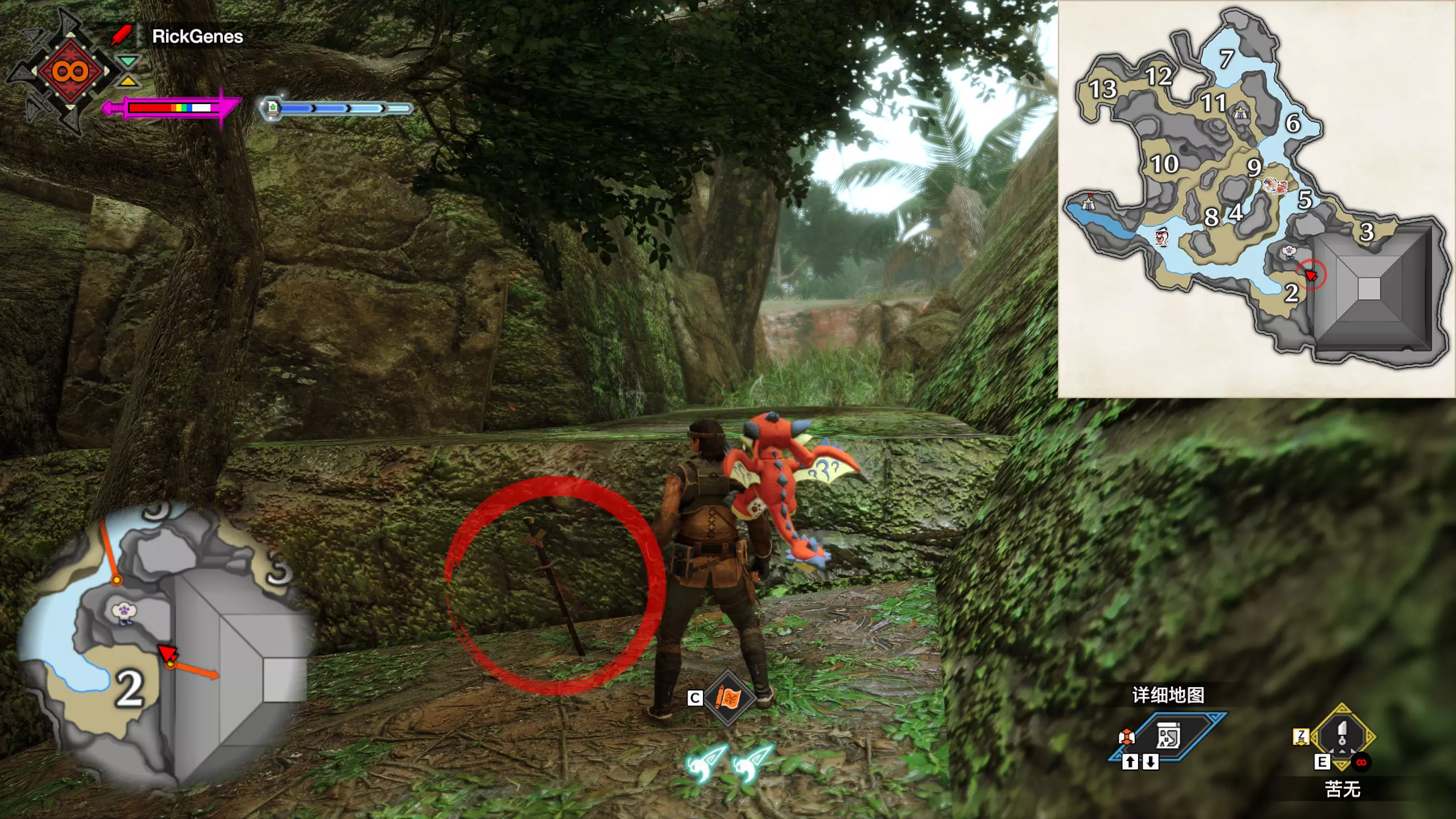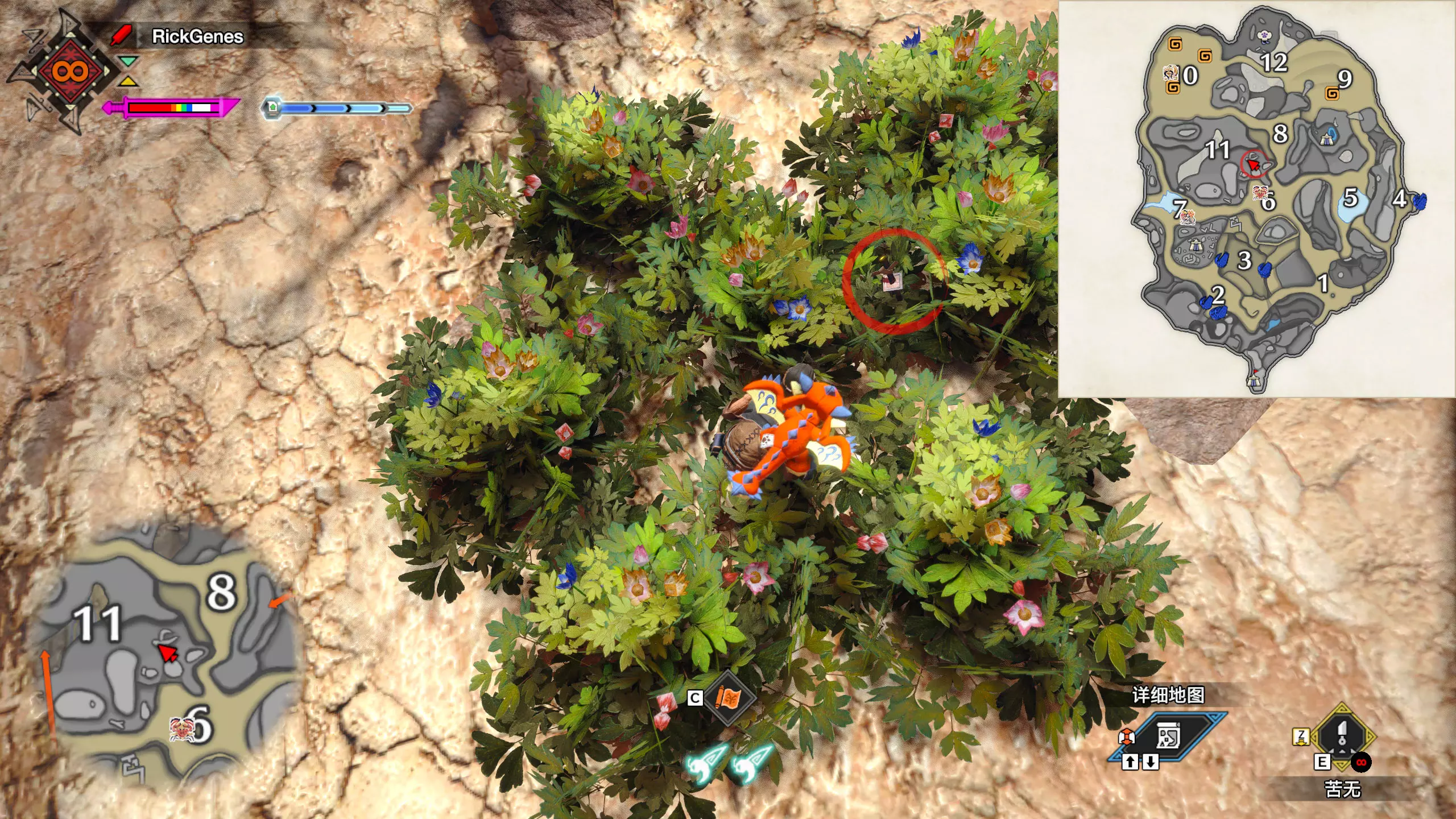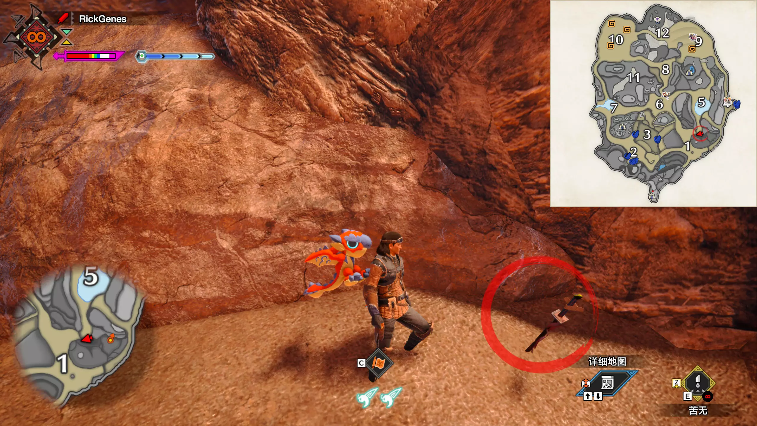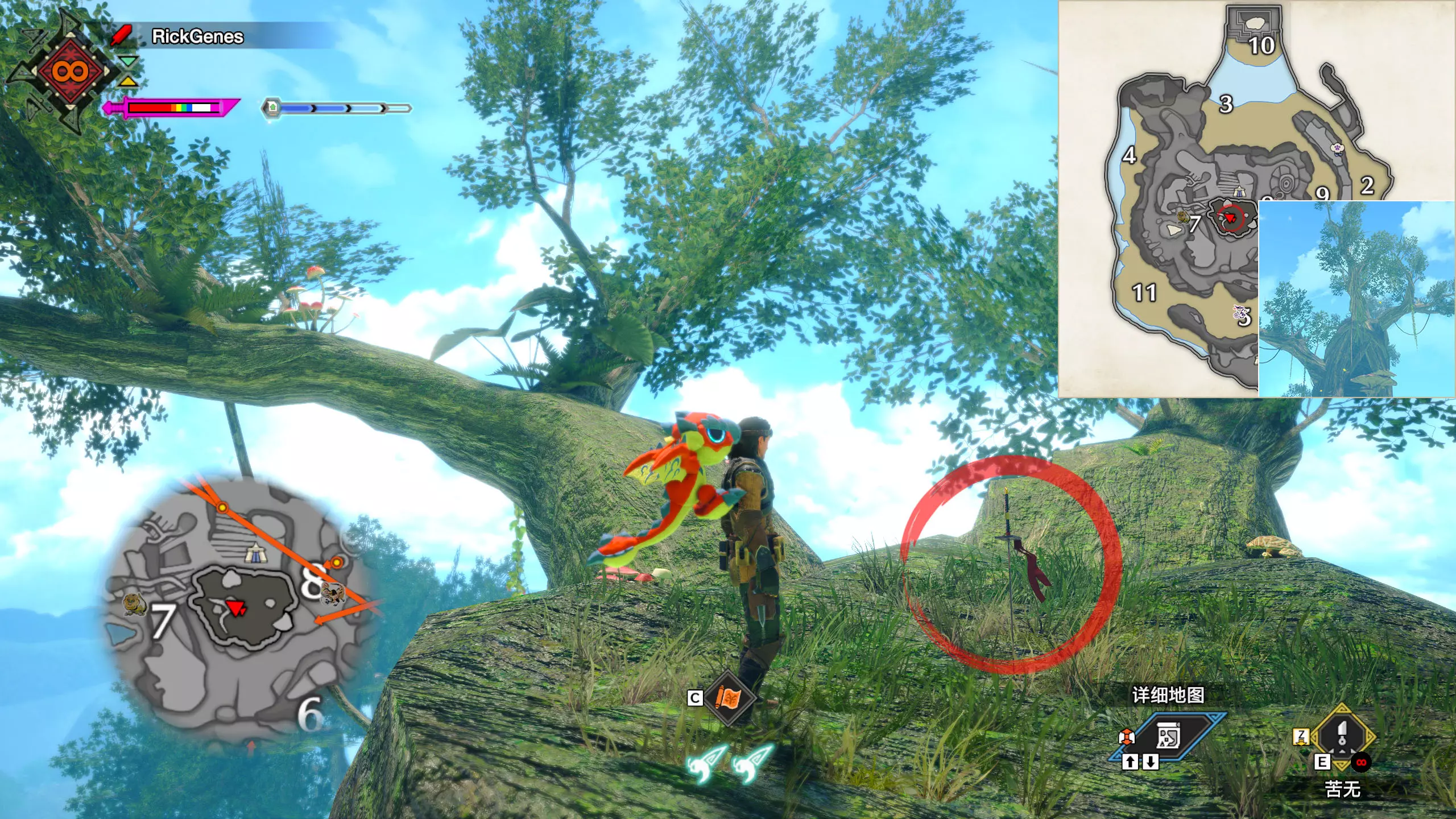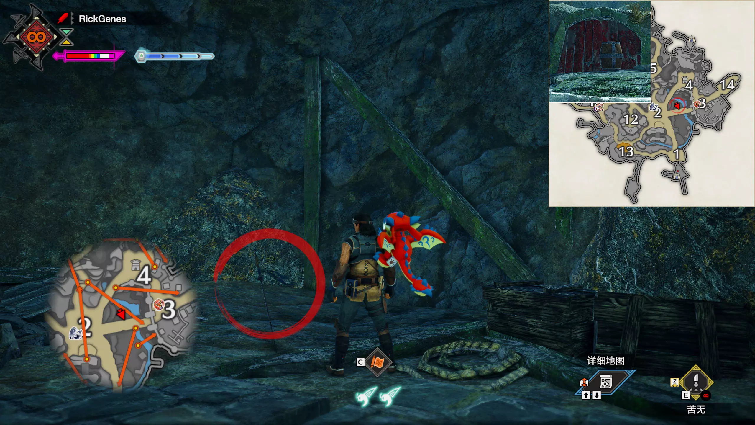 城塞高地3区右下方的大翔虫设置点需要单独说明。 全游戏唯一刁钻地点,我和朋友找了十多分钟才找到。 3区标记处有一口井,沿着井口的藤蔓慢慢往下走。 中途会看见藤蔓左方有一个洞口,进去,之后一直沿着道路走到底。