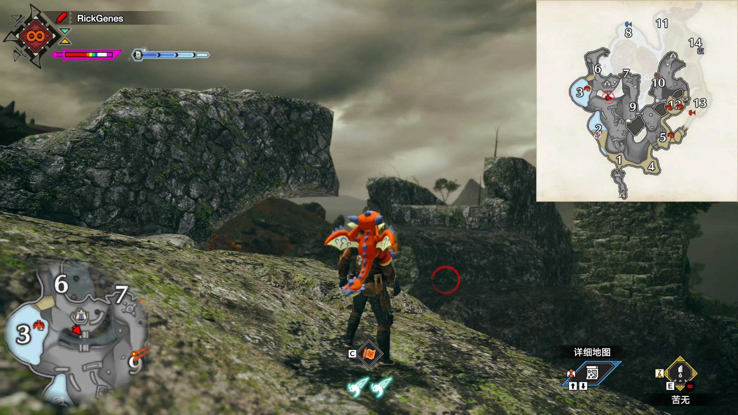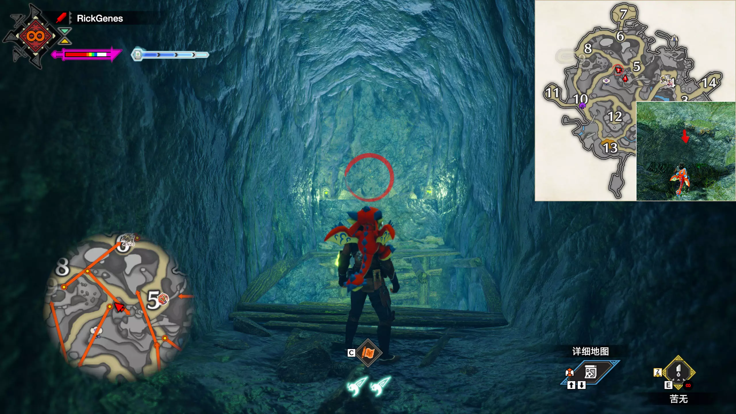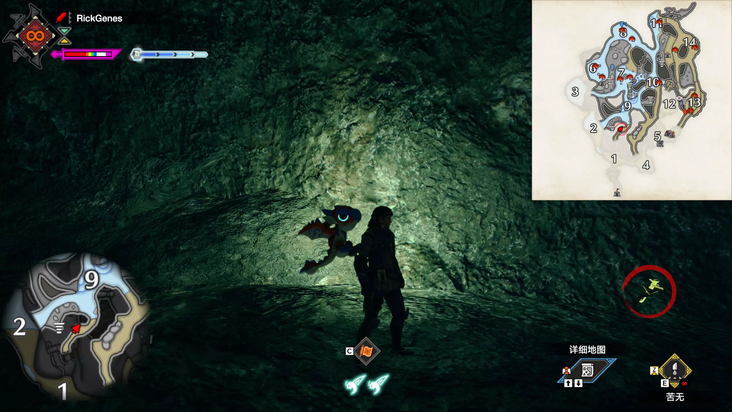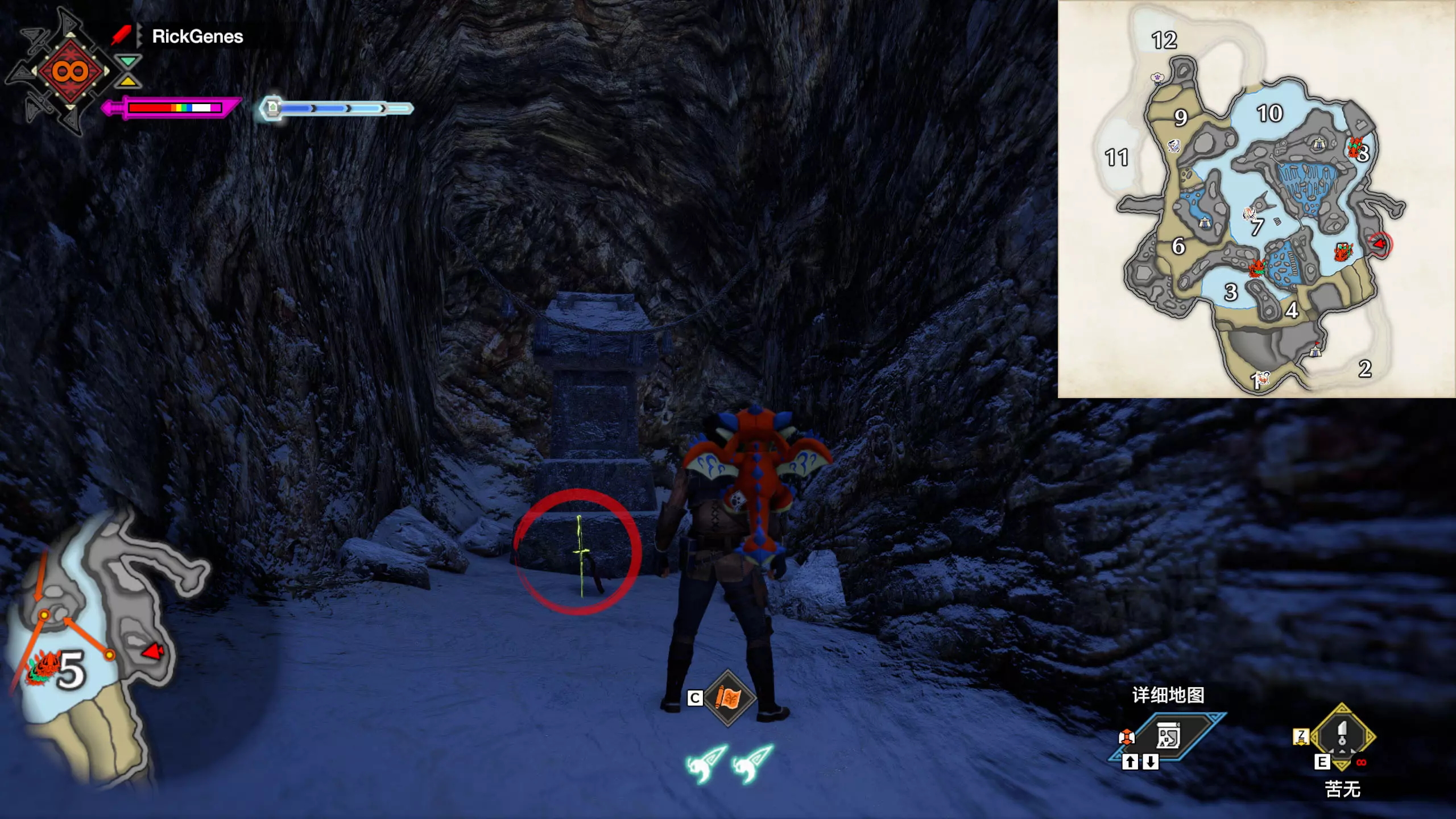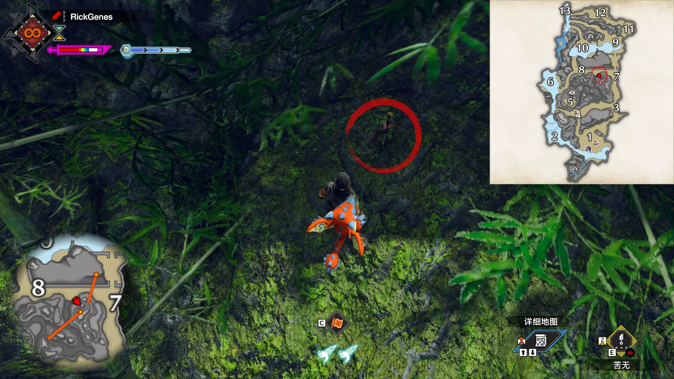 城塞高地3区右下方的大翔虫设置点需要单独说明。 全游戏唯一刁钻地点,我和朋友找了十多分钟才找到。 3区标记处有一口井,沿着井口的藤蔓慢慢往下走。 中途会看见藤蔓左方有一个洞口,进去,之后一直沿着道路走到底。