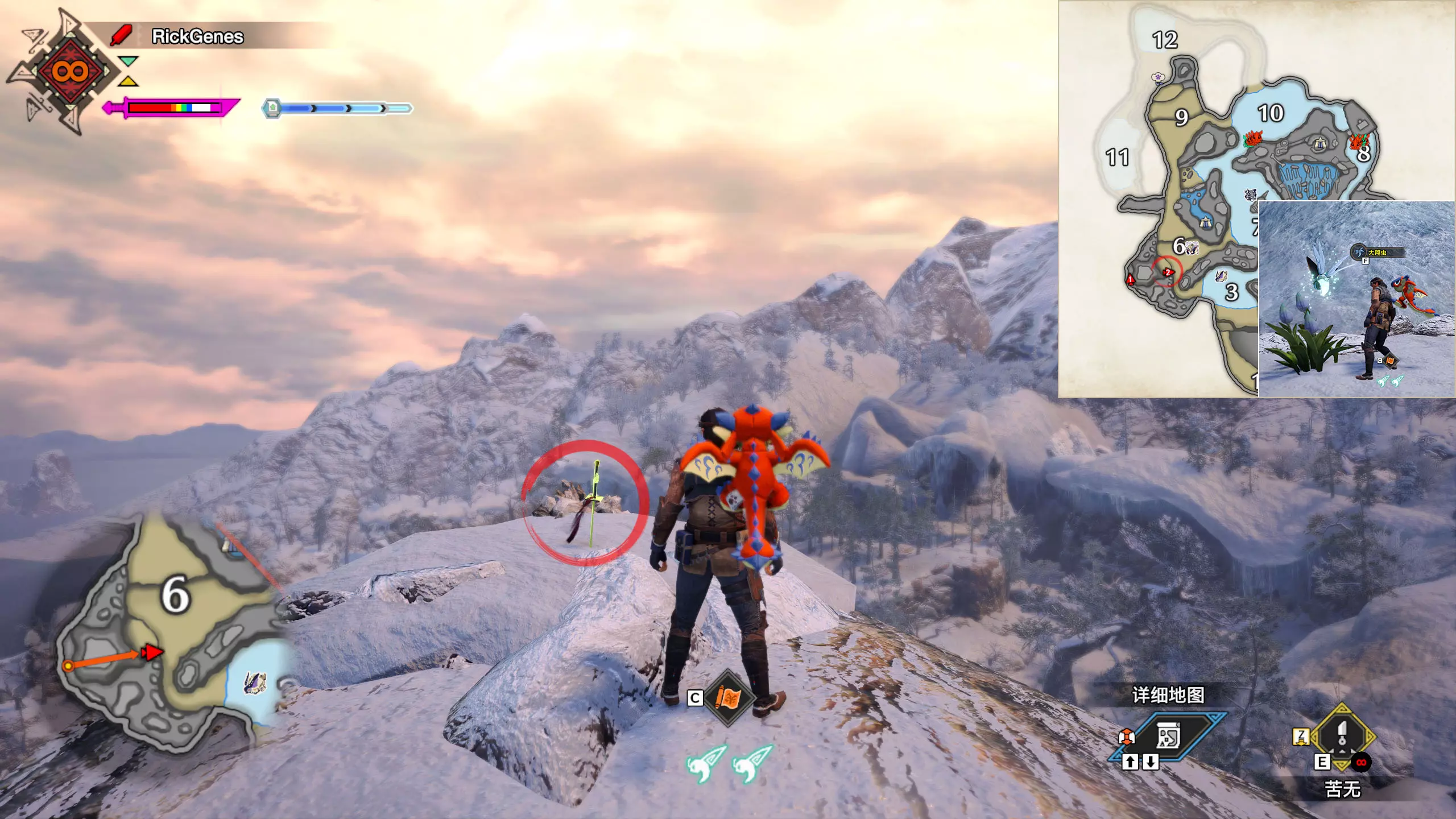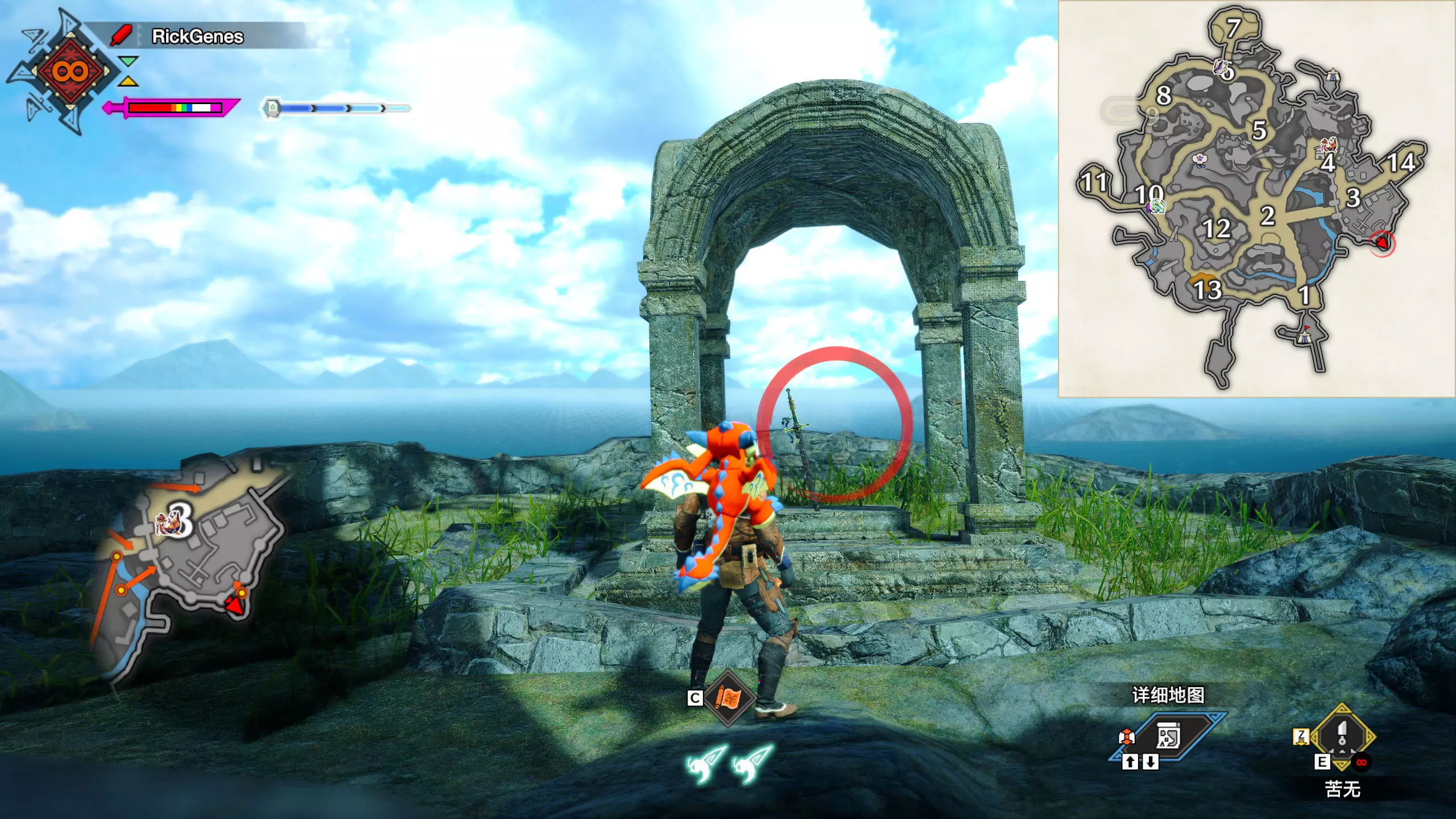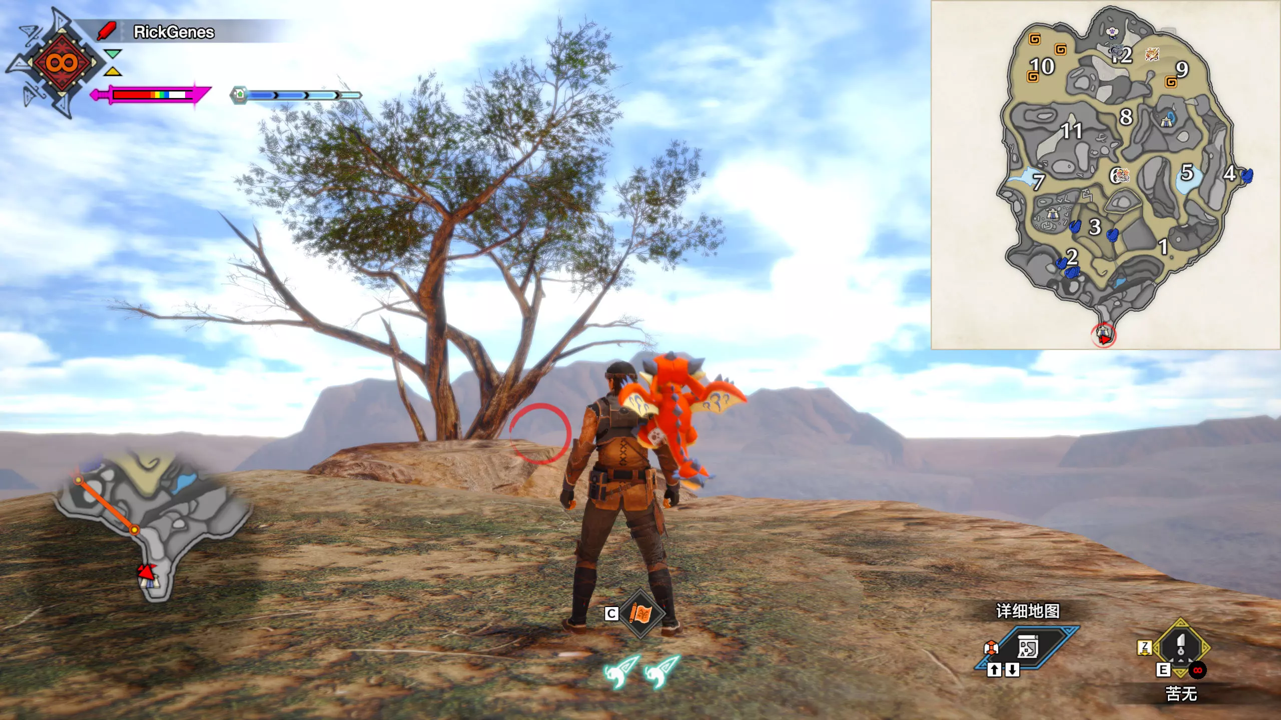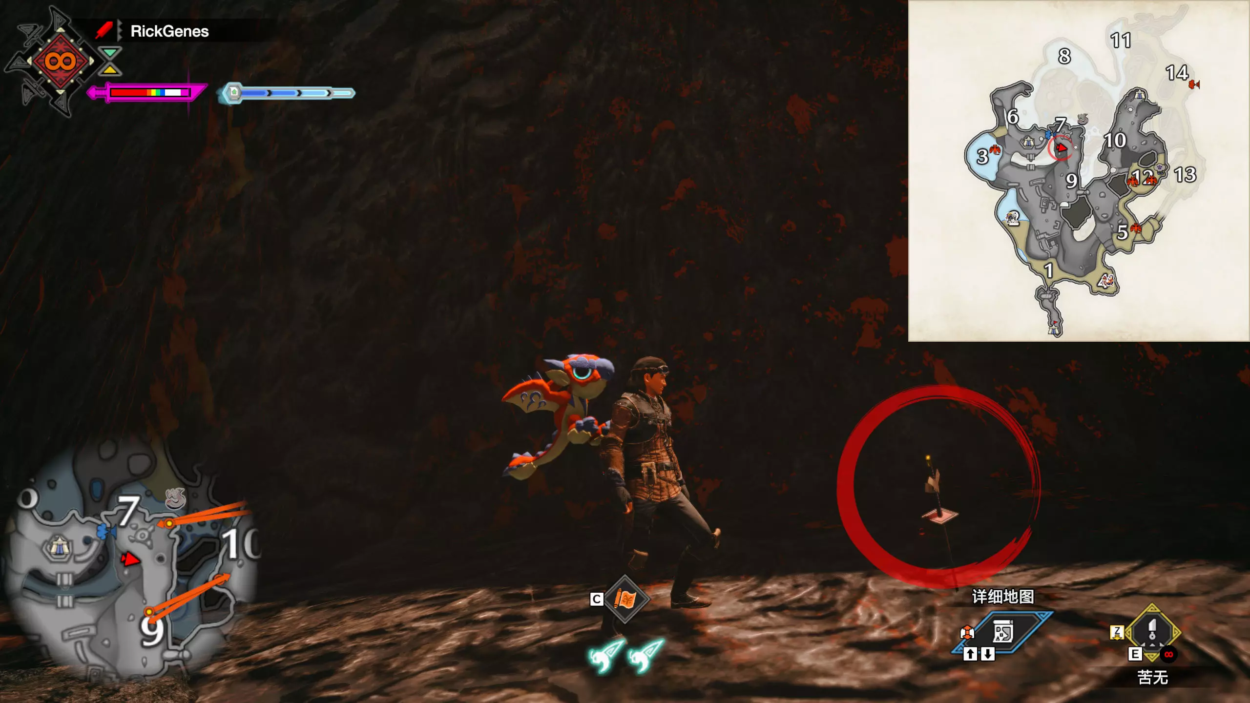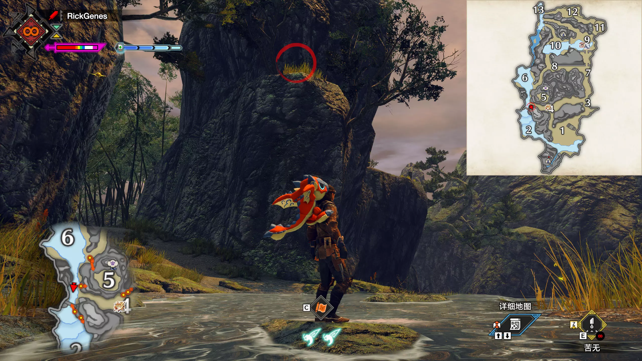 城塞高地3区右下方的大翔虫设置点需要单独说明。 全游戏唯一刁钻地点,我和朋友找了十多分钟才找到。 3区标记处有一口井,沿着井口的藤蔓慢慢往下走。 中途会看见藤蔓左方有一个洞口,进去,之后一直沿着道路走到底。