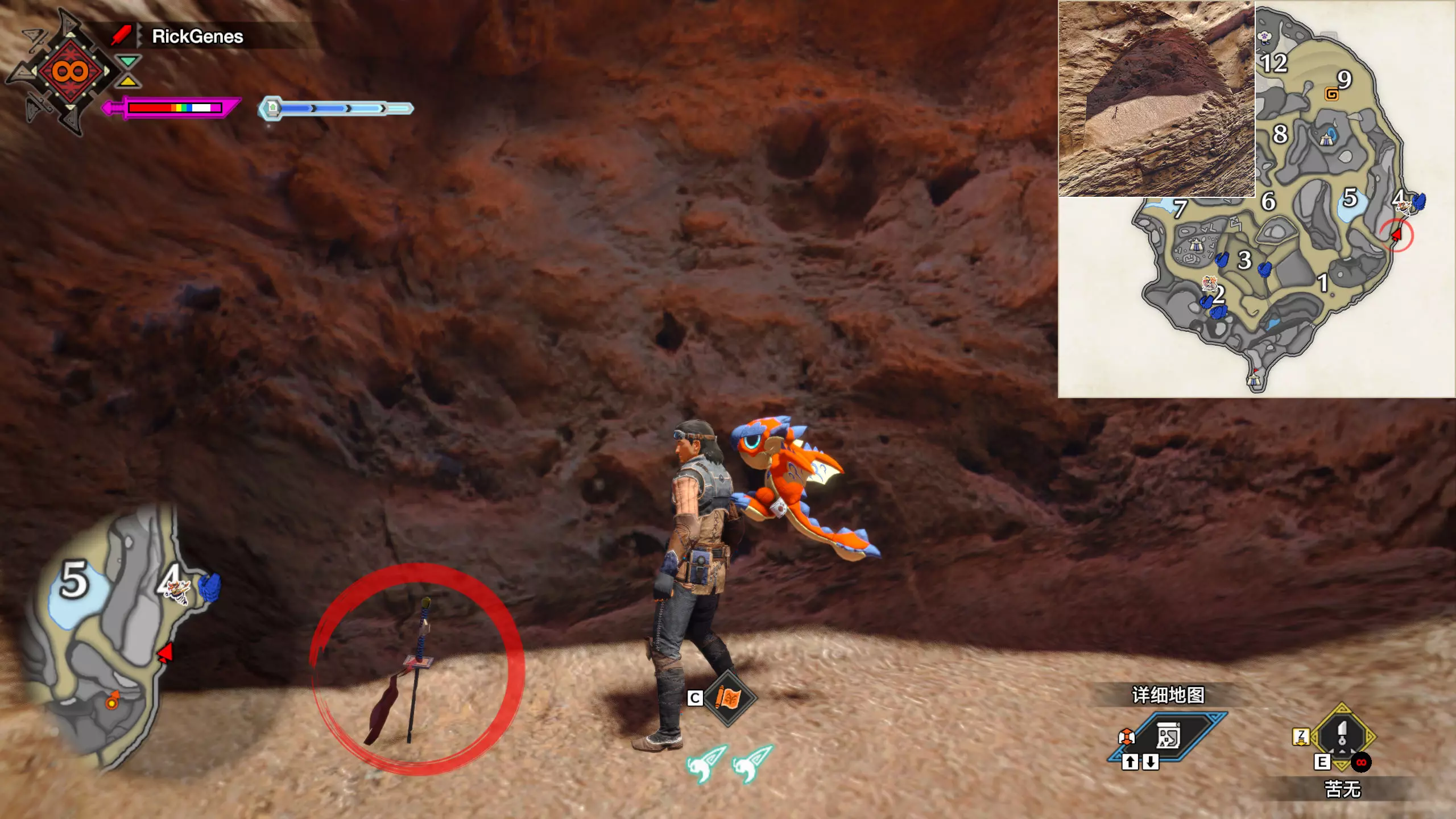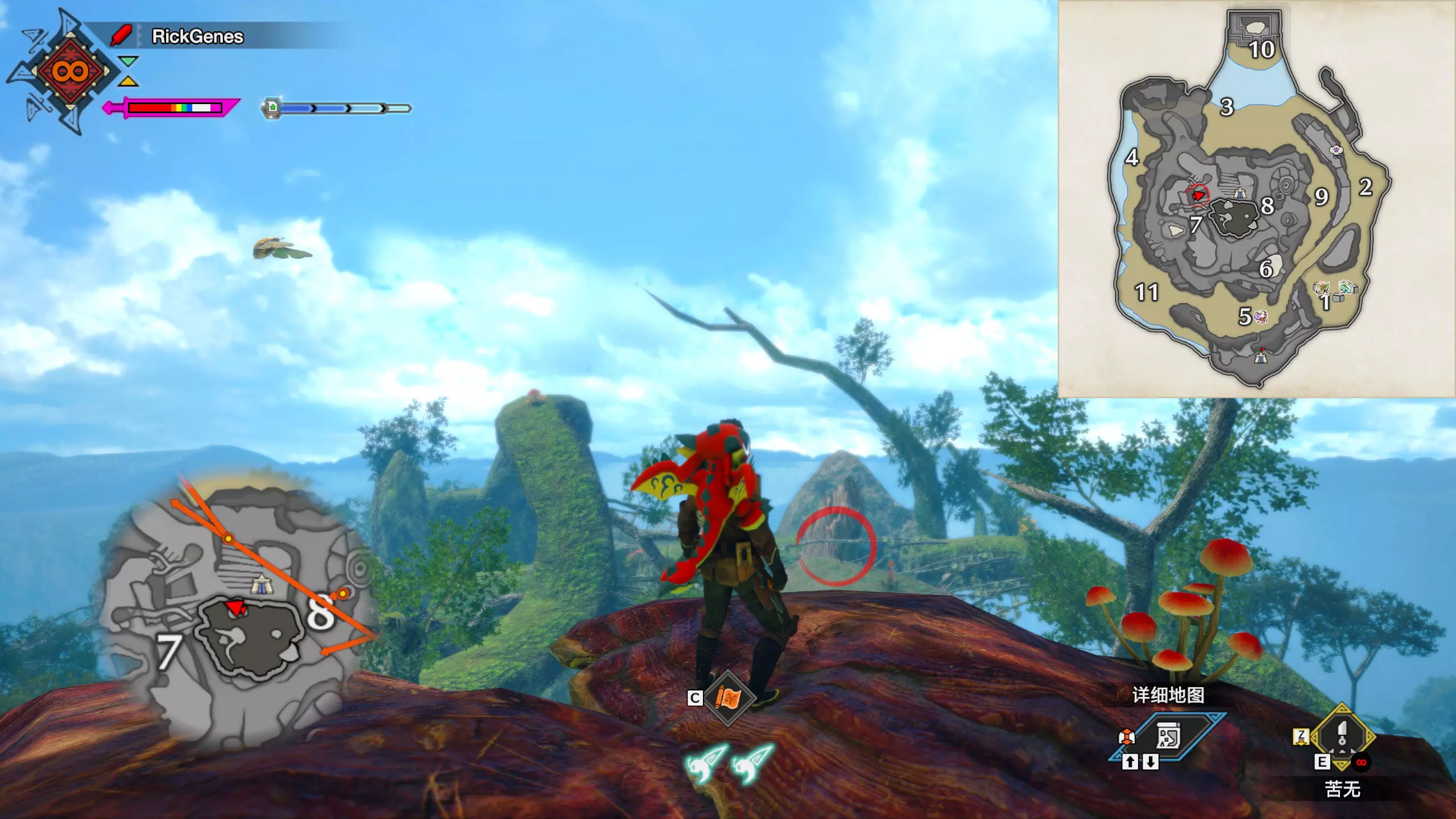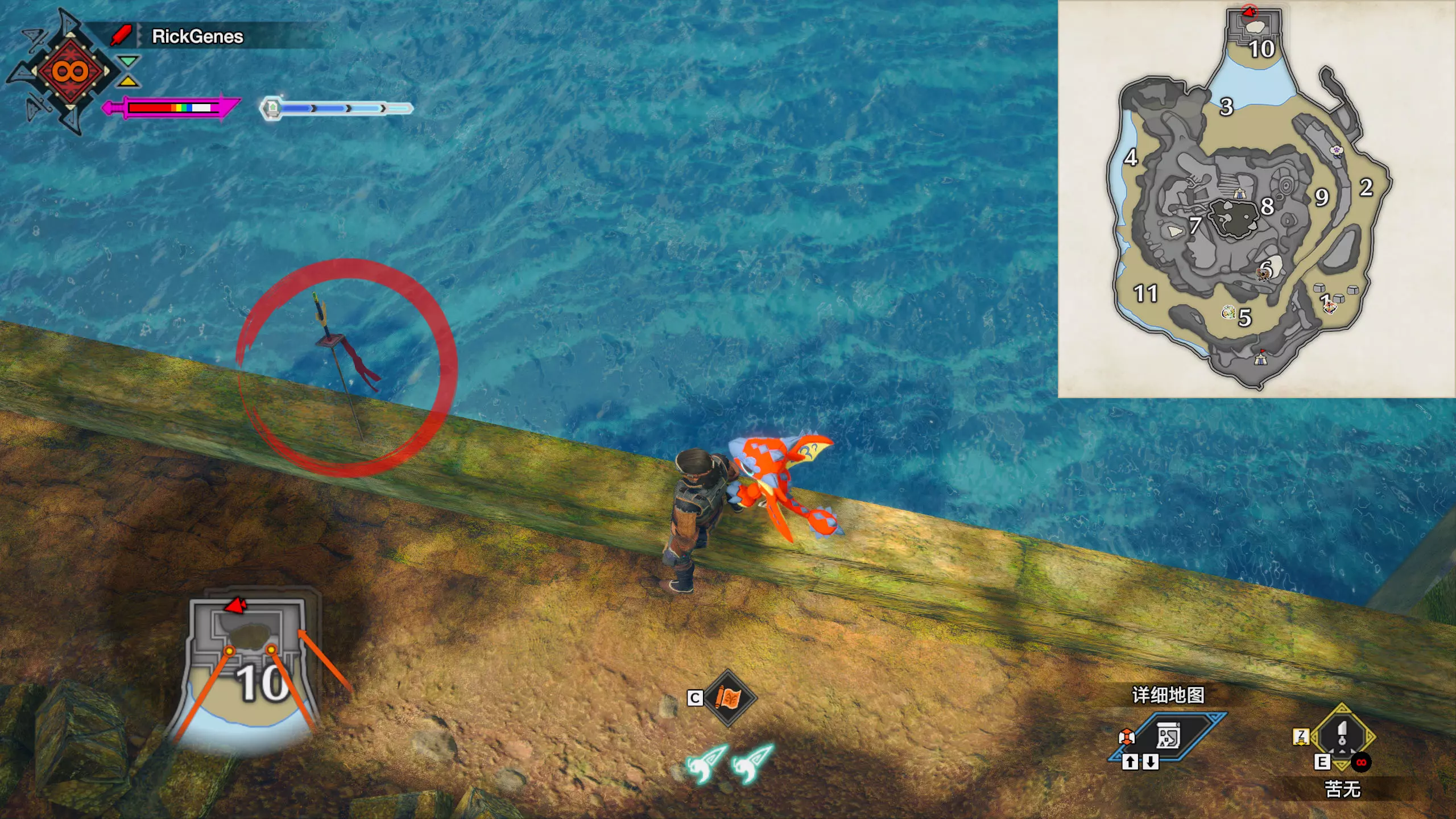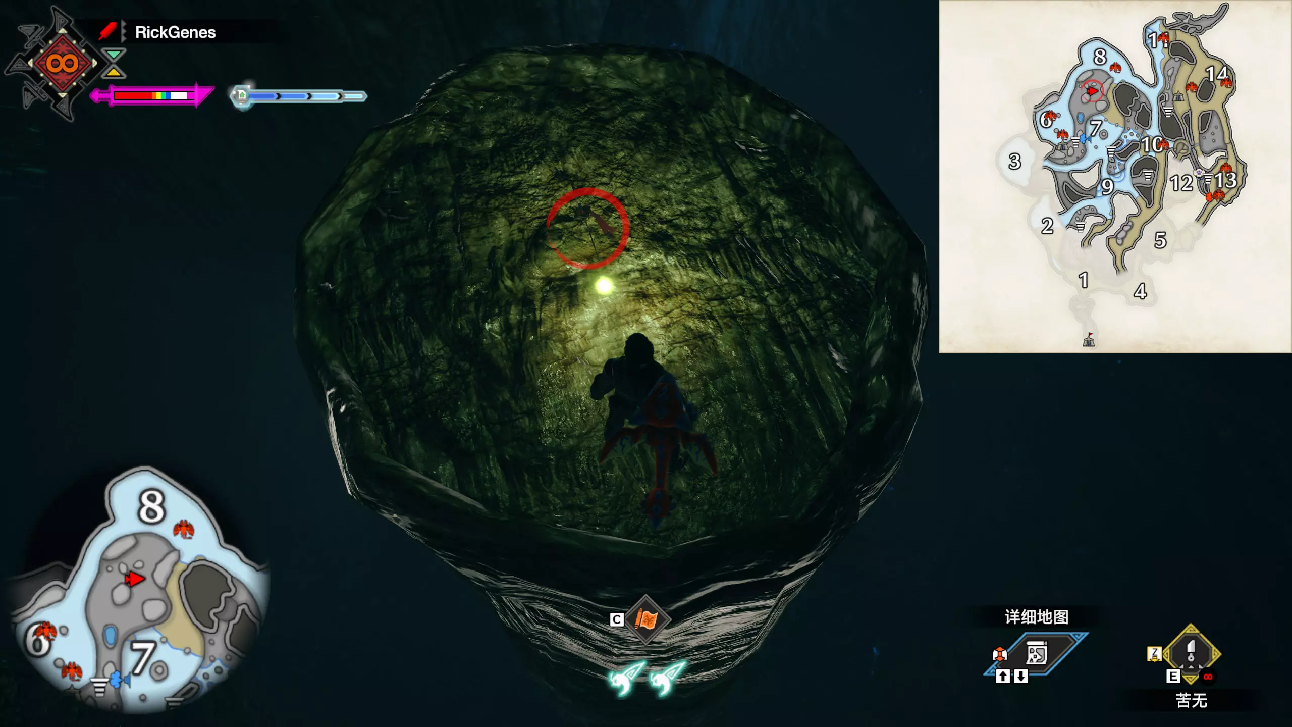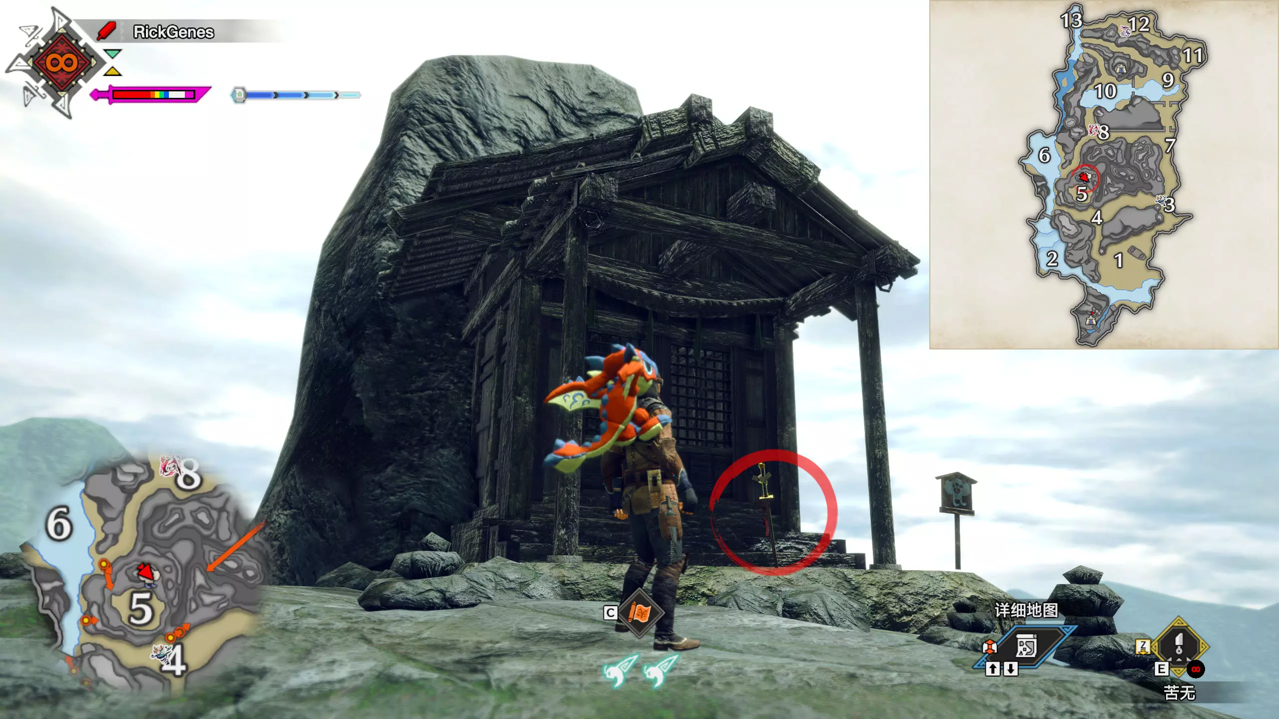城塞高地3区右下方的大翔虫设置点需要单独说明。 全游戏唯一刁钻地点,我和朋友找了十多分钟才找到。 3区标记处有一口井,沿着井口的藤蔓慢慢往下走。 中途会看见藤蔓左方有一个洞口,进去,之后一直沿着道路走到底。
