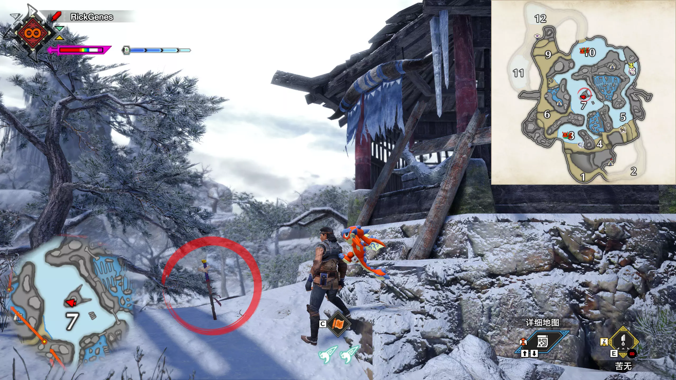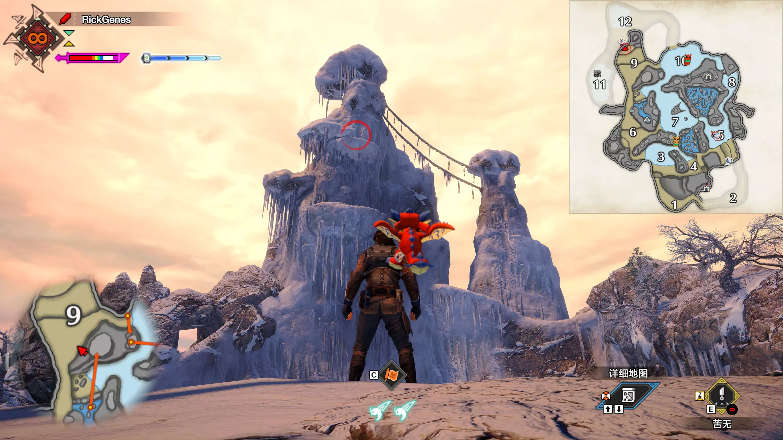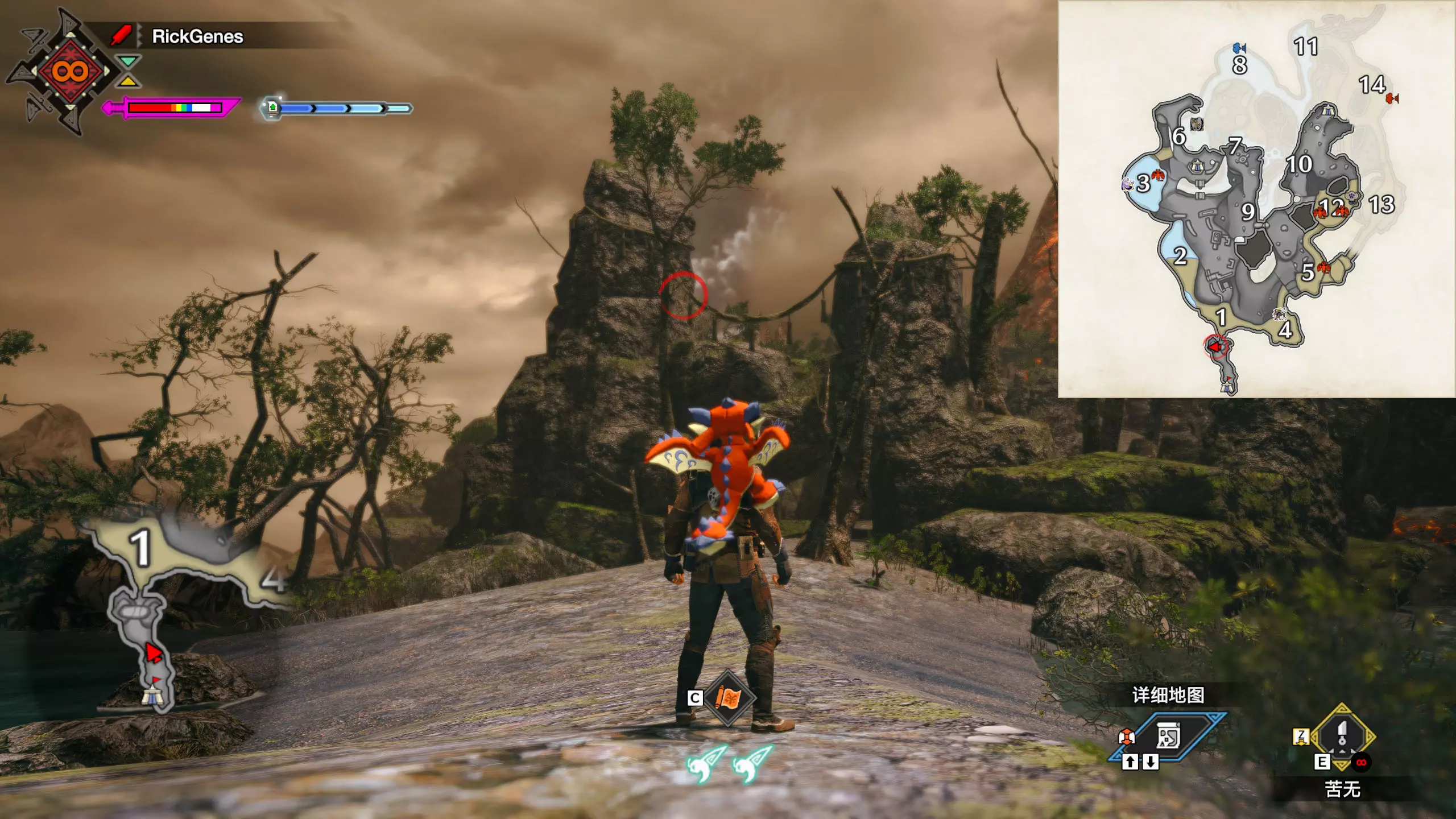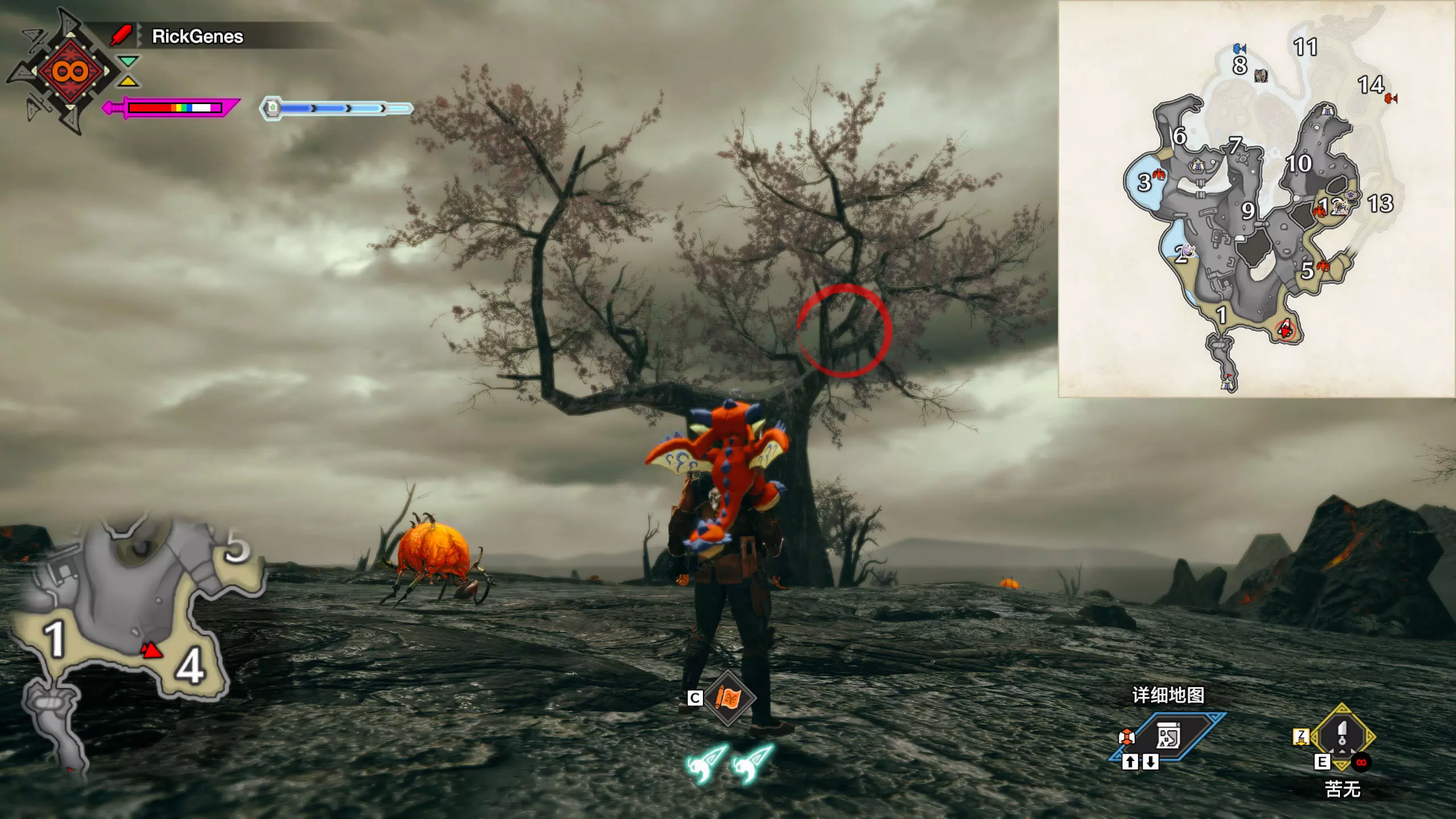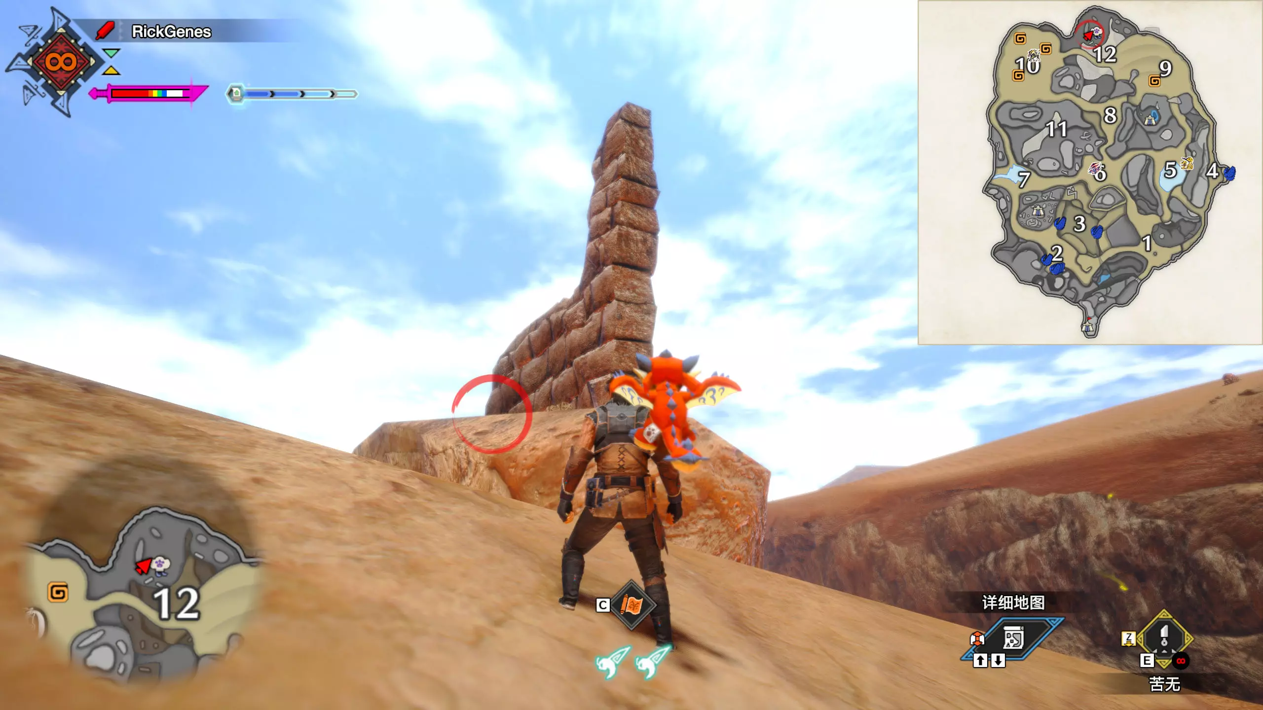 城塞高地3区右下方的大翔虫设置点需要单独说明。 全游戏唯一刁钻地点,我和朋友找了十多分钟才找到。 3区标记处有一口井,沿着井口的藤蔓慢慢往下走。 中途会看见藤蔓左方有一个洞口,进去,之后一直沿着道路走到底。