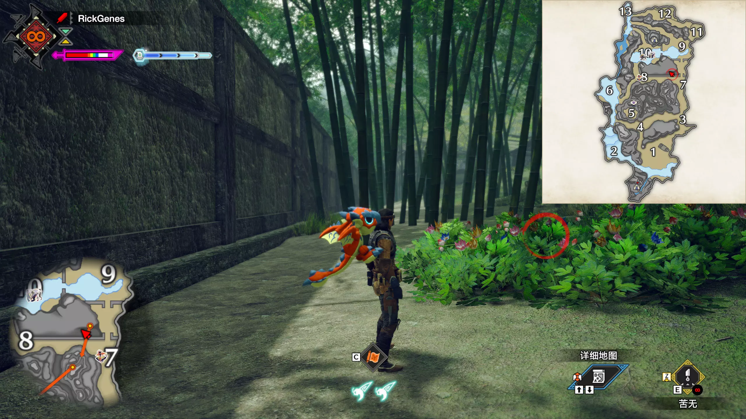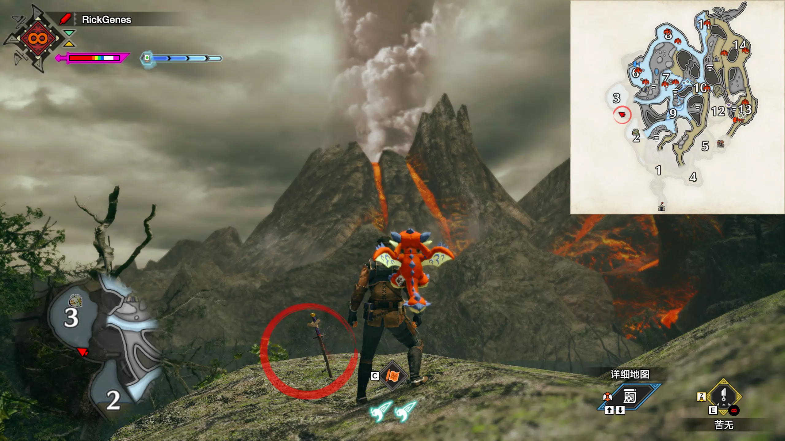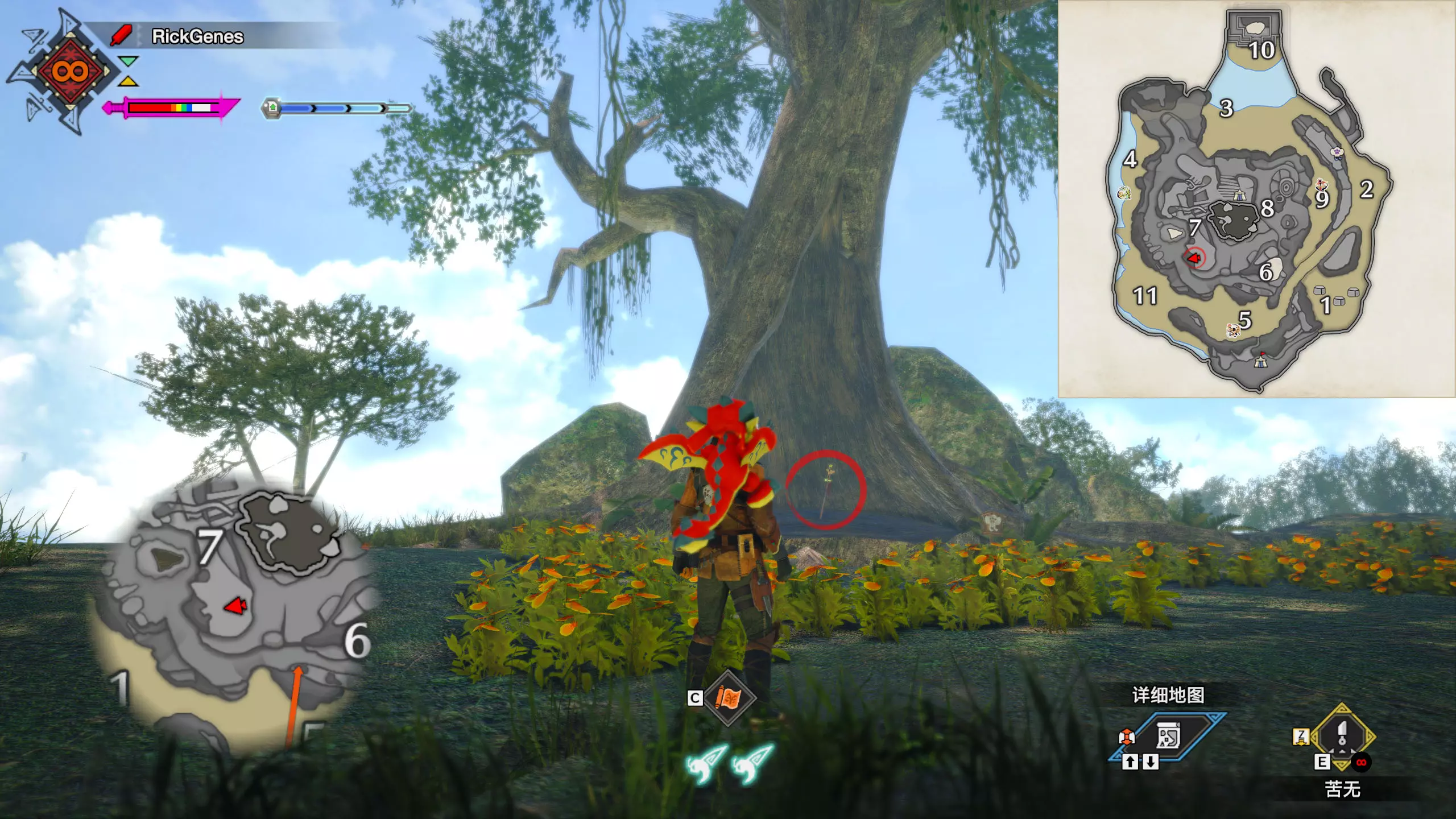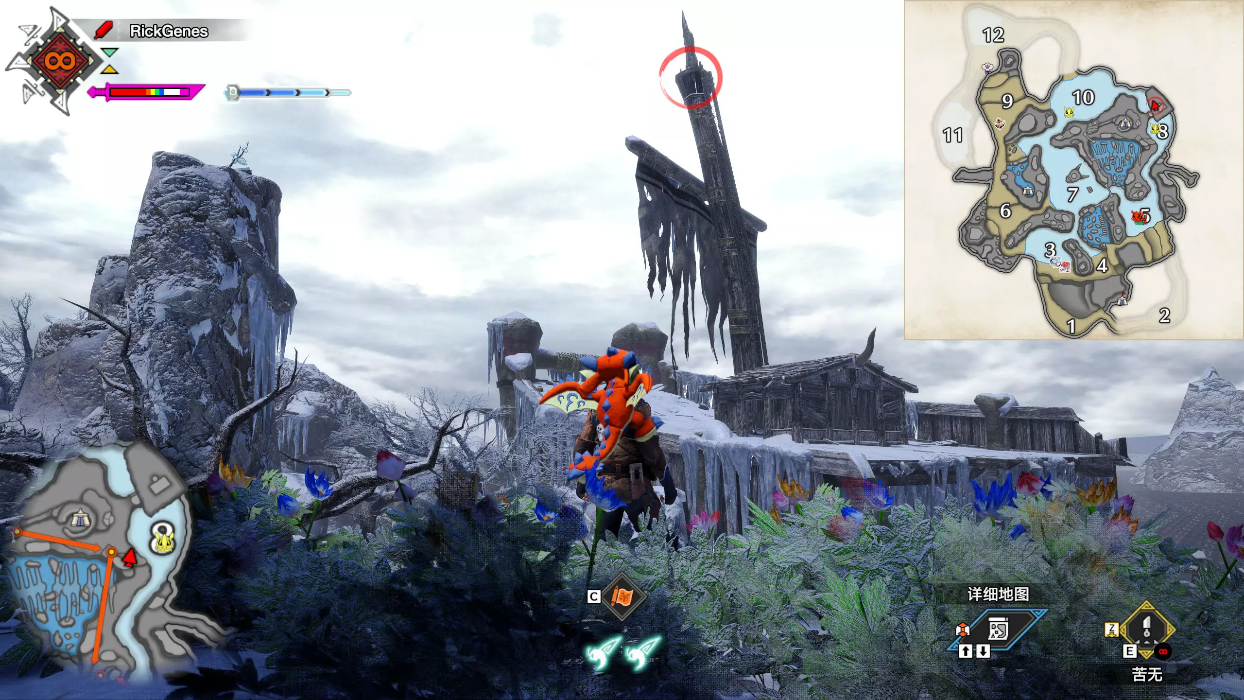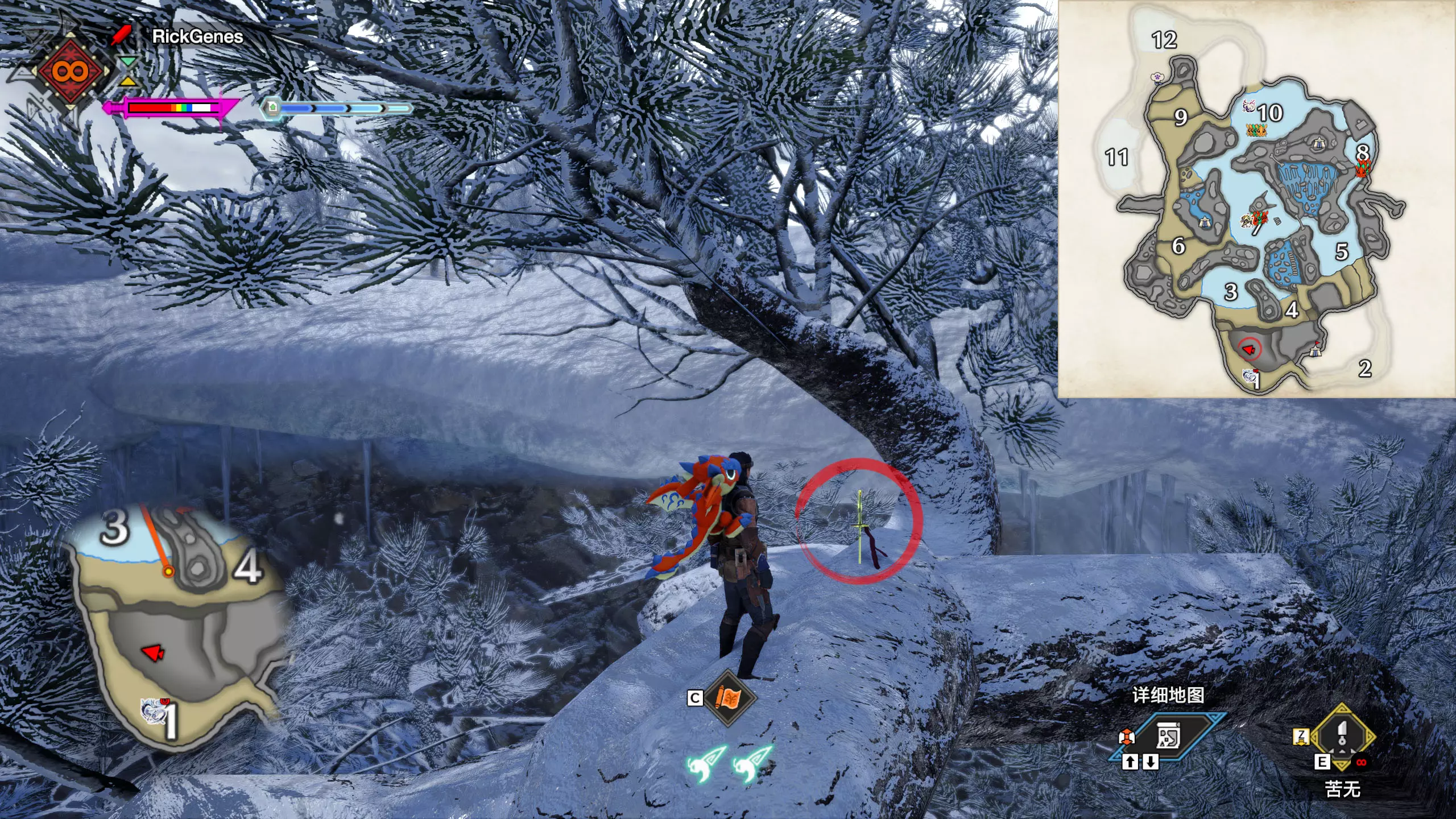 城塞高地3区右下方的大翔虫设置点需要单独说明。 全游戏唯一刁钻地点,我和朋友找了十多分钟才找到。 3区标记处有一口井,沿着井口的藤蔓慢慢往下走。 中途会看见藤蔓左方有一个洞口,进去,之后一直沿着道路走到底。