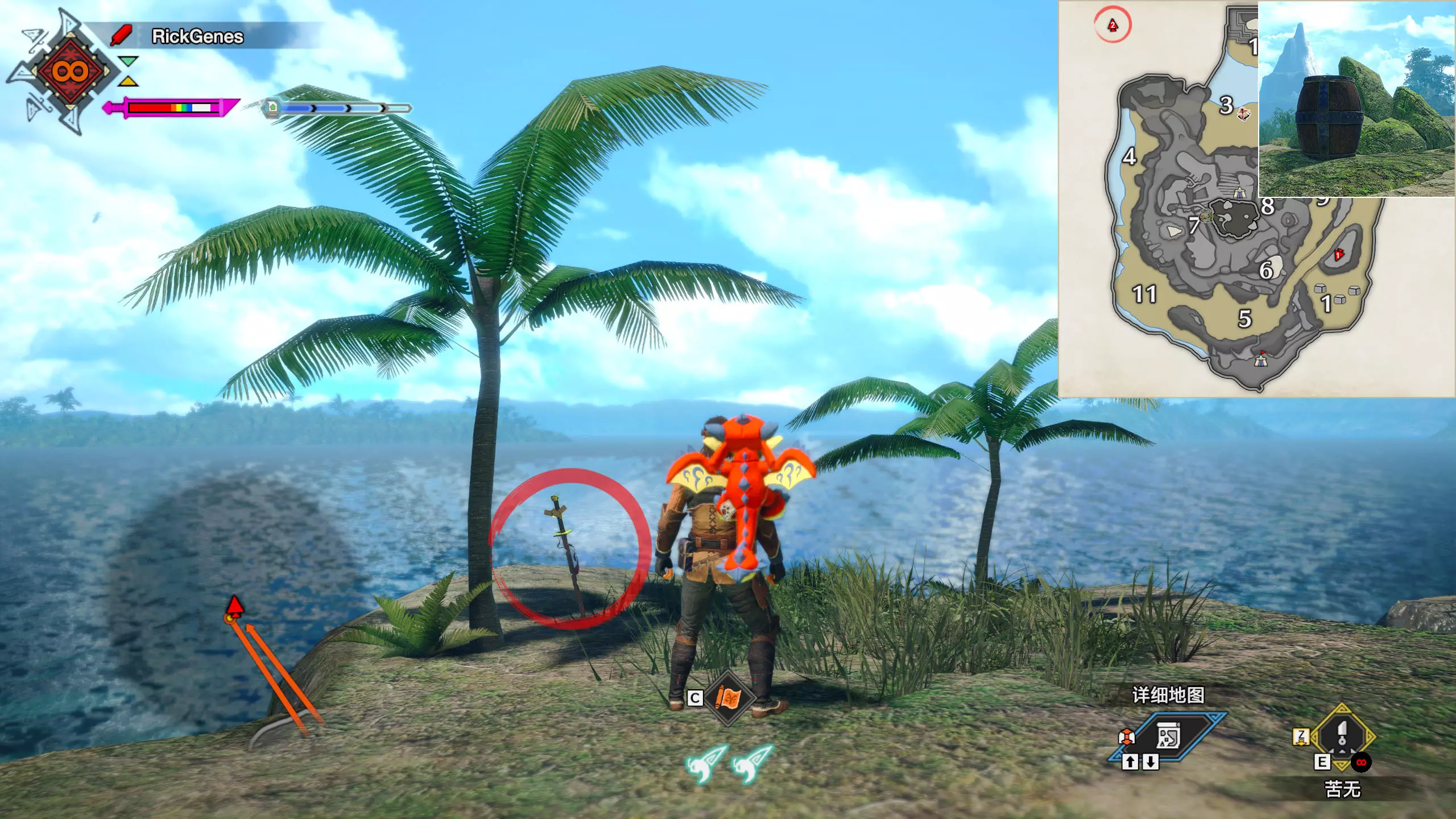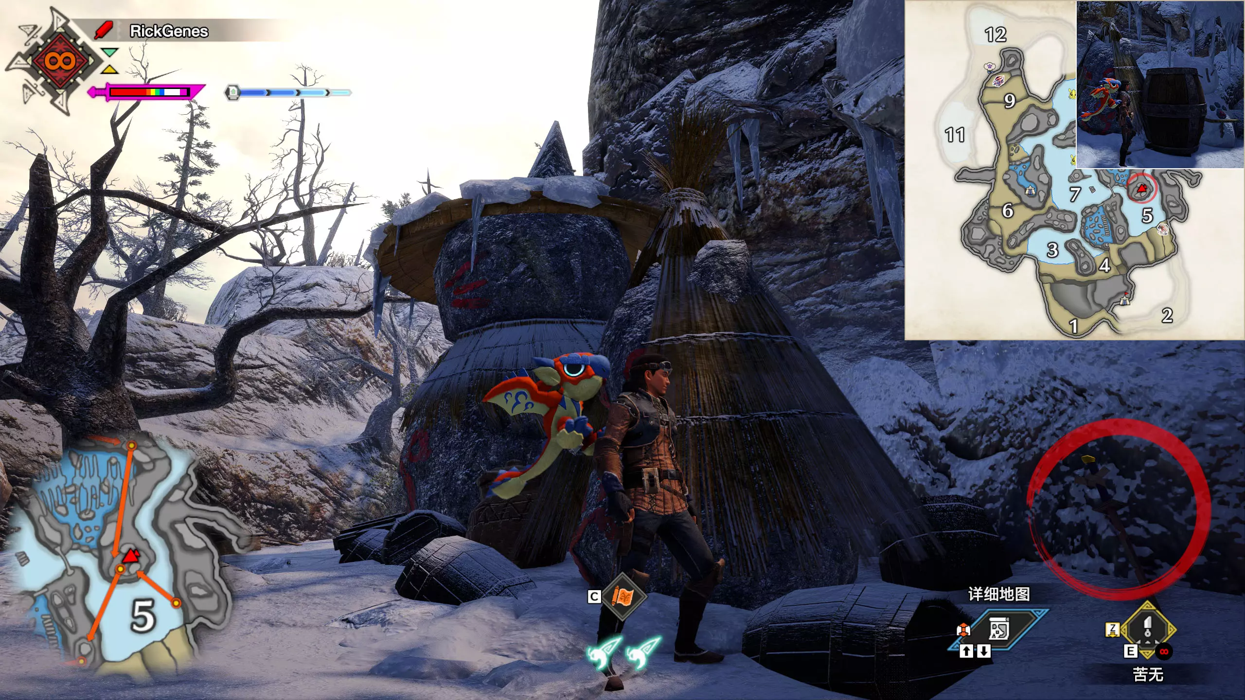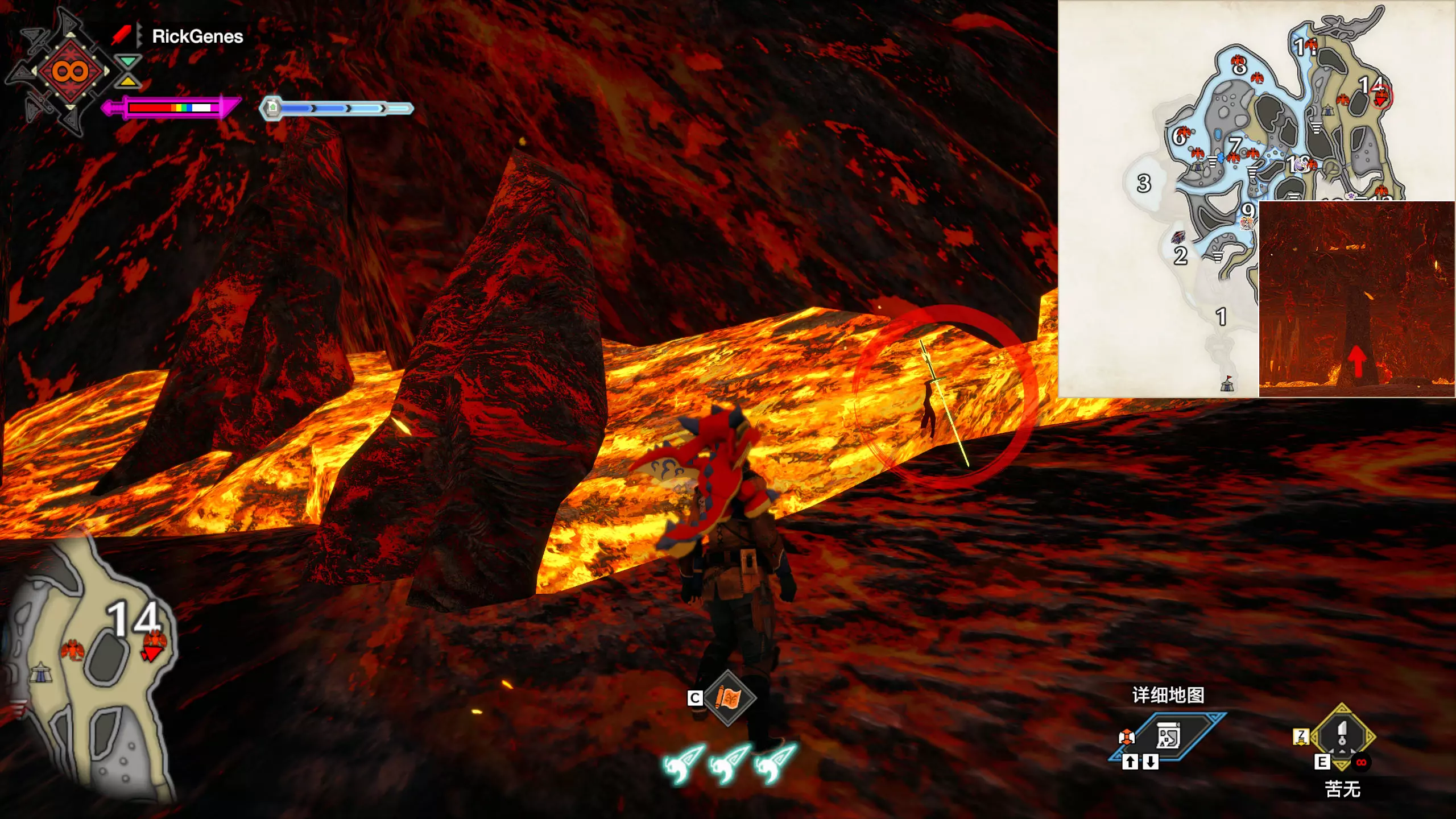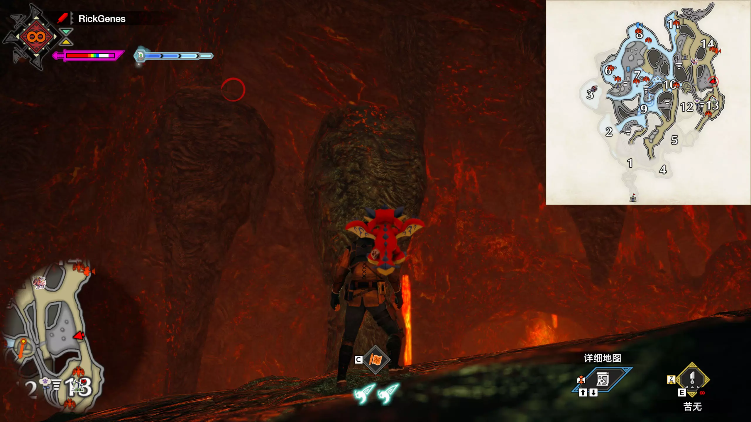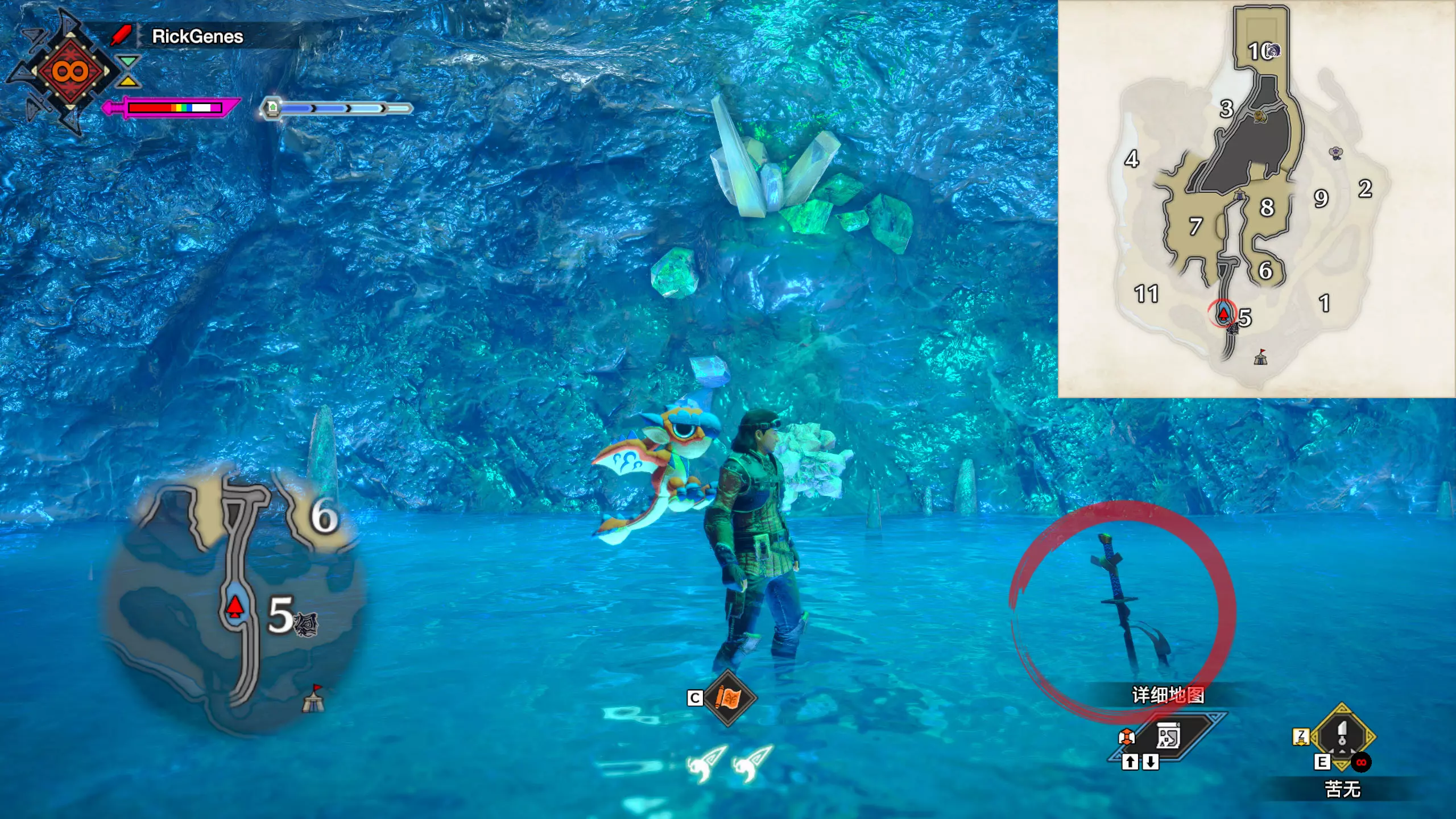 城塞高地3区右下方的大翔虫设置点需要单独说明。 全游戏唯一刁钻地点,我和朋友找了十多分钟才找到。 3区标记处有一口井,沿着井口的藤蔓慢慢往下走。 中途会看见藤蔓左方有一个洞口,进去,之后一直沿着道路走到底。
