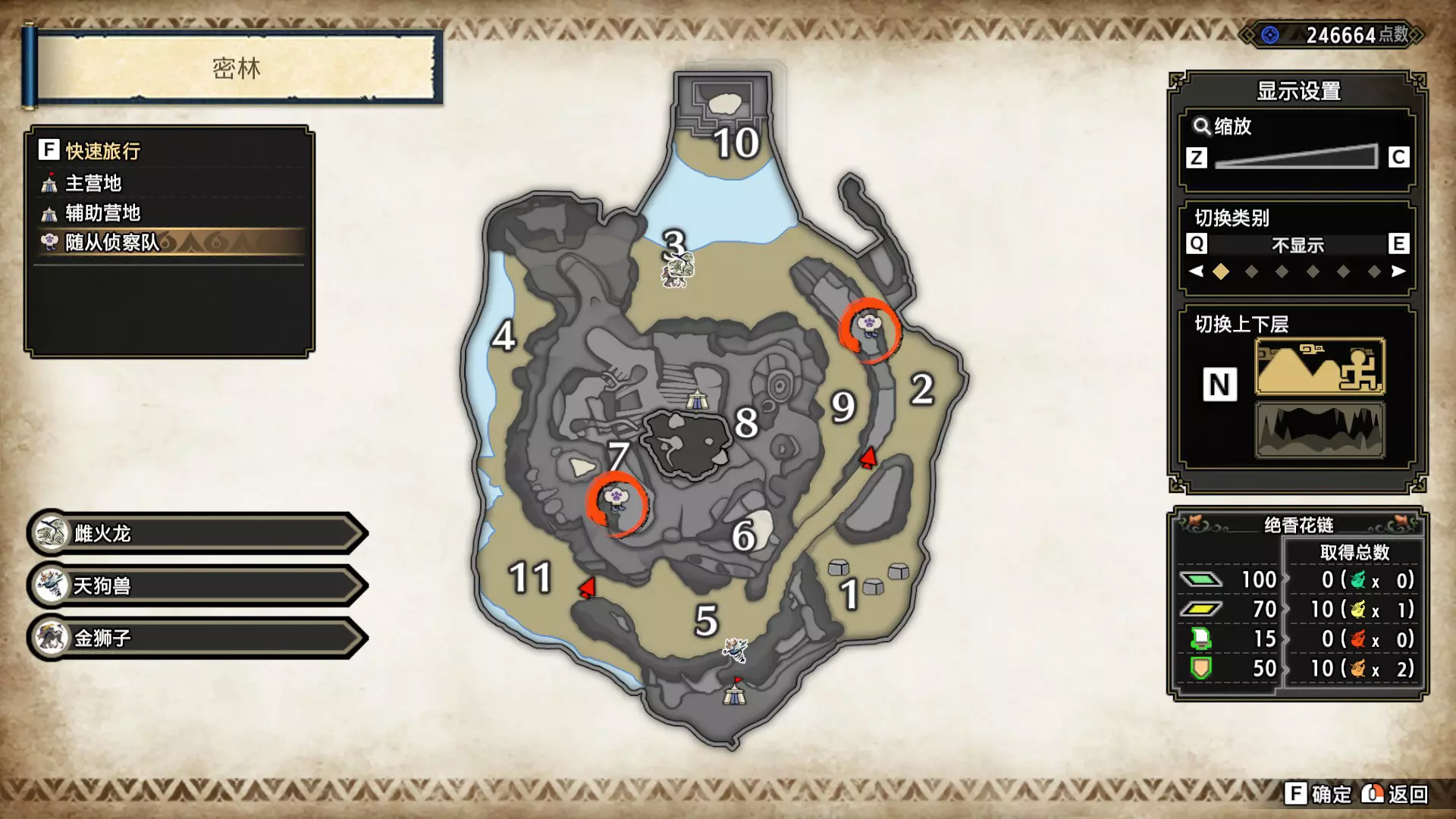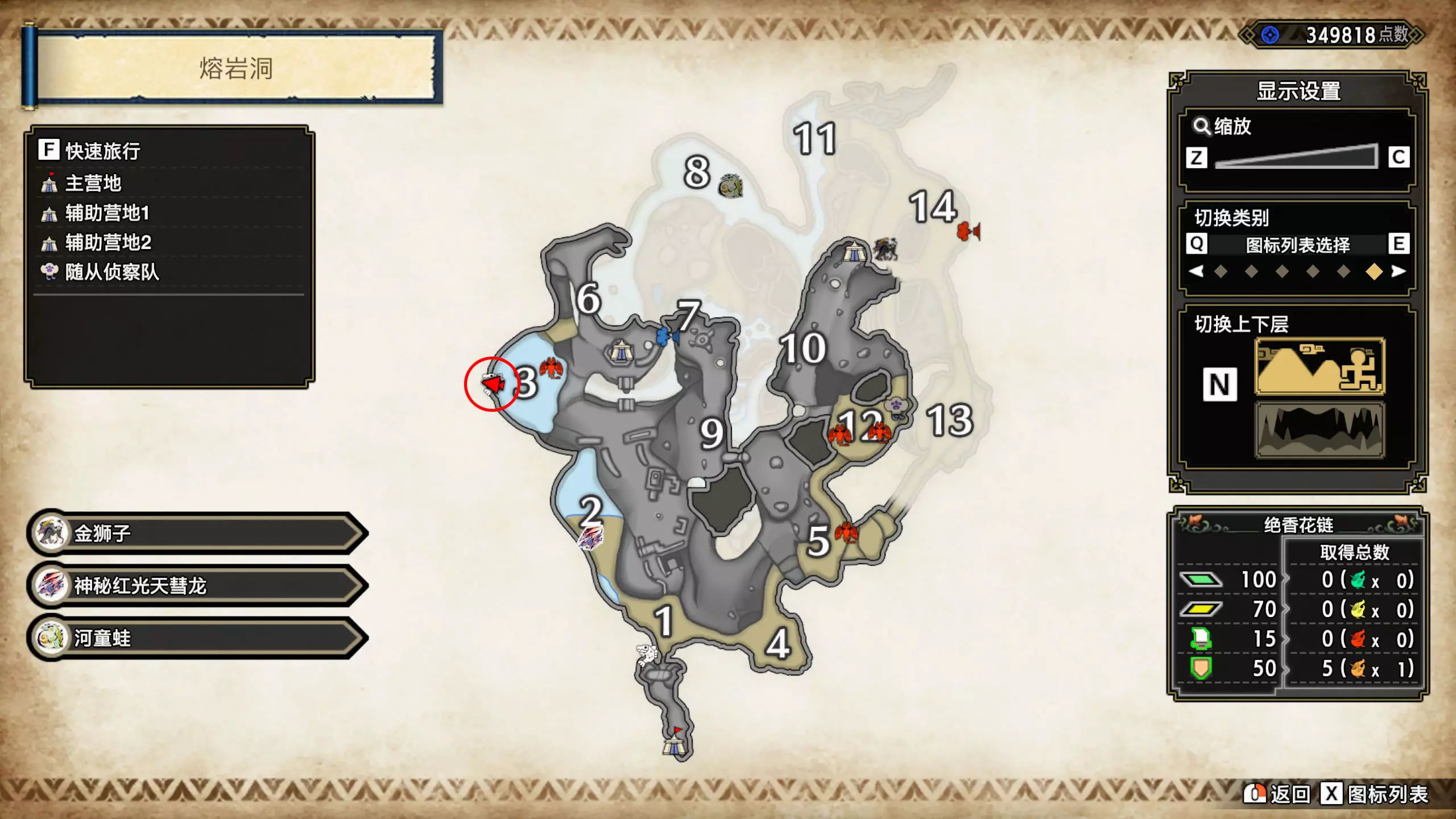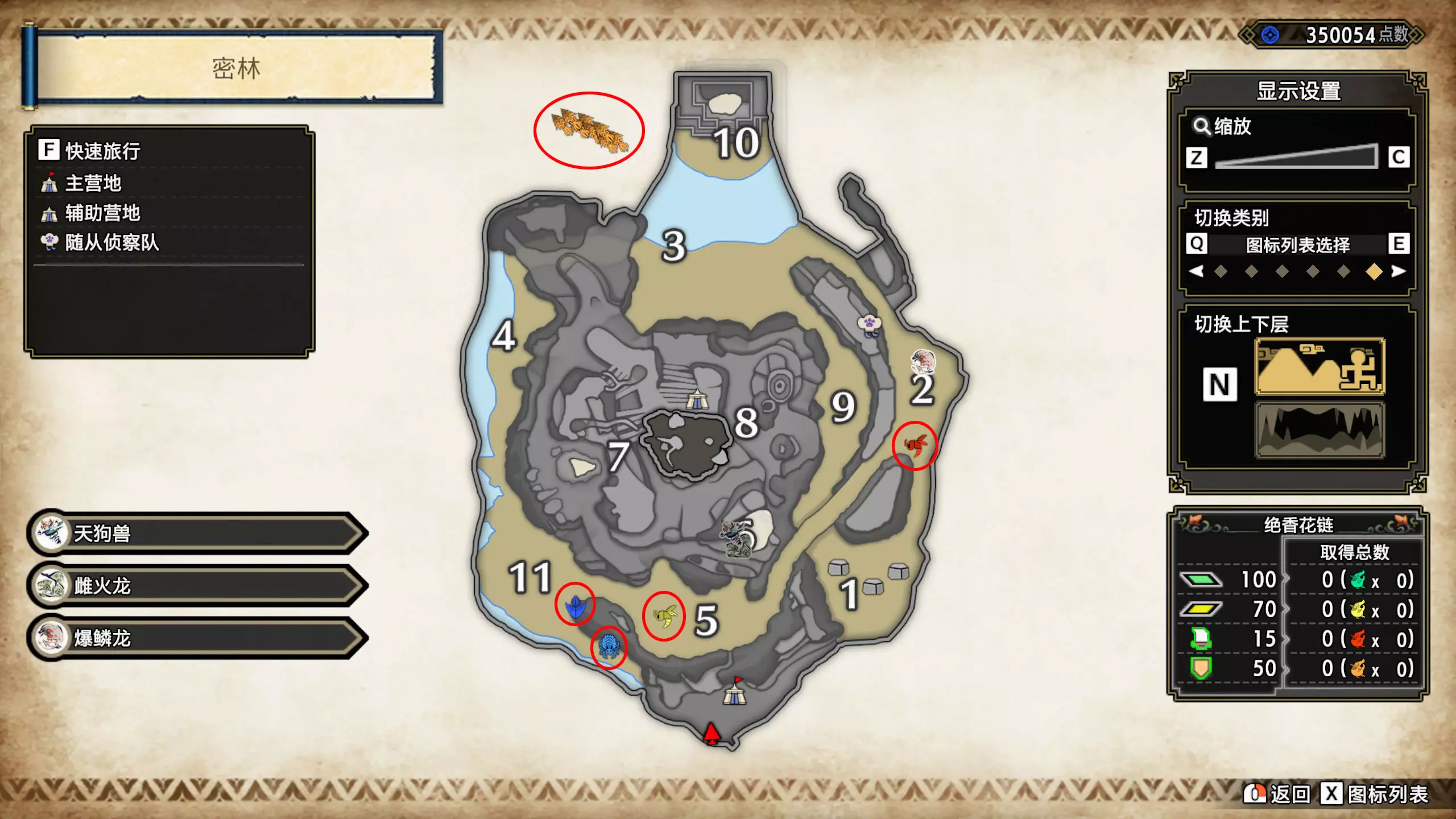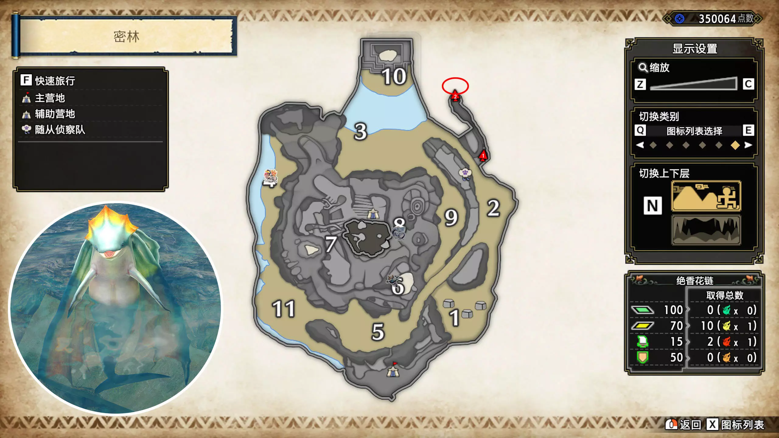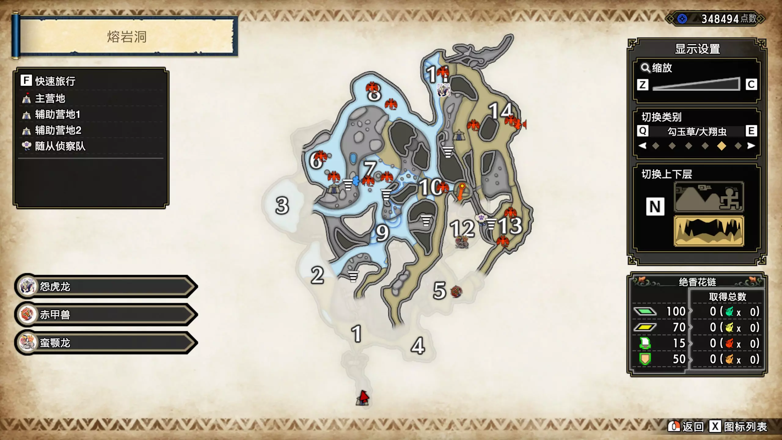 打开地图,按X显示图例,切换到原野。 选中【勾玉草(未发现)】便可在地图上显示未设置大翔虫的勾玉草。 勾玉草位置基本没有什么难度,知道方位,基本都能找到,按照下图排除即可。