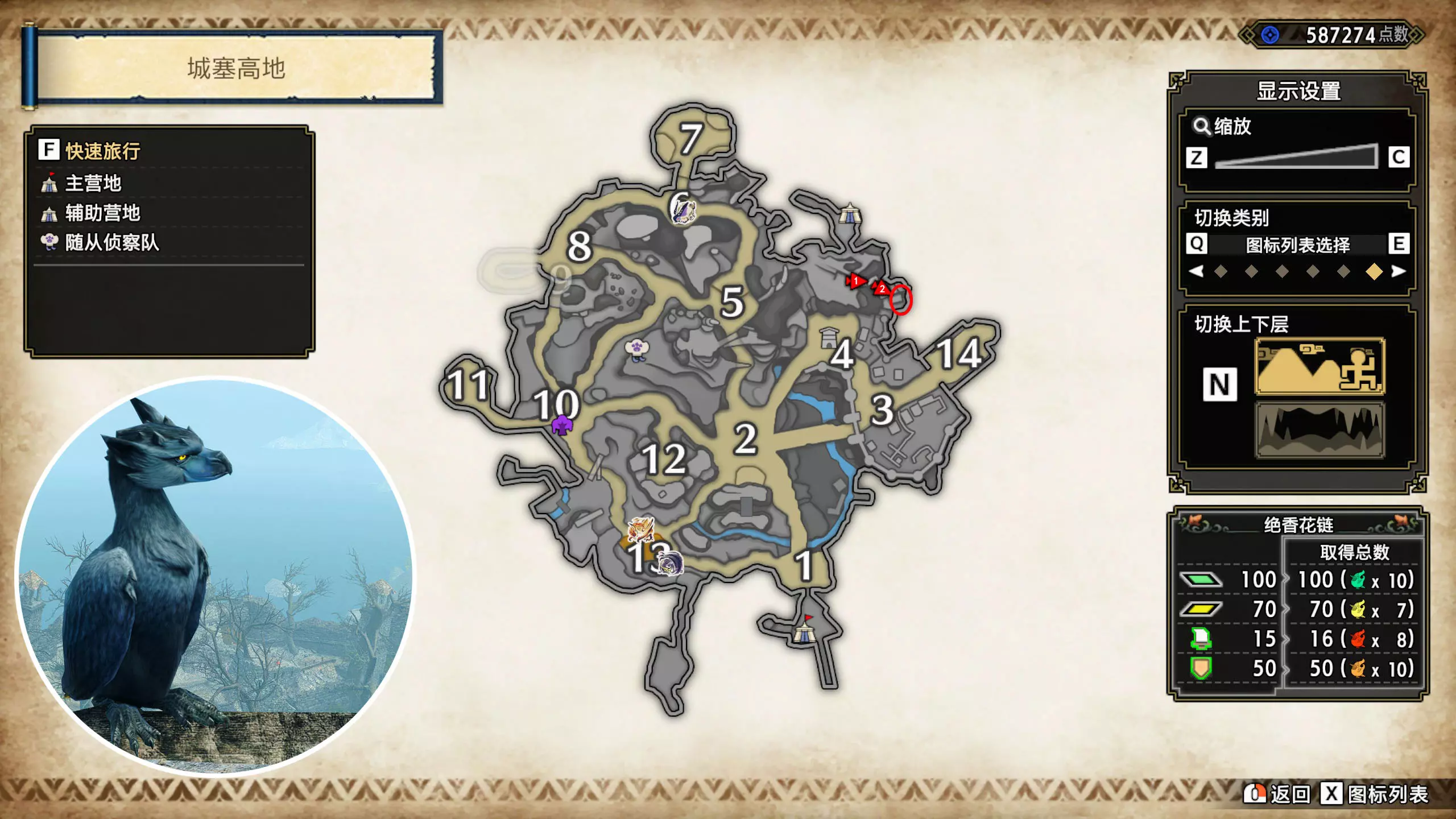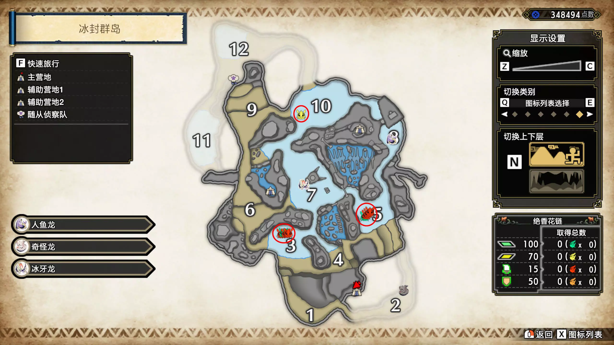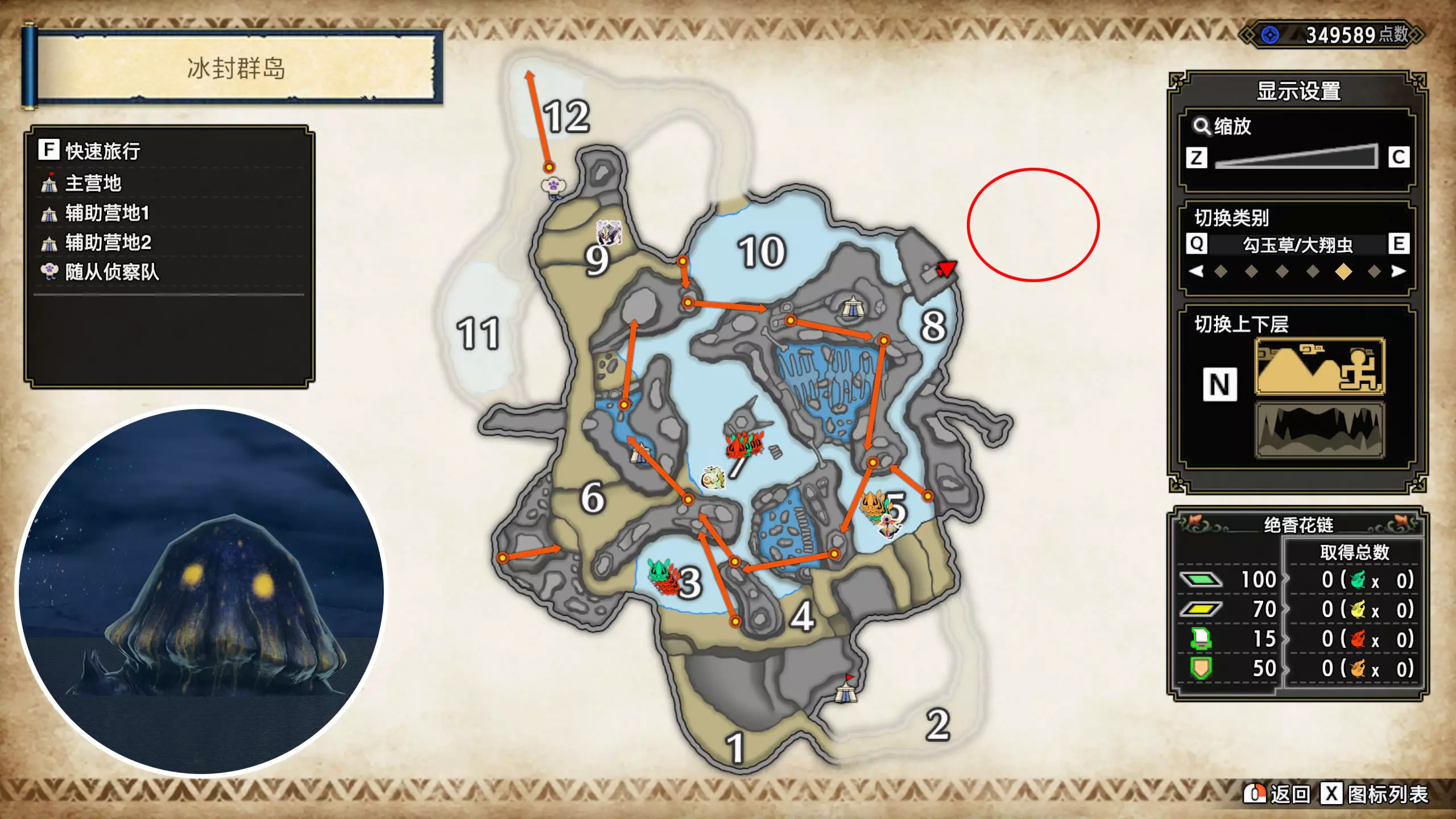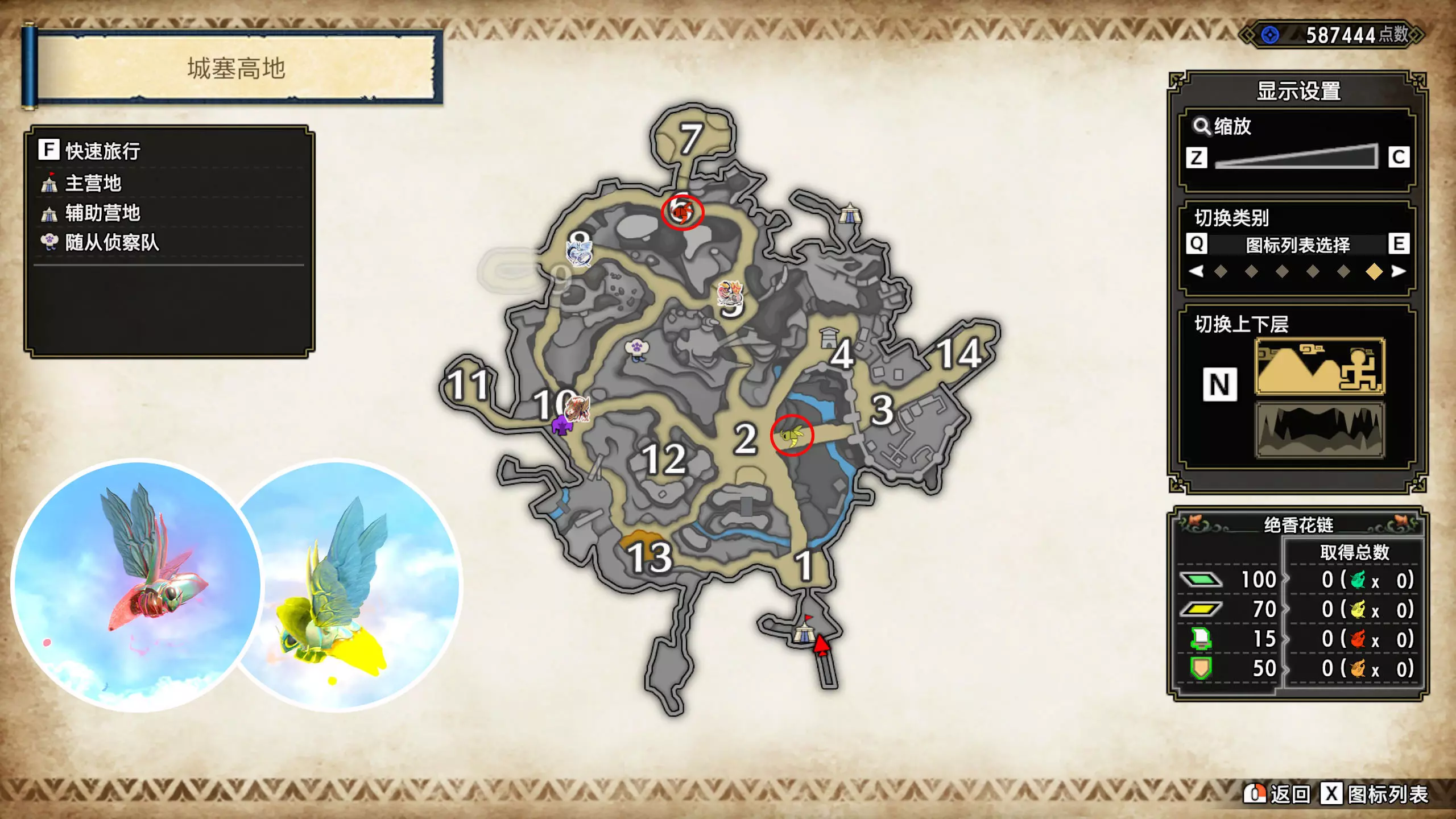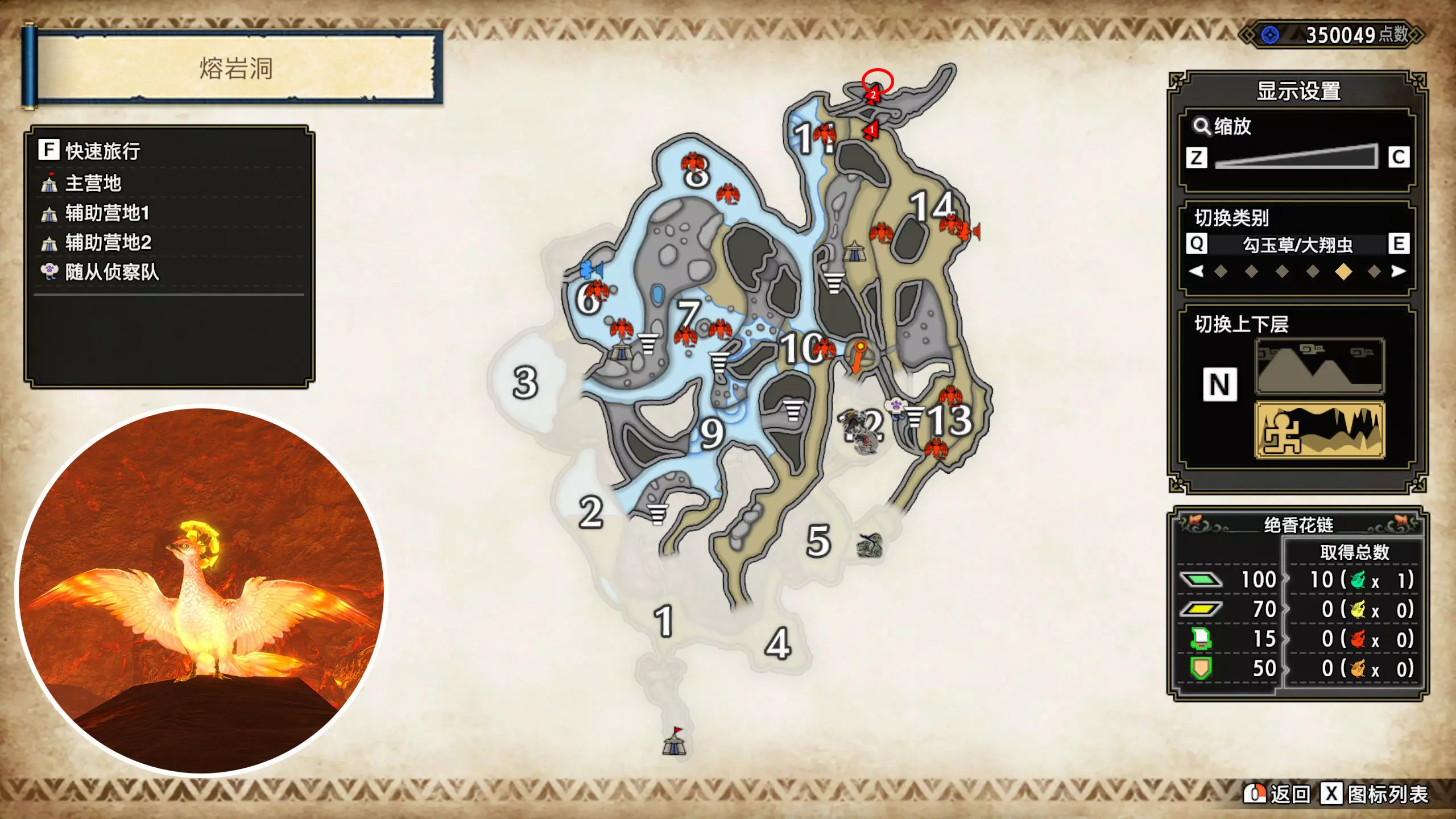 打开地图,按X显示图例,切换到原野。 选中【勾玉草(未发现)】便可在地图上显示未设置大翔虫的勾玉草。 勾玉草位置基本没有什么难度,知道方位,基本都能找到,按照下图排除即可。