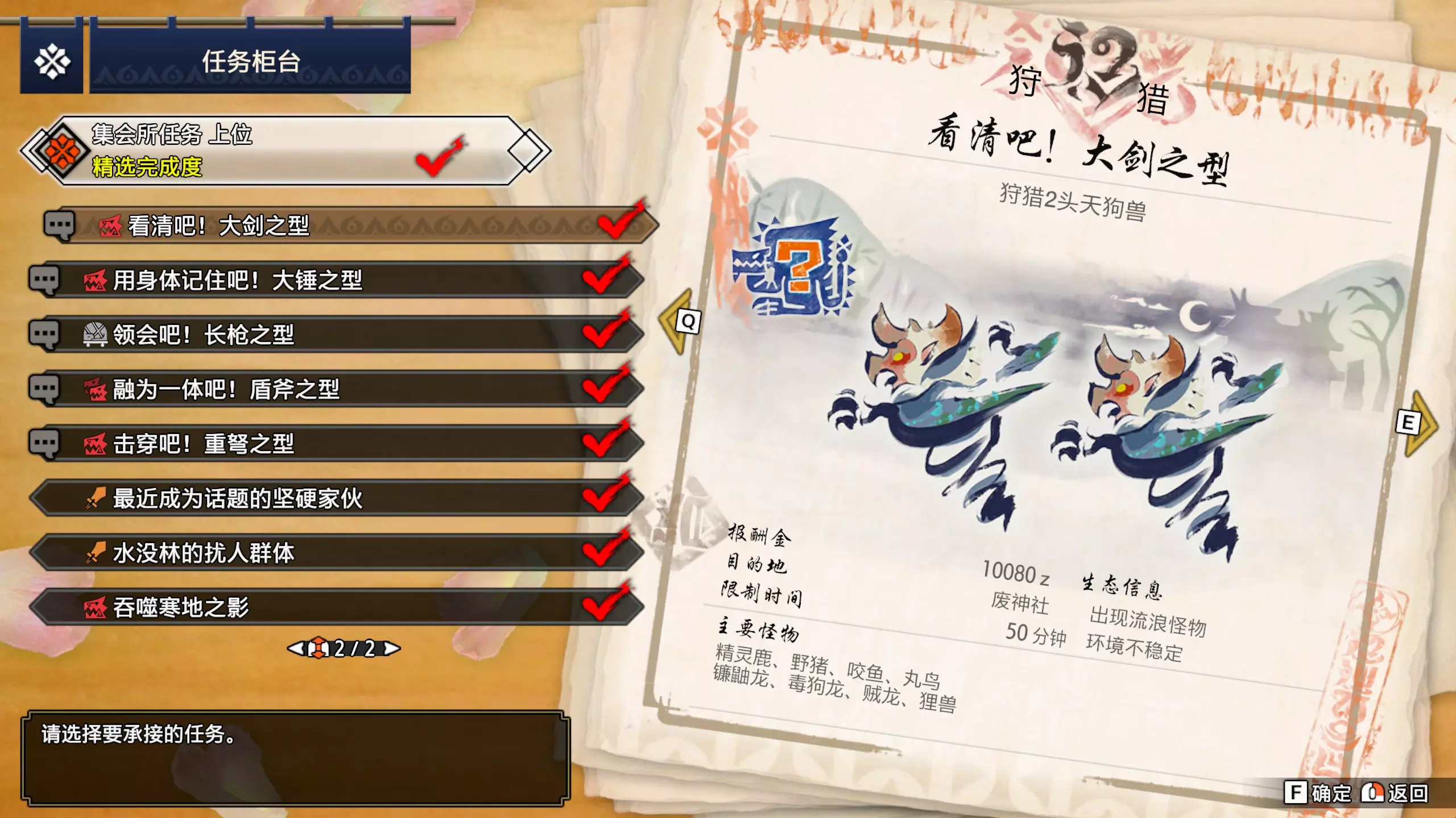 重要调查任务 5★ 调查2头刚缠兽-100%