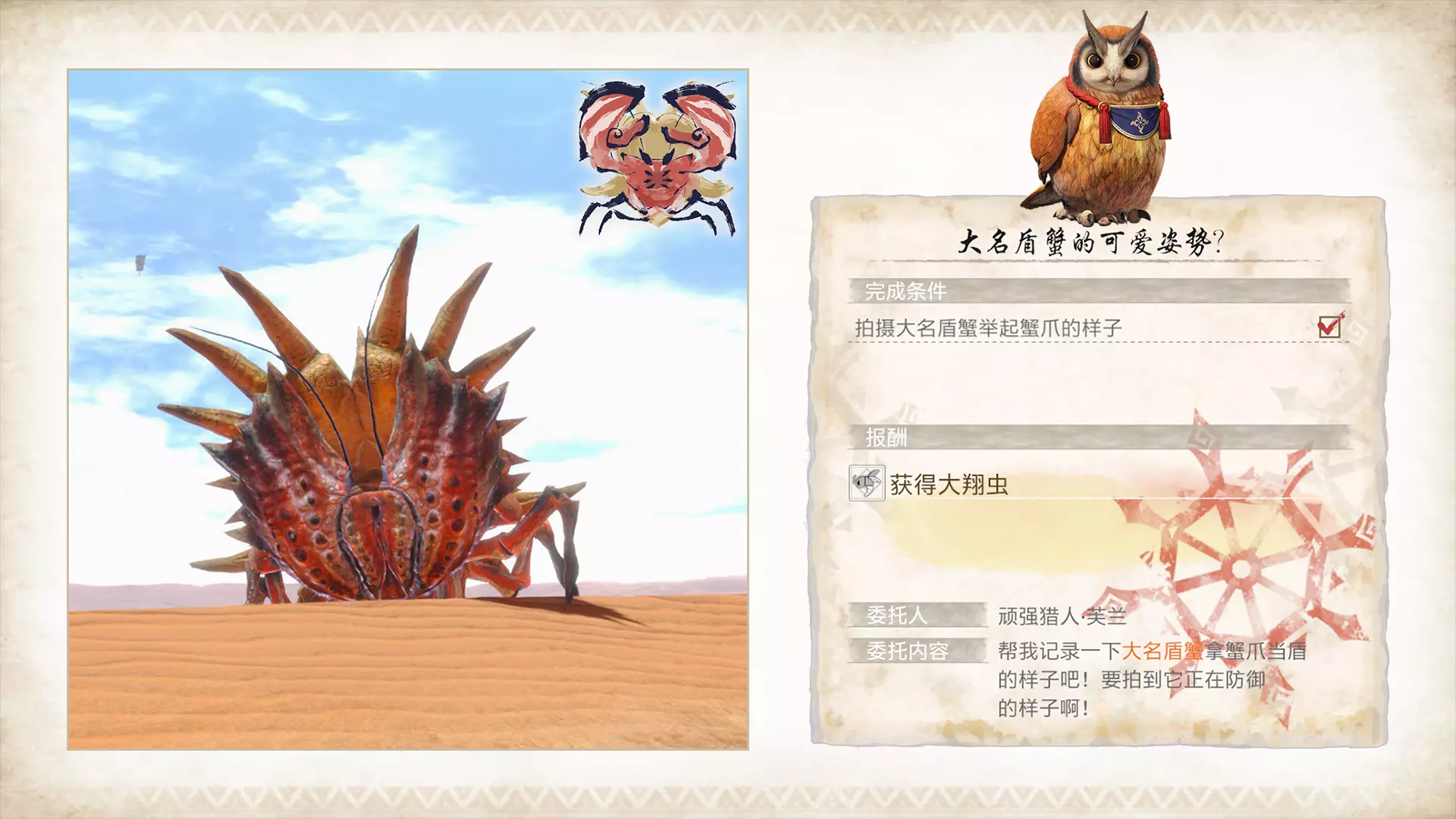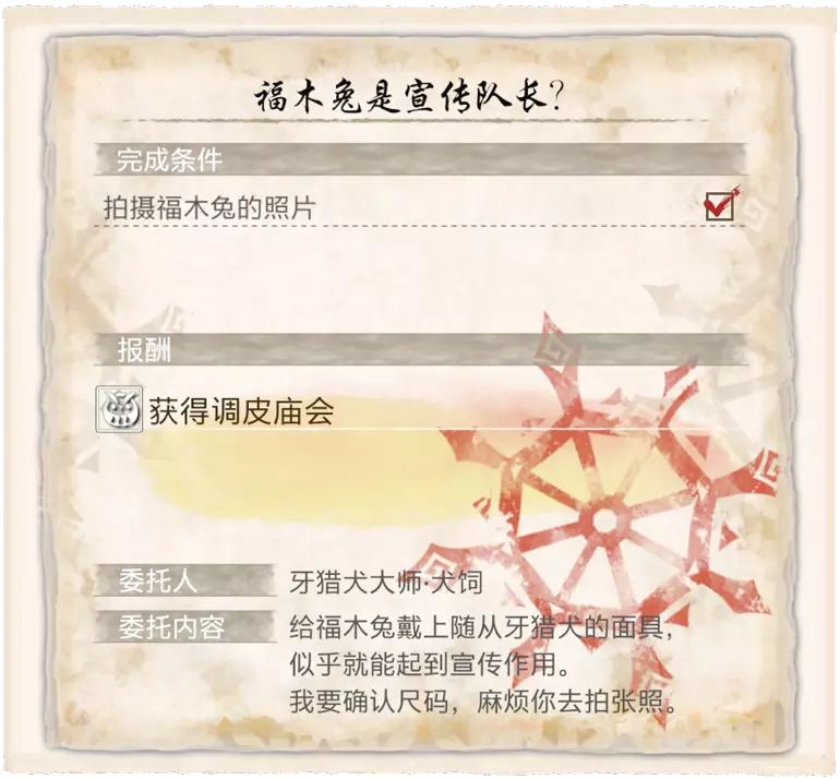 完成委托支线任务【福木兔是宣传队长】。