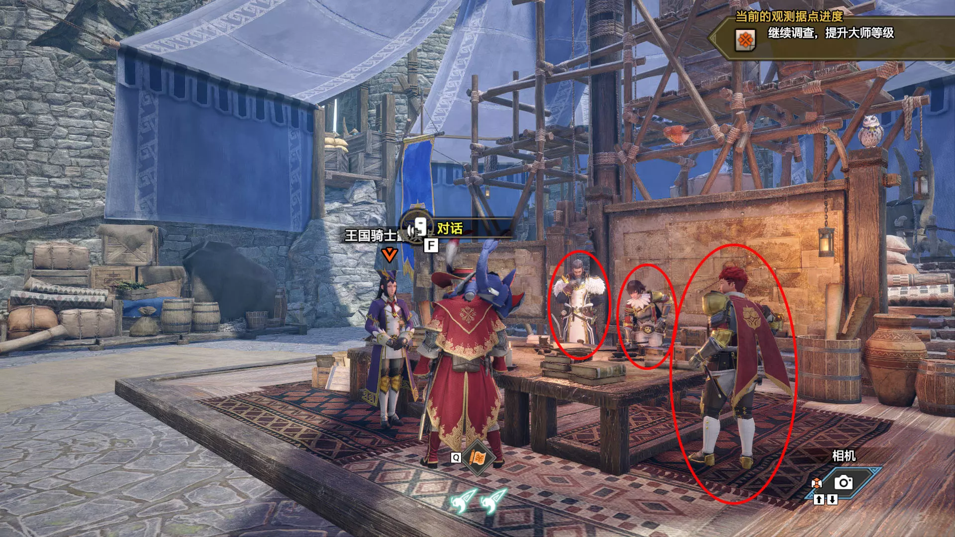 红圈标记为营地位置。 红色箭头为正确起始路线。 营地位置路线非唯一,可以善用飞檐走壁。 发现营地位置并完成相关委托任务才能解锁营地。