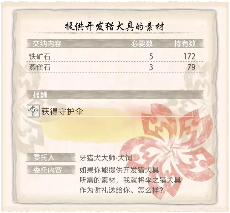 完成牙猎犬大师·犬饲的7个猎犬具委托支线任务。