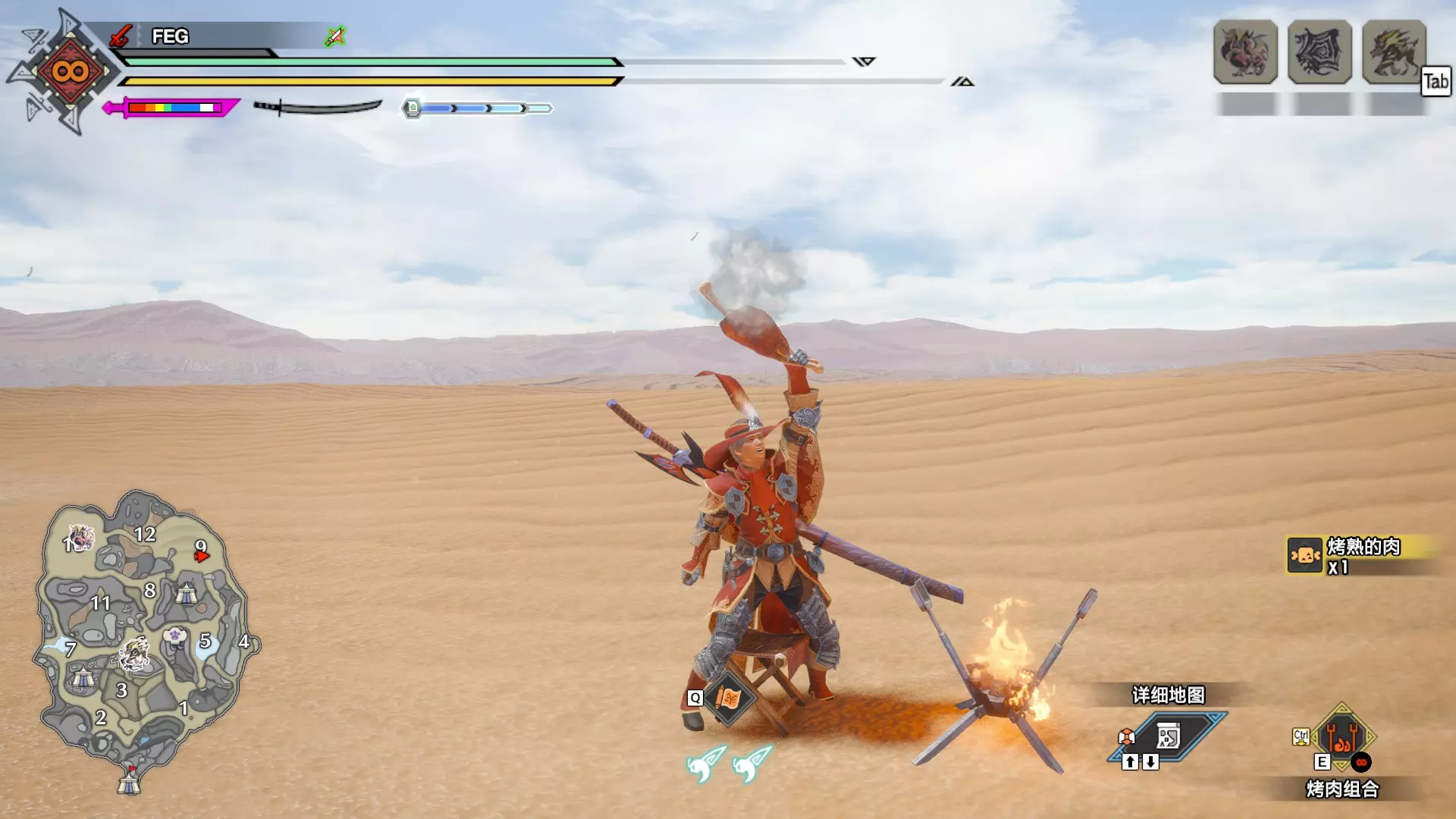 需要生肉30块,使用烤肉组合烤至恰到好处时按F完成烤肉,音乐结束时即为恰到好处。
