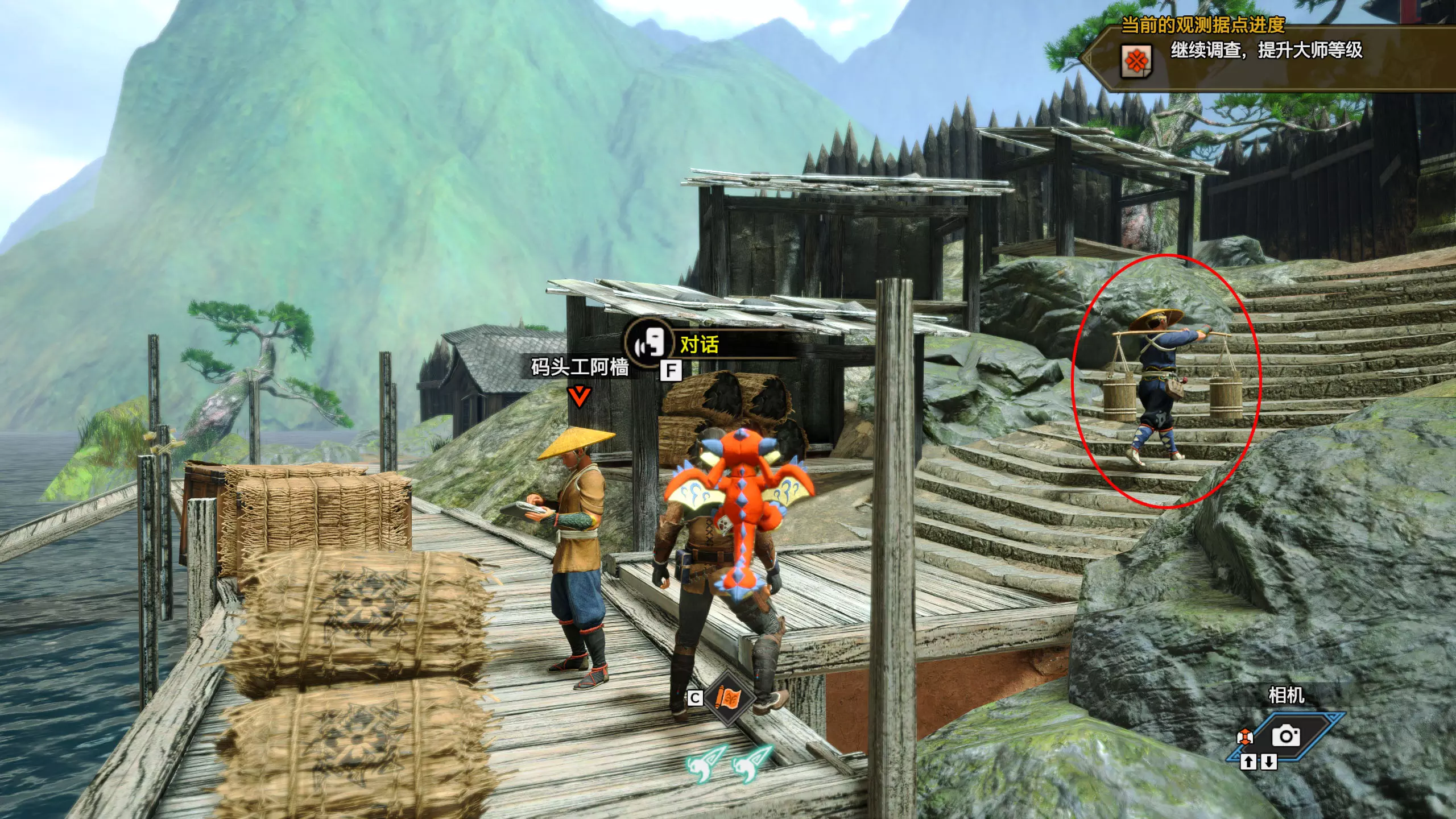 继续沿着藤蔓攀爬,前方即可发现营地。