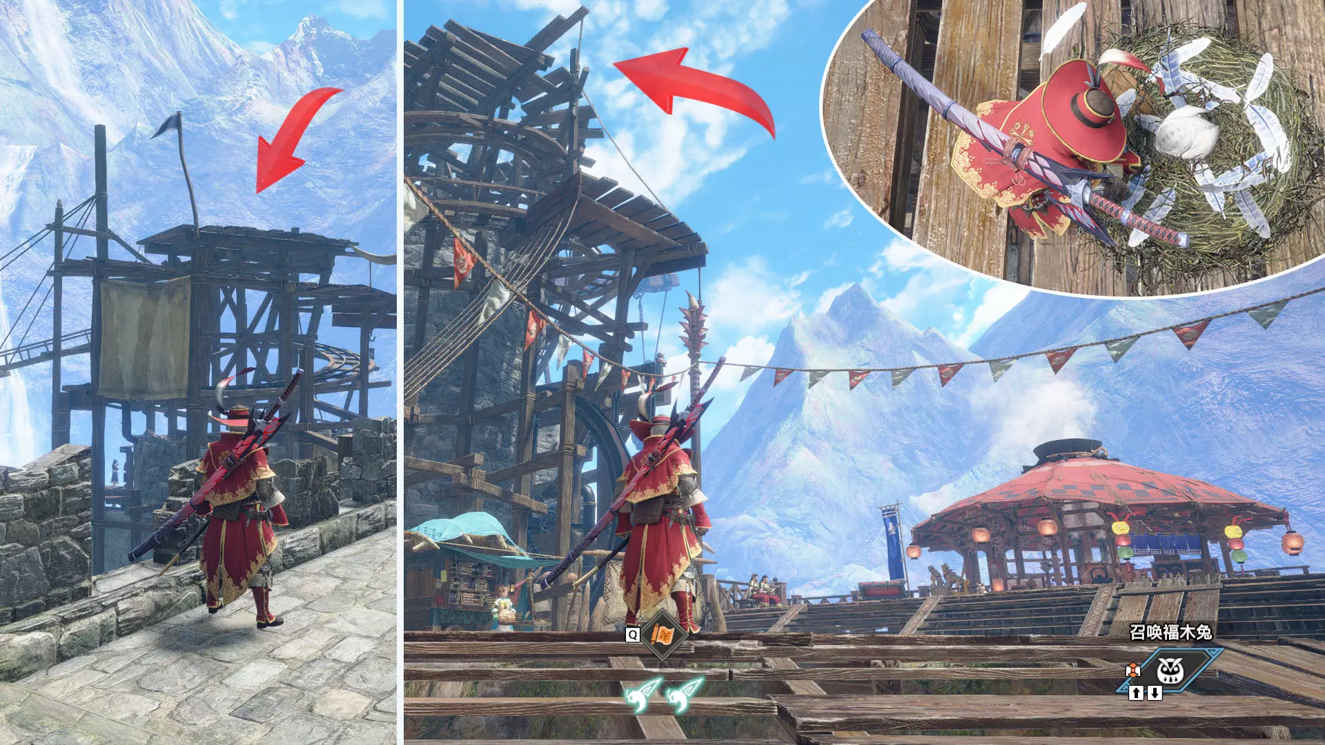 下:一路往上飞檐走壁即可到达。上:攀爬台阶一路往前即可到达。